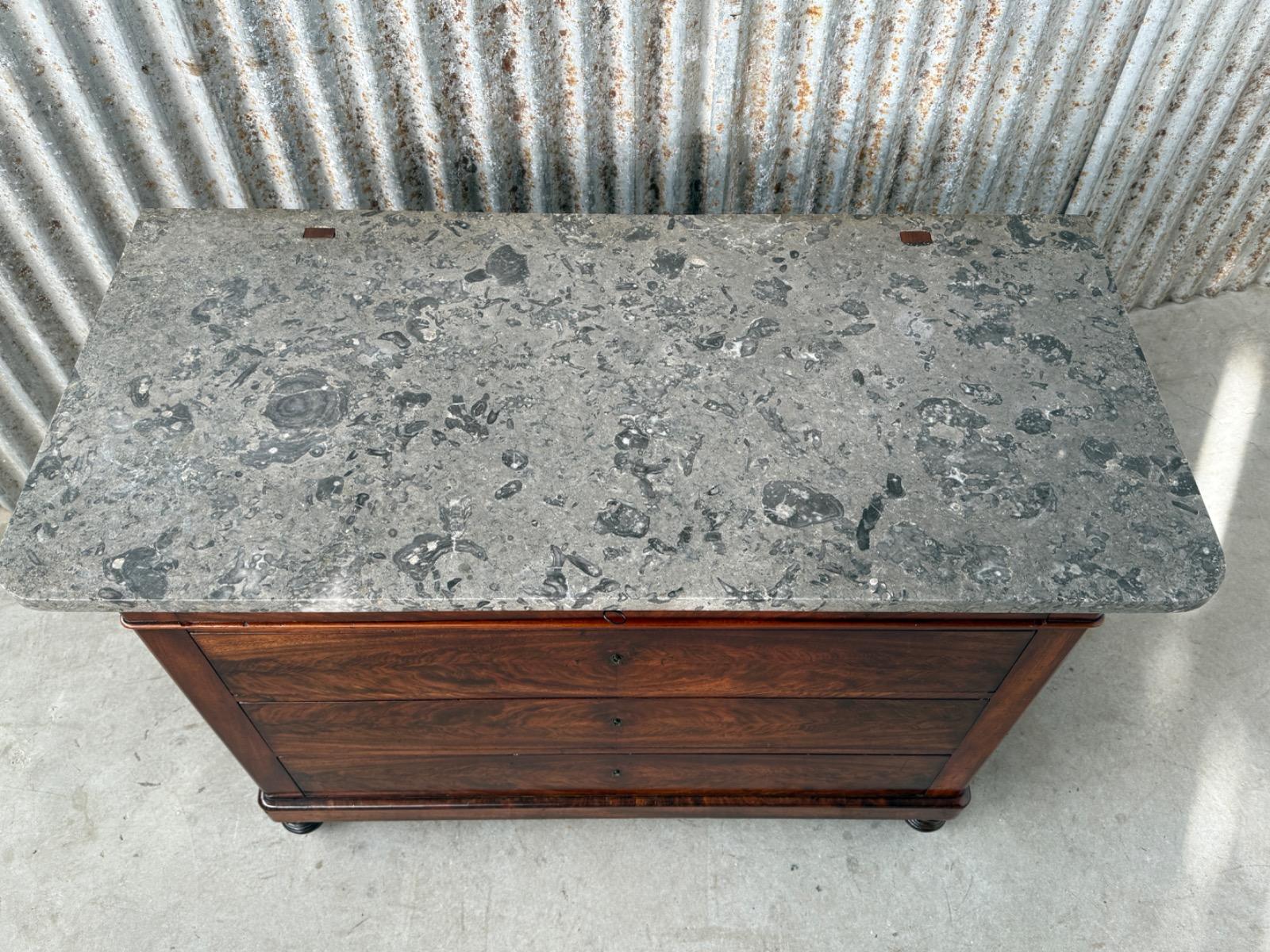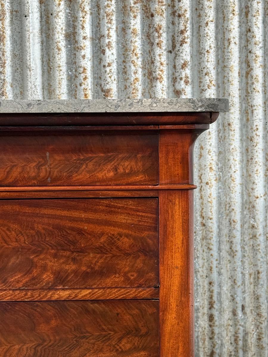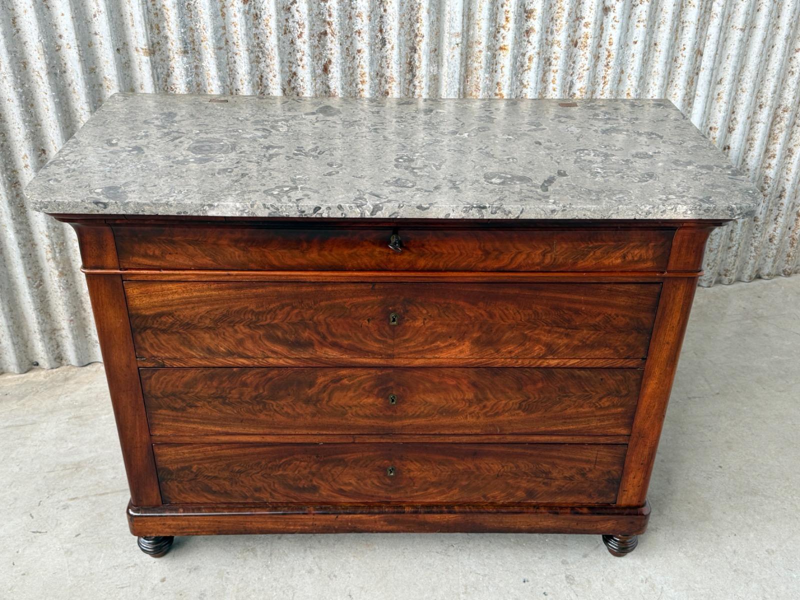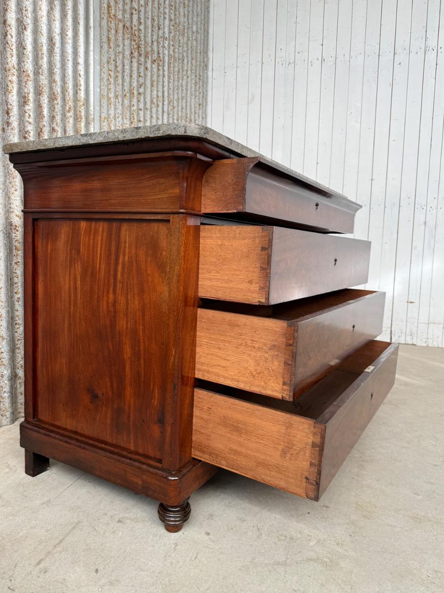 Commode met 4 laden waarvan 1 lade in de kap. Midden 19e eeuw met messing entré beslag, alle (oorspronkelijke) sloten aanwezig en werkend met een sleutel.
