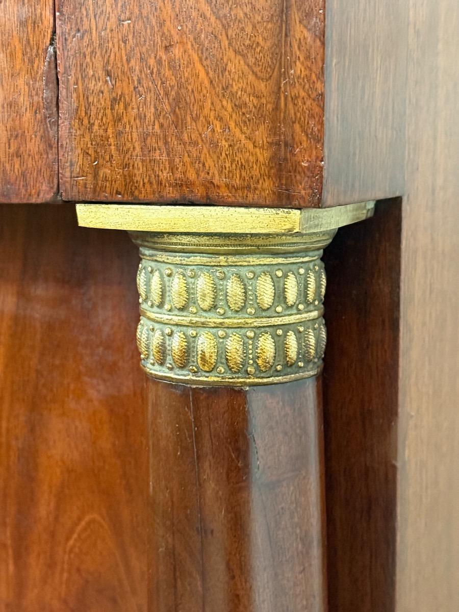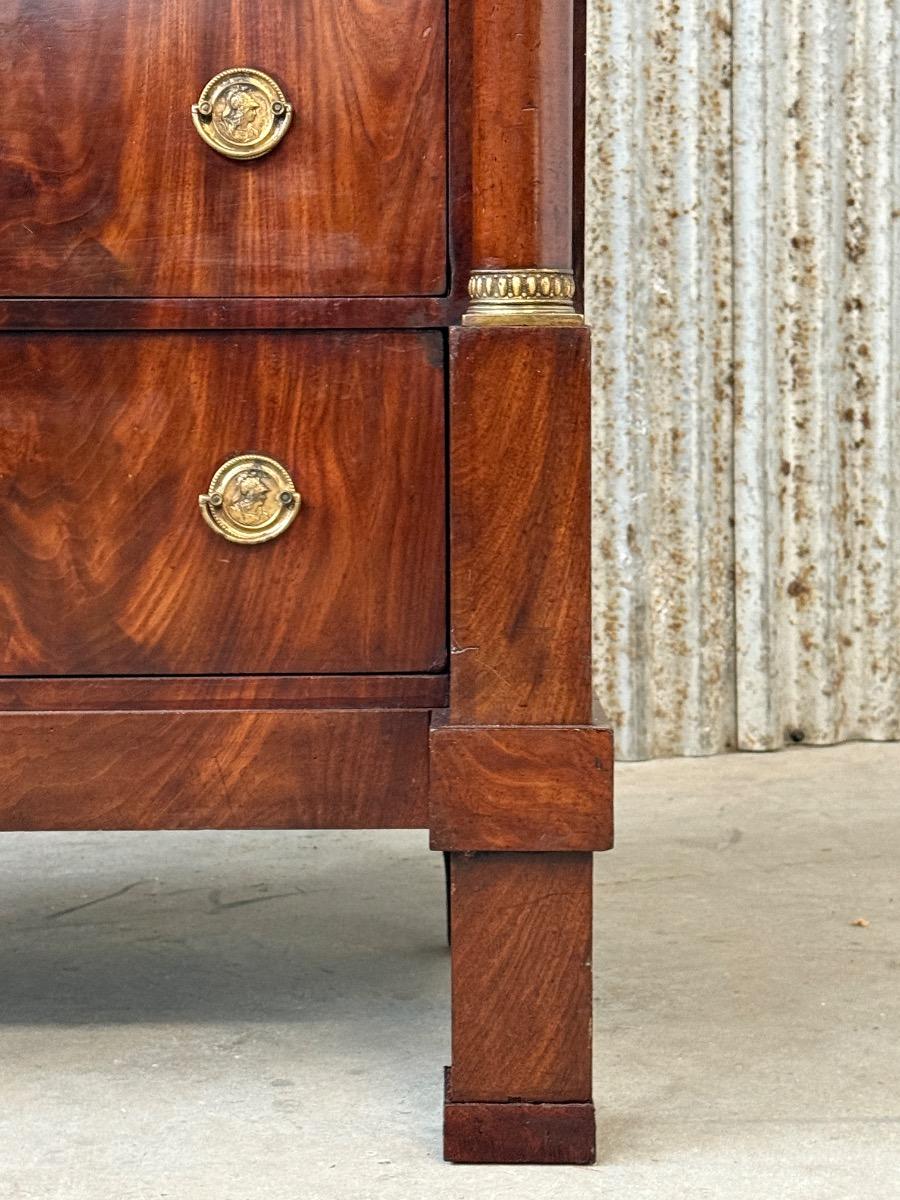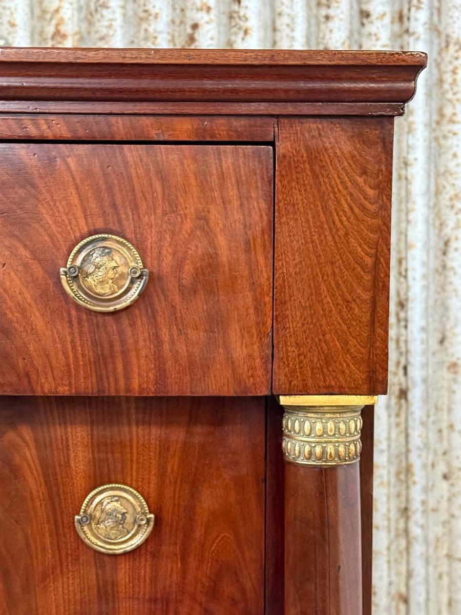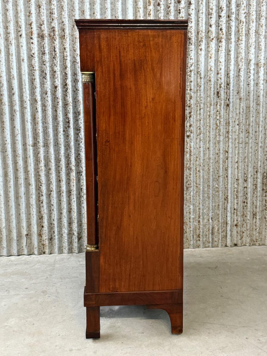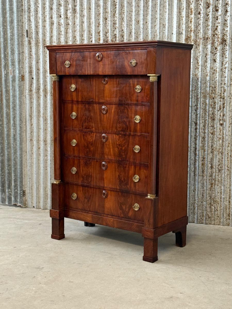 Hollands empire hoge ladekast of commode, met fraai over alle laden doorlopend mahonie fineer.