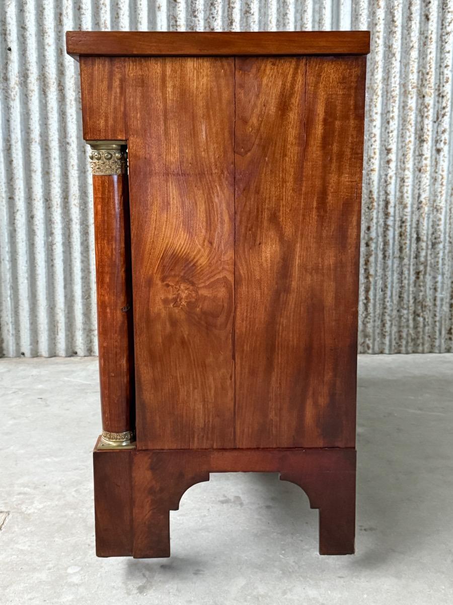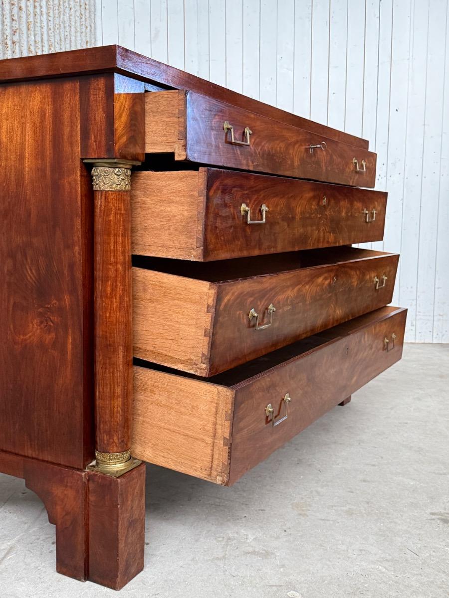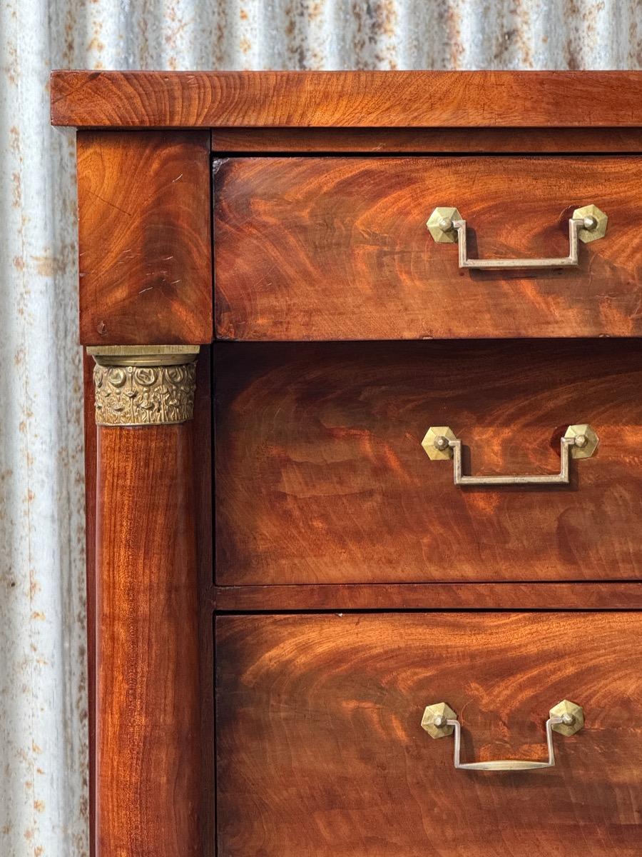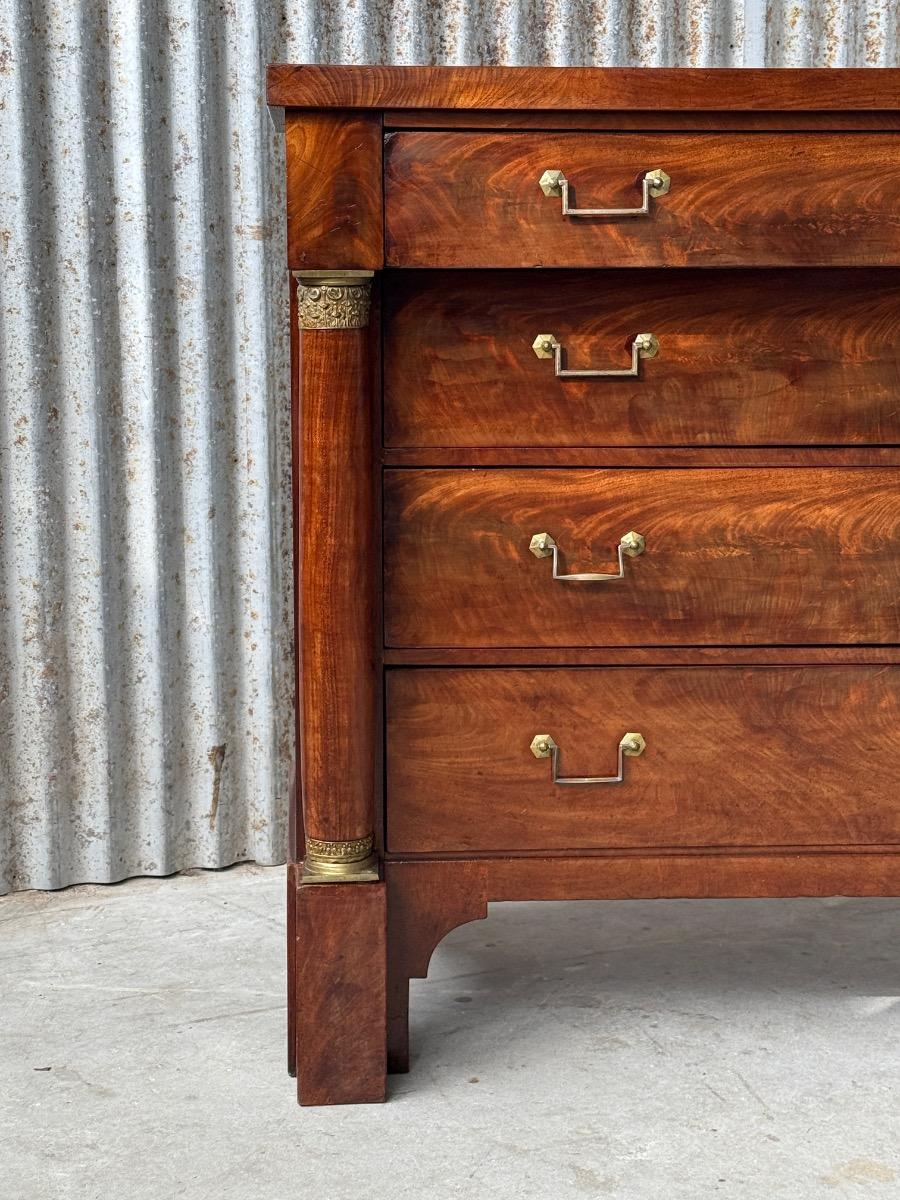 Mahonie Directoire 4 laads ladekast of commode met (al) volle pilaren, gegoten messing beslag.