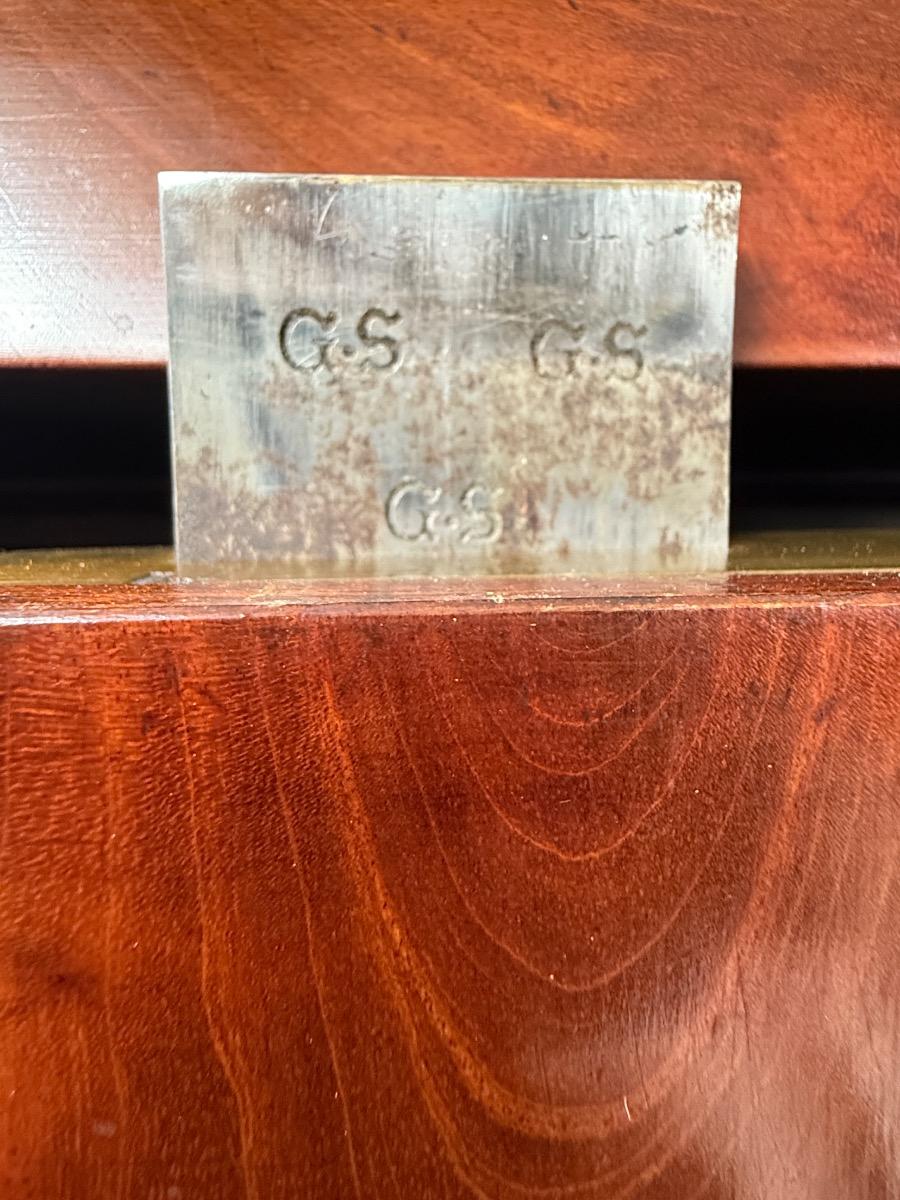Het interieur vol met laden, oorspronkelijk vuur vergulde lade trekkertjes. De onderkast, achter de twee deuren een eiken plank.
