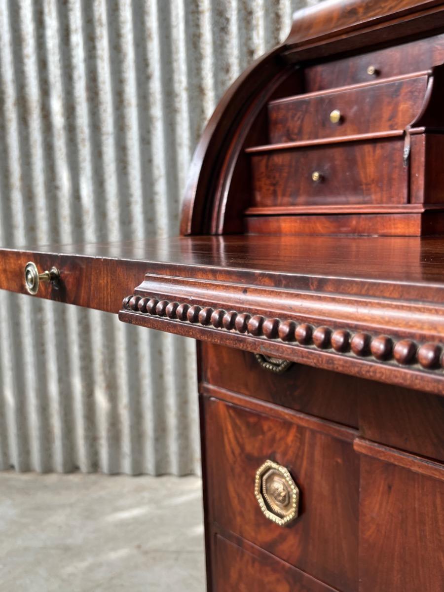 Zeer fraai Cuba bloem mahonie roltop / cilinder bureau met uittrekblad.