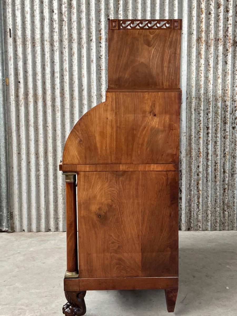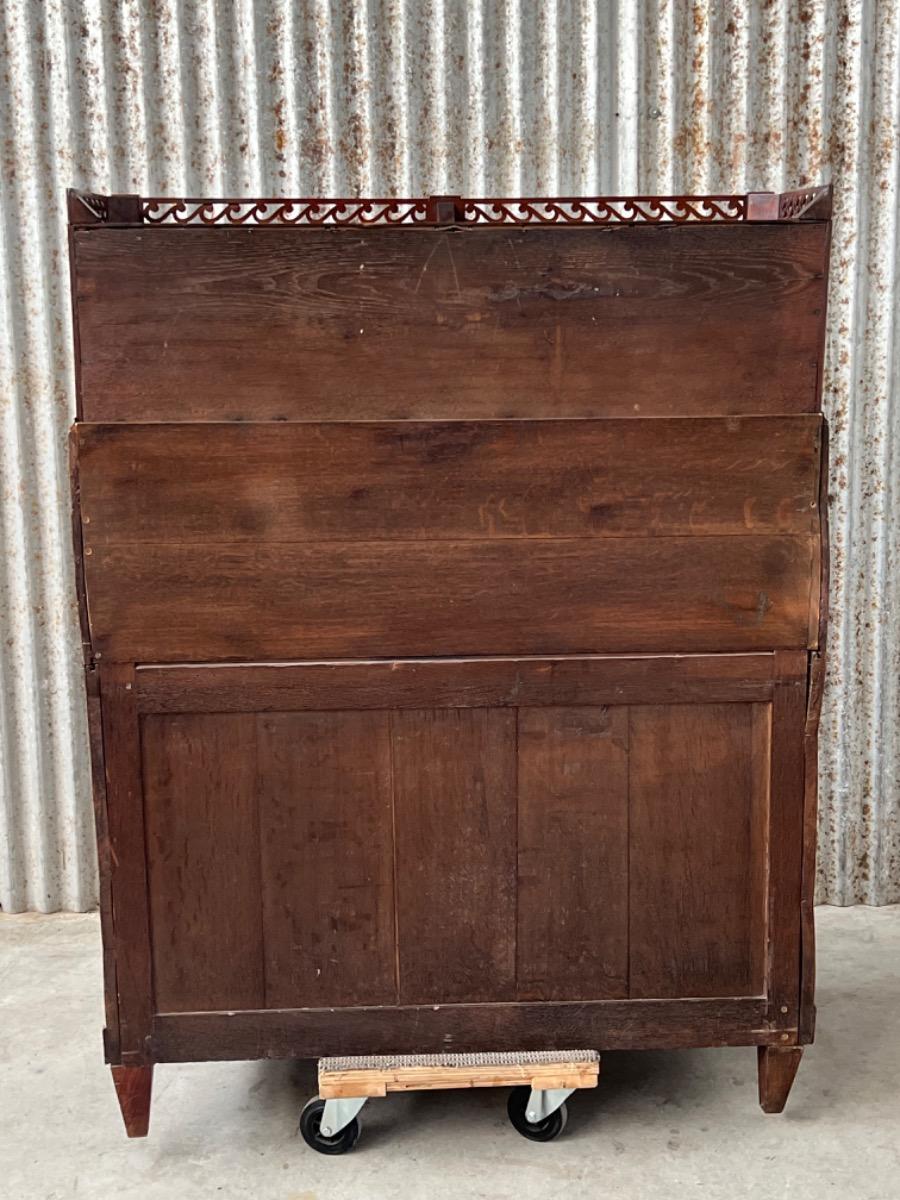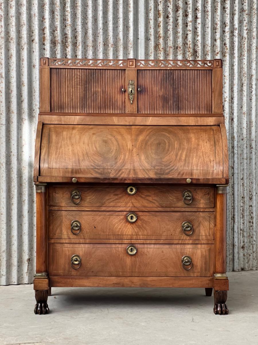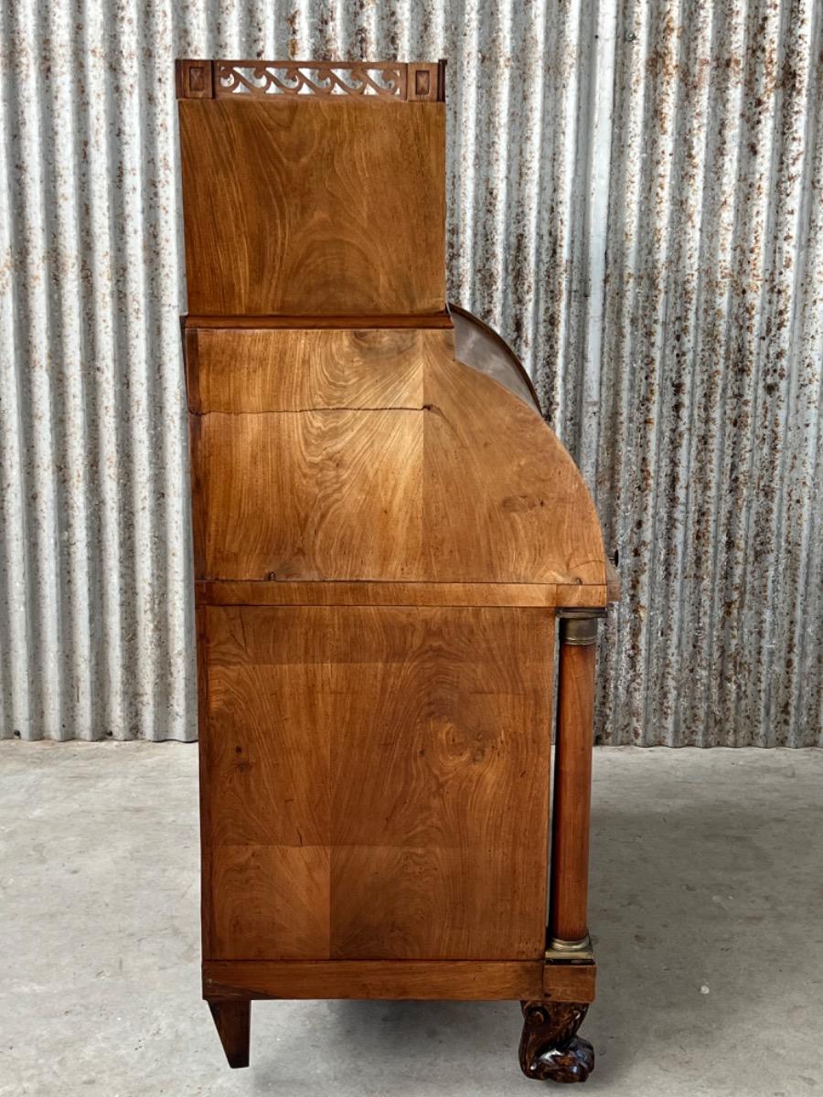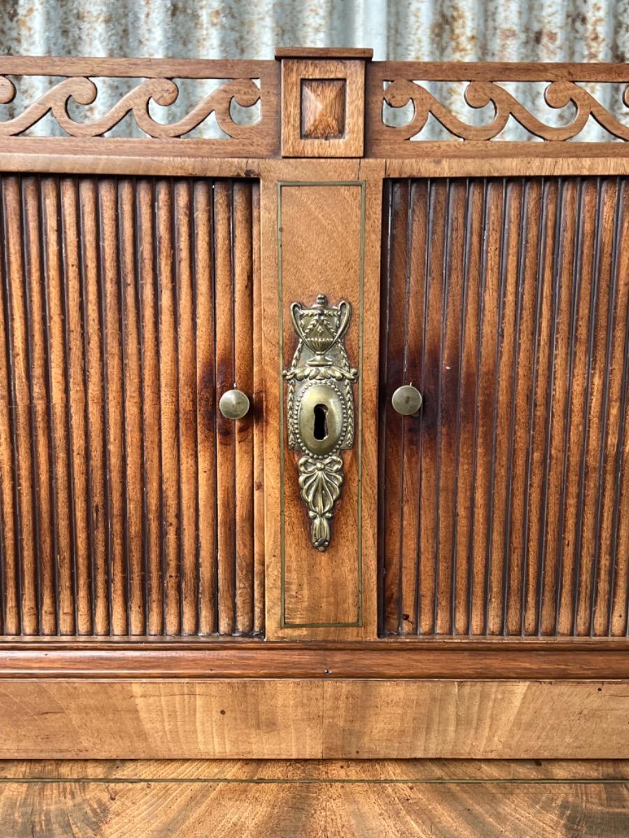 Achter de cilinder diverse kleine laden, jalousie deurtje ook mahonie (massief)