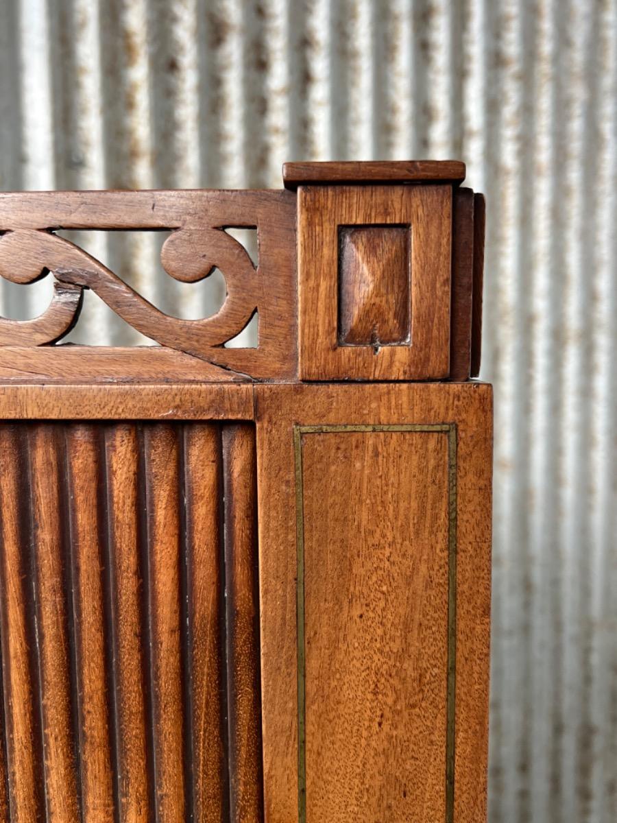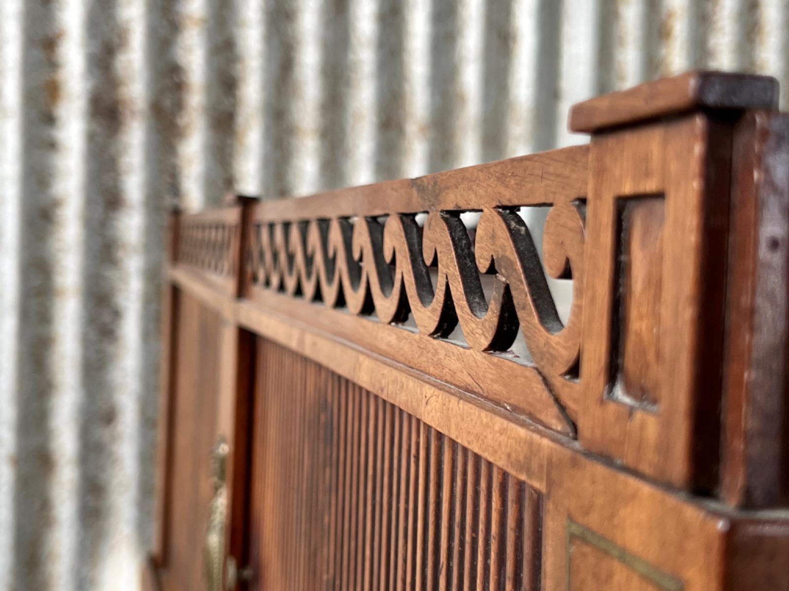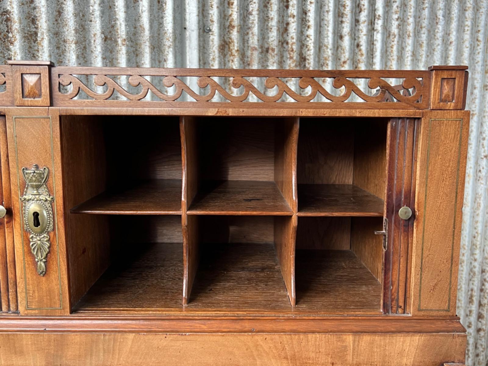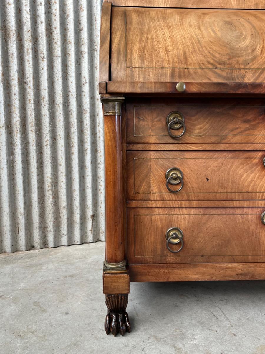Achter de cilinder diverse kleine laden, jalousie deurtje ook mahonie (massief)