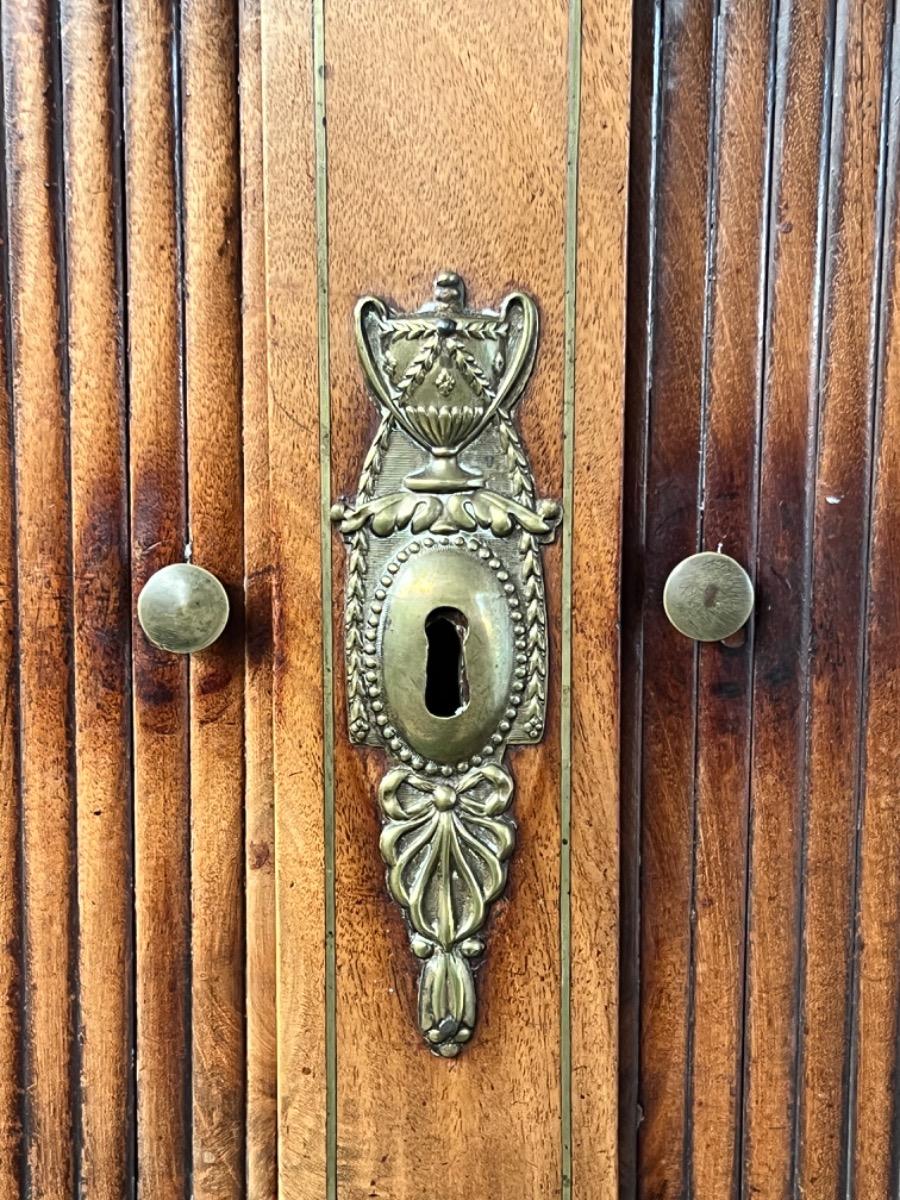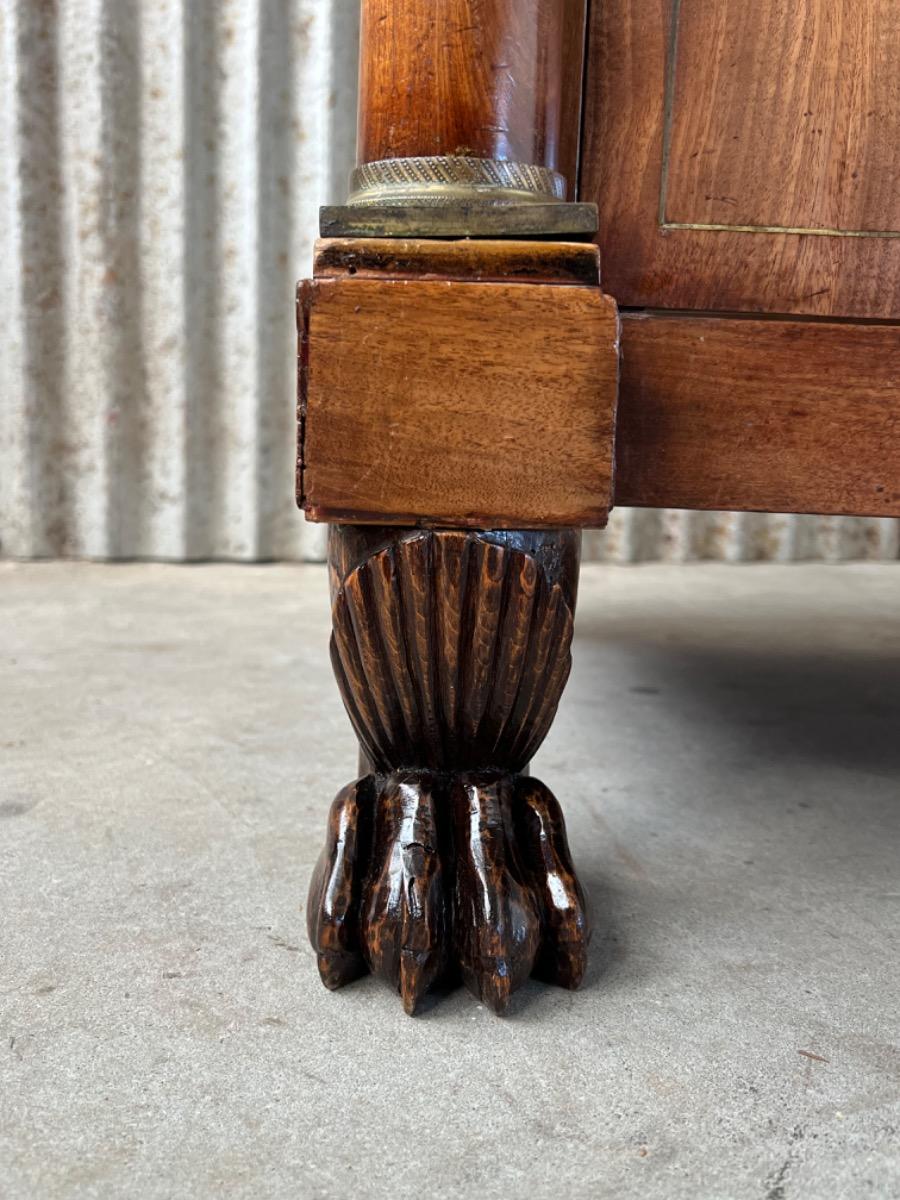 Aan weerszijden een volle mahonie pilaar met verguld messing kapitelen (oorspronkelijk)