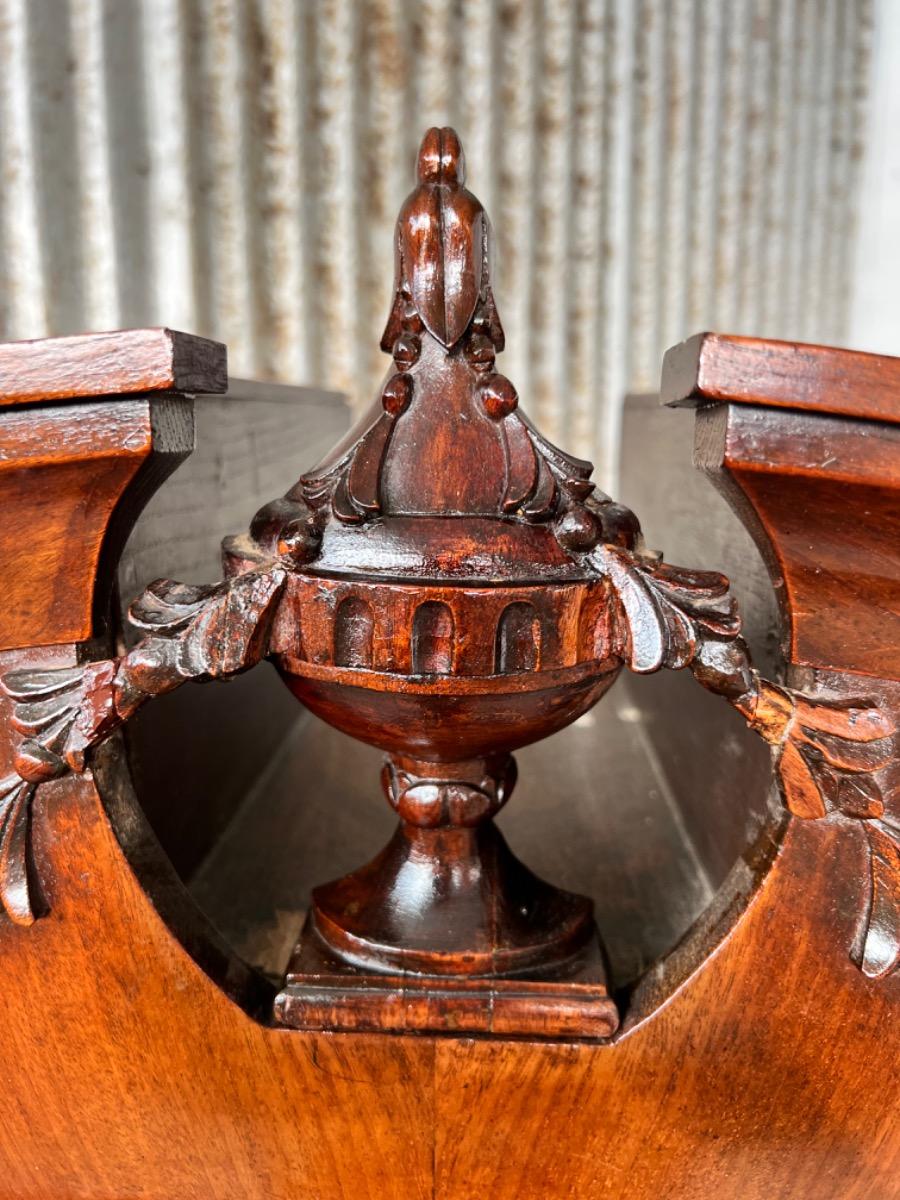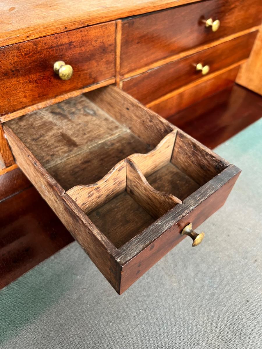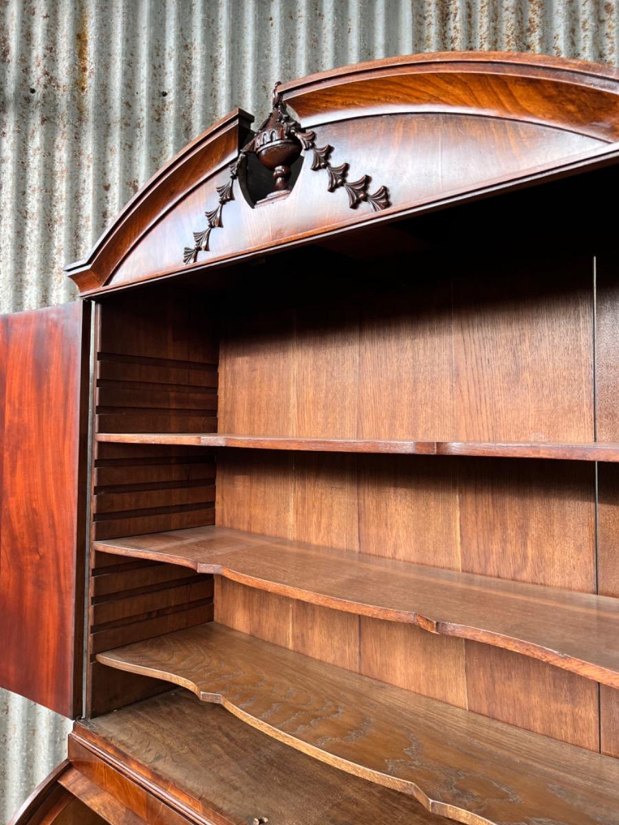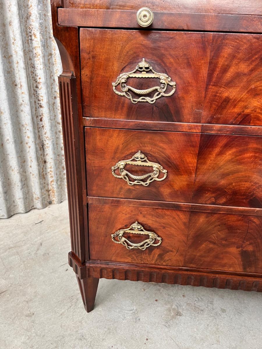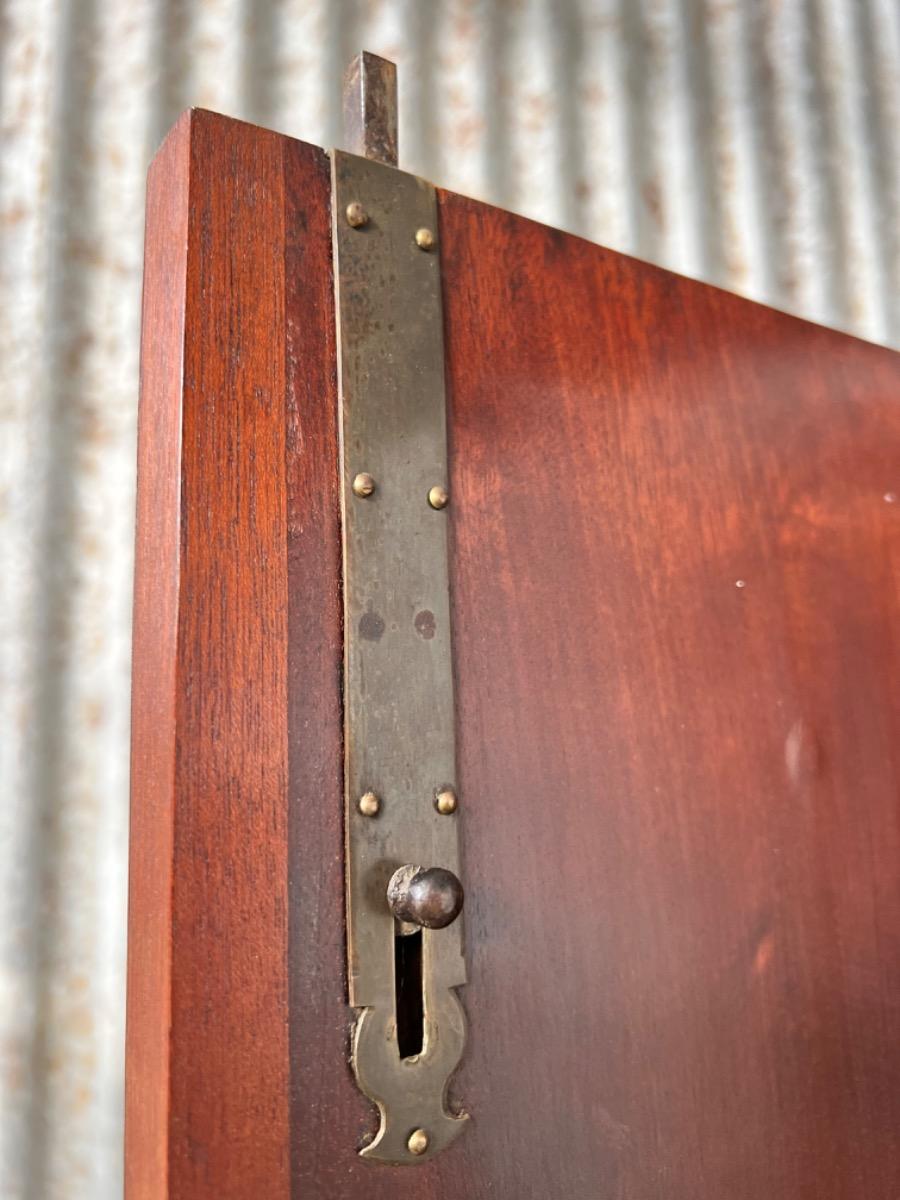 Achter de cilinder diverse kleine laden, deurtje met slot ook Cuba mahonie gefineerd.