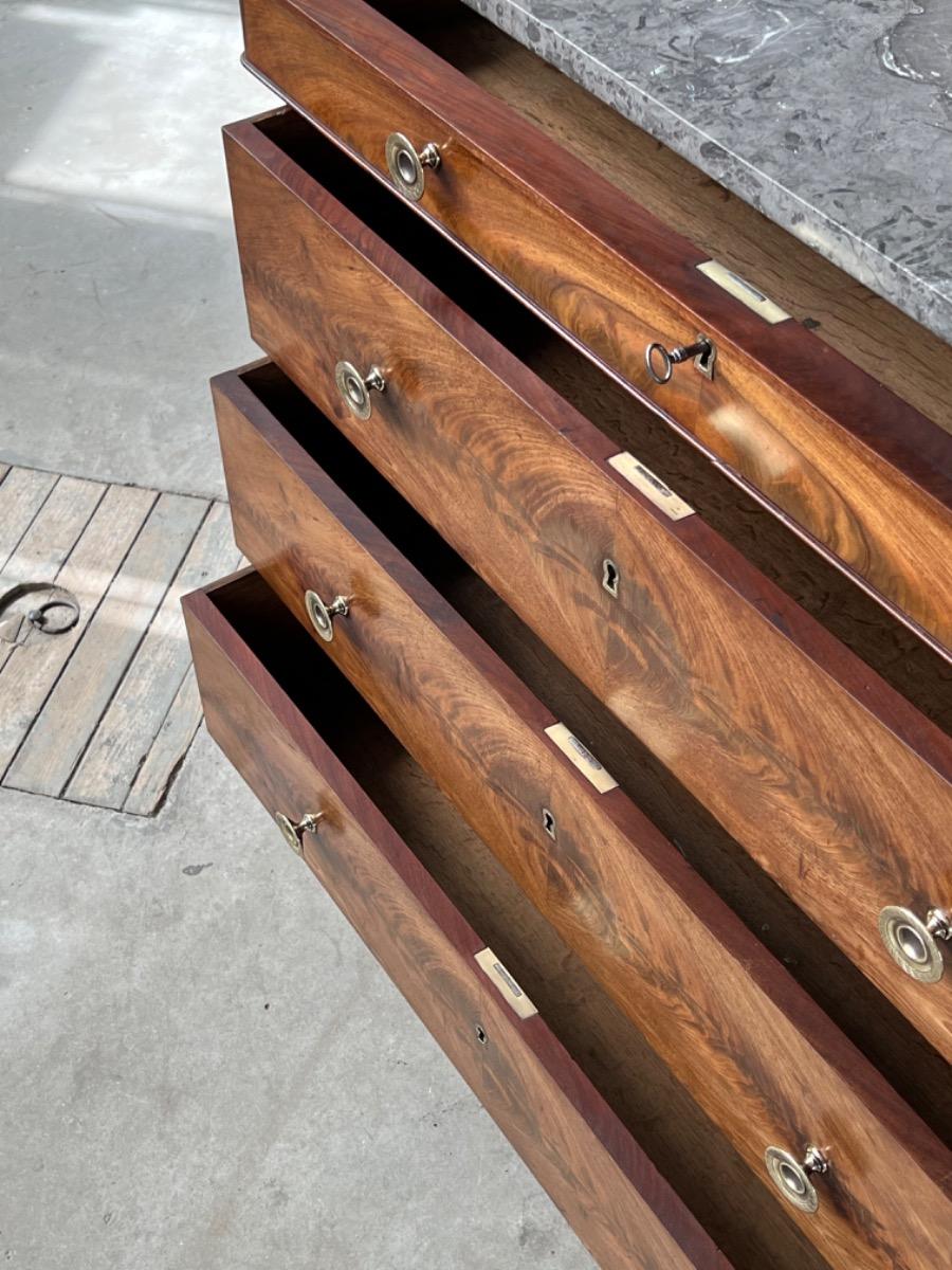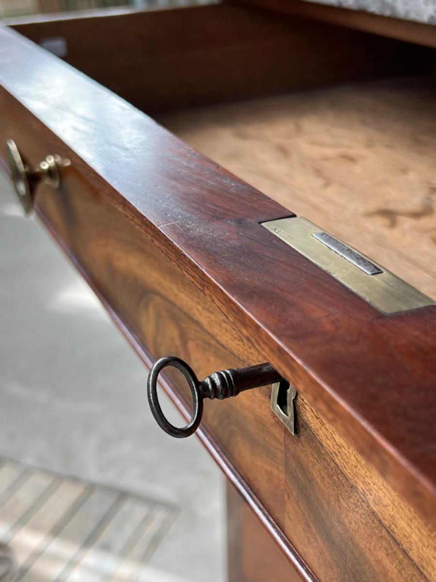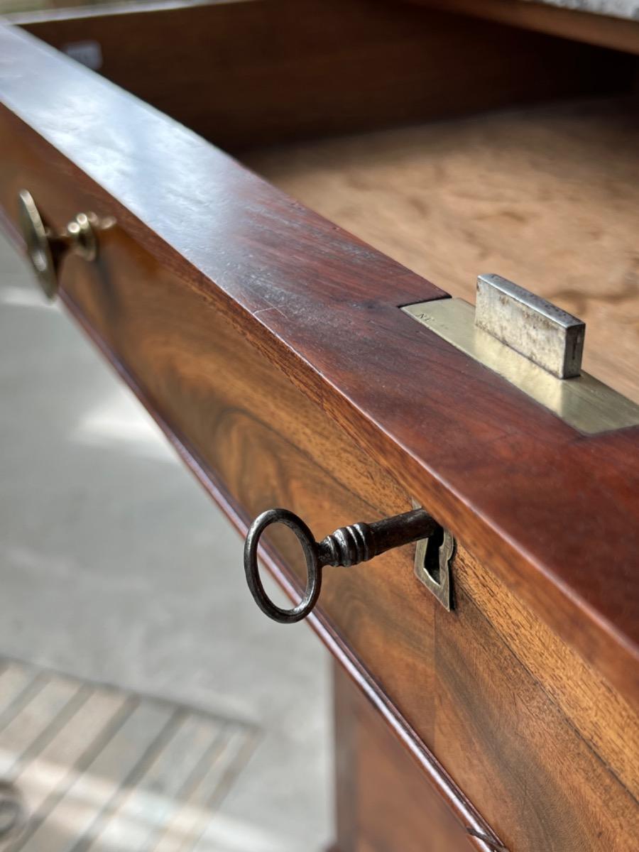 Vier goed werkende laden met werkende (oorspronkelijke) sloten, bovenste lade een eigen sleutel. Slot gemerkt met ‘NF’.
