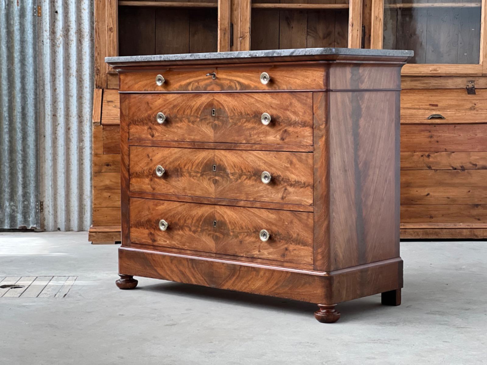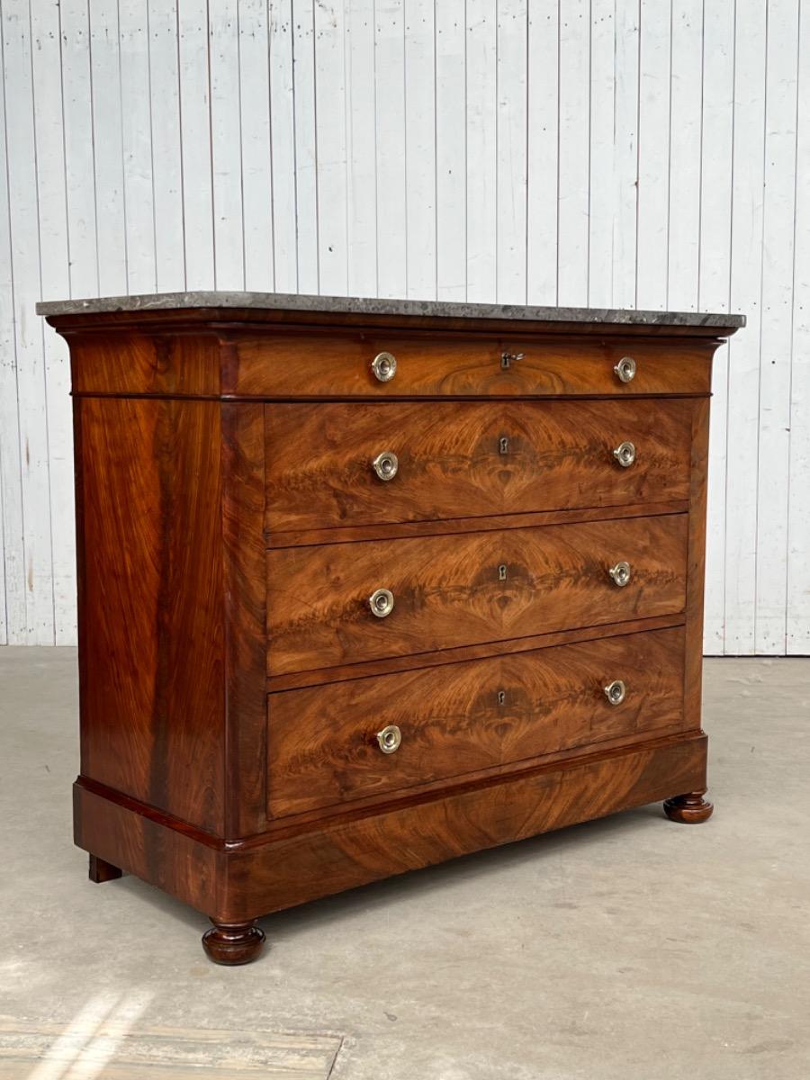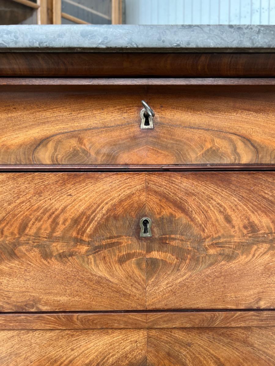 Vier goed werkende laden met werkende (oorspronkelijke) sloten, bovenste lade een eigen sleutel. Slot gemerkt met ‘NF’.