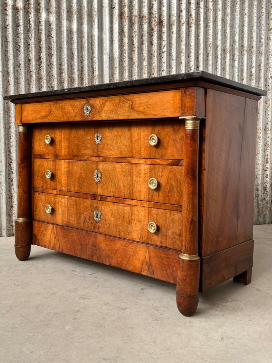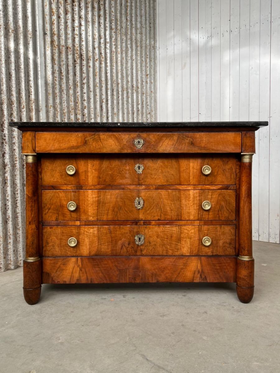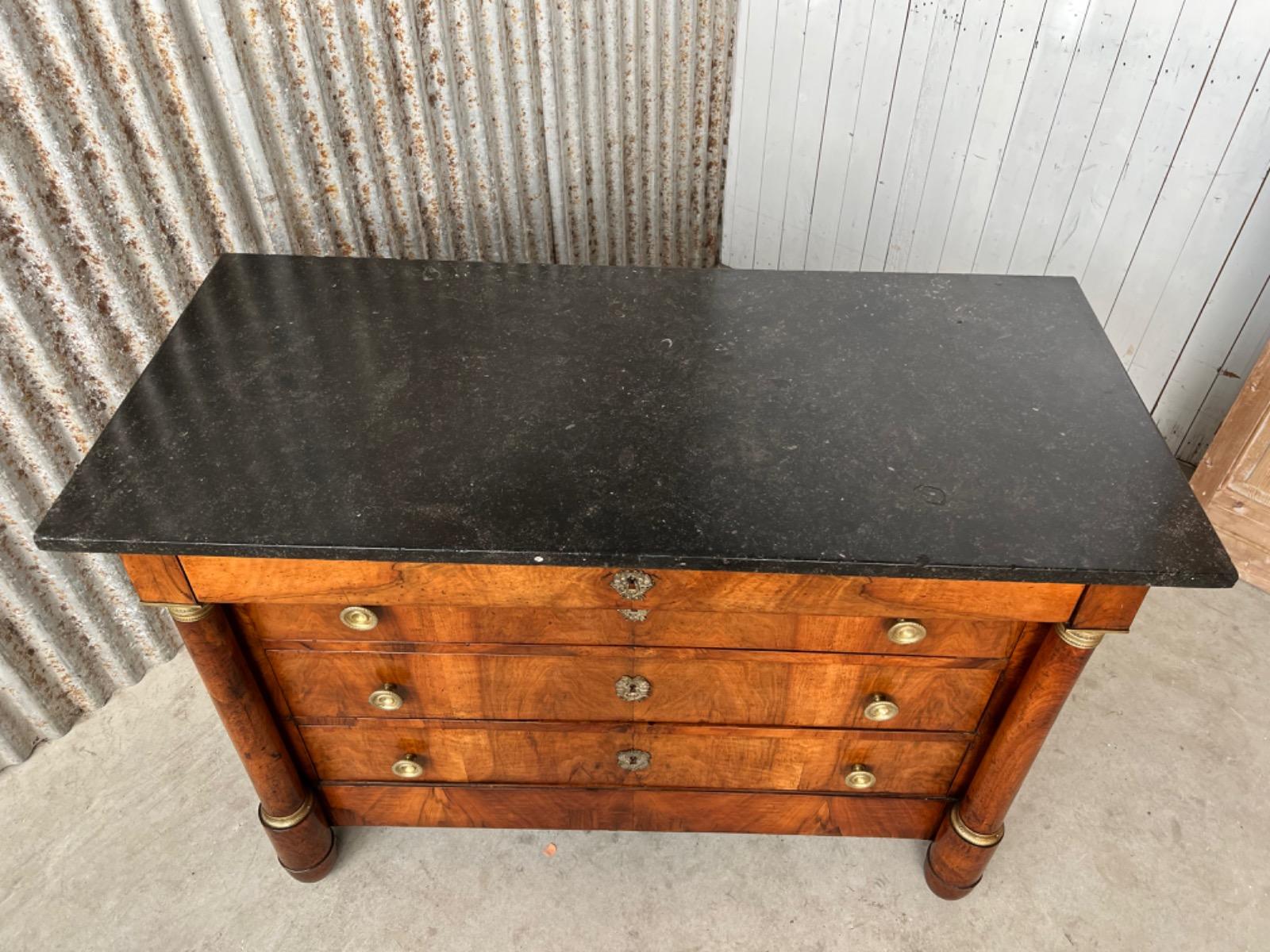 Franse empire commode, notenhout, met het oorspronkelijke dikke Arduin hardstenen blad.