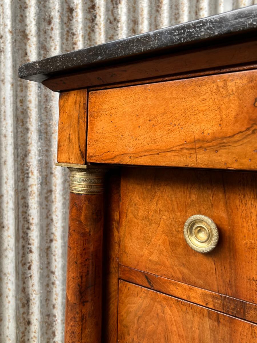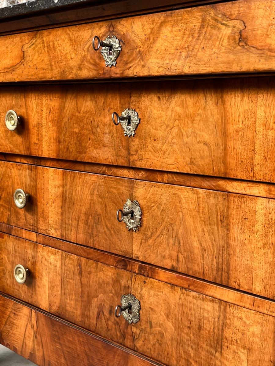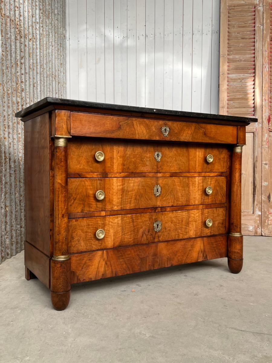 Franse empire commode, notenhout, met het oorspronkelijke dikke Arduin hardstenen blad.