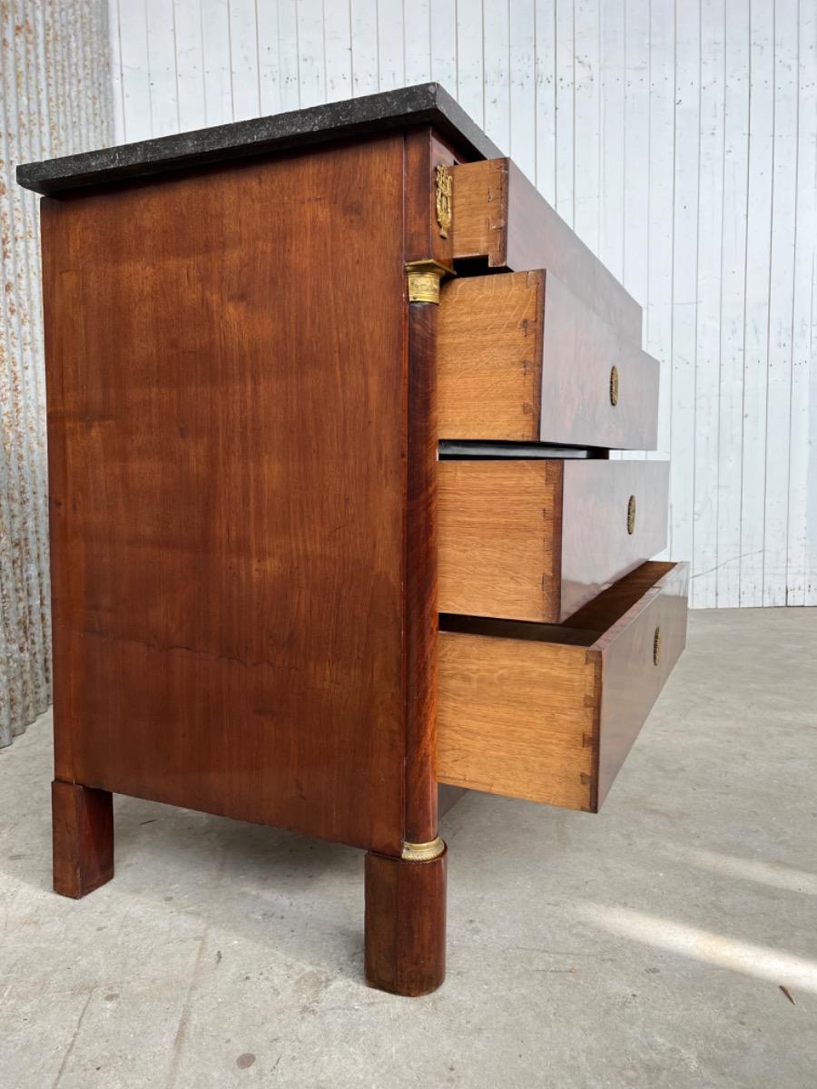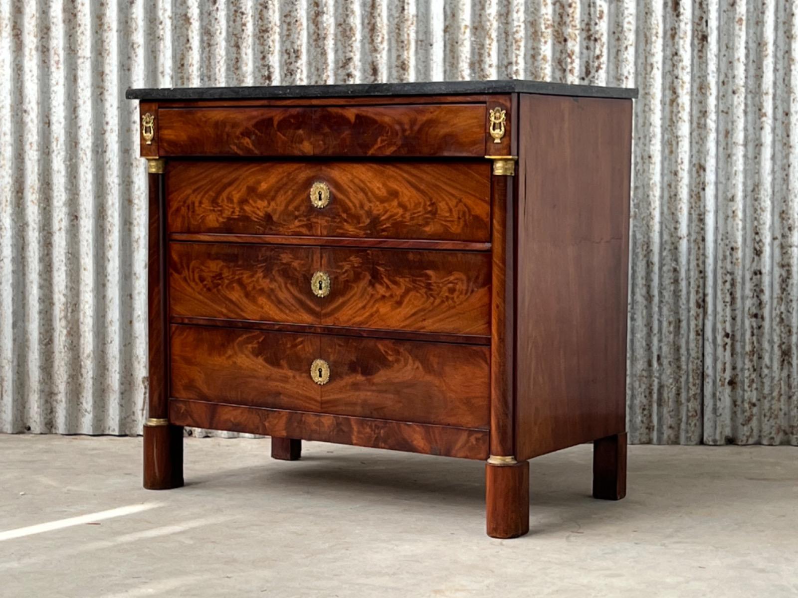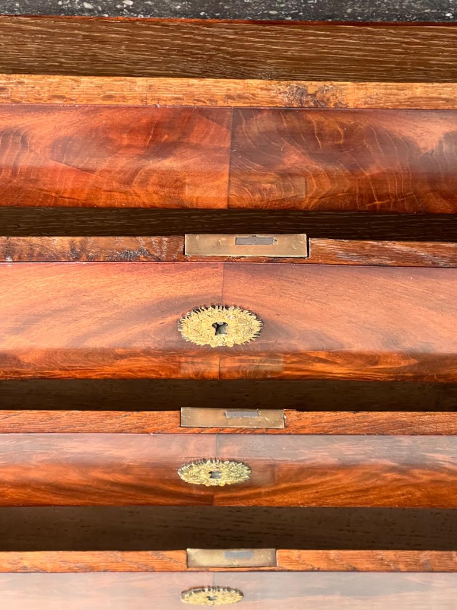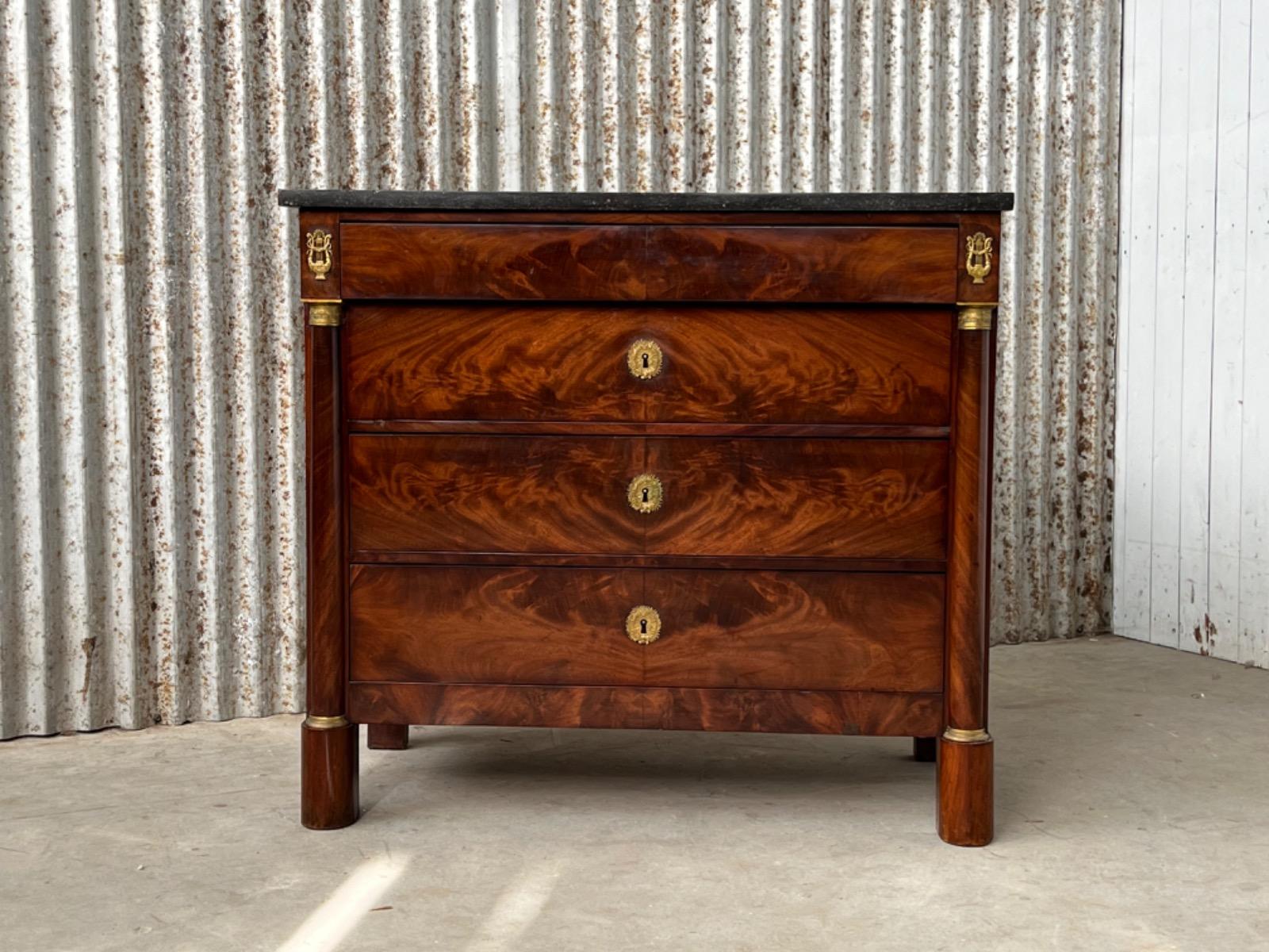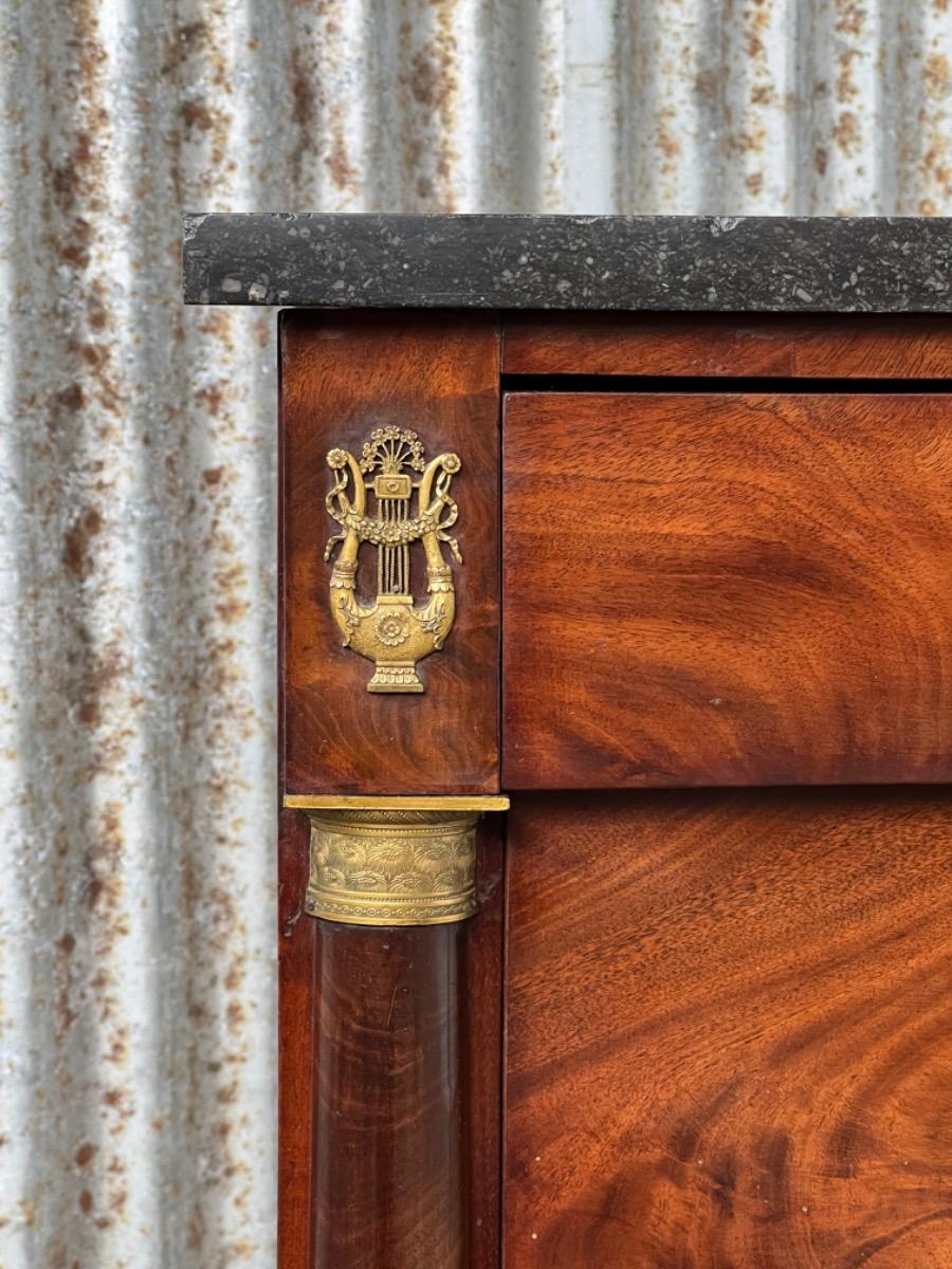 Franse empire commode, Cuba mahonie, met het oorspronkelijke dikke Arduin hardstenen blad. (Gekapt zie foto).