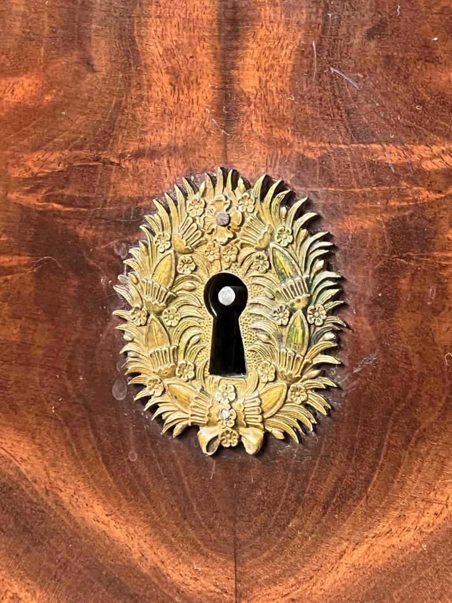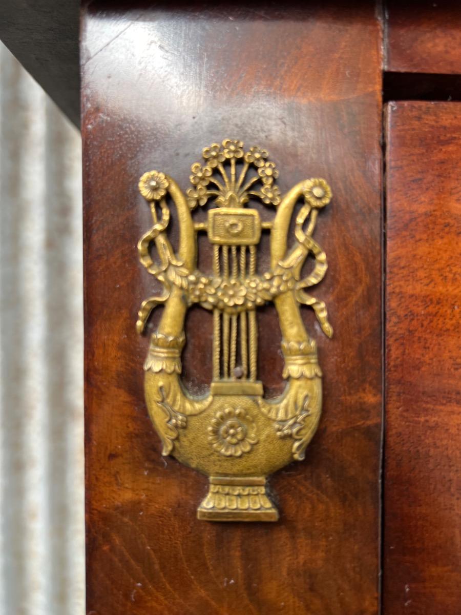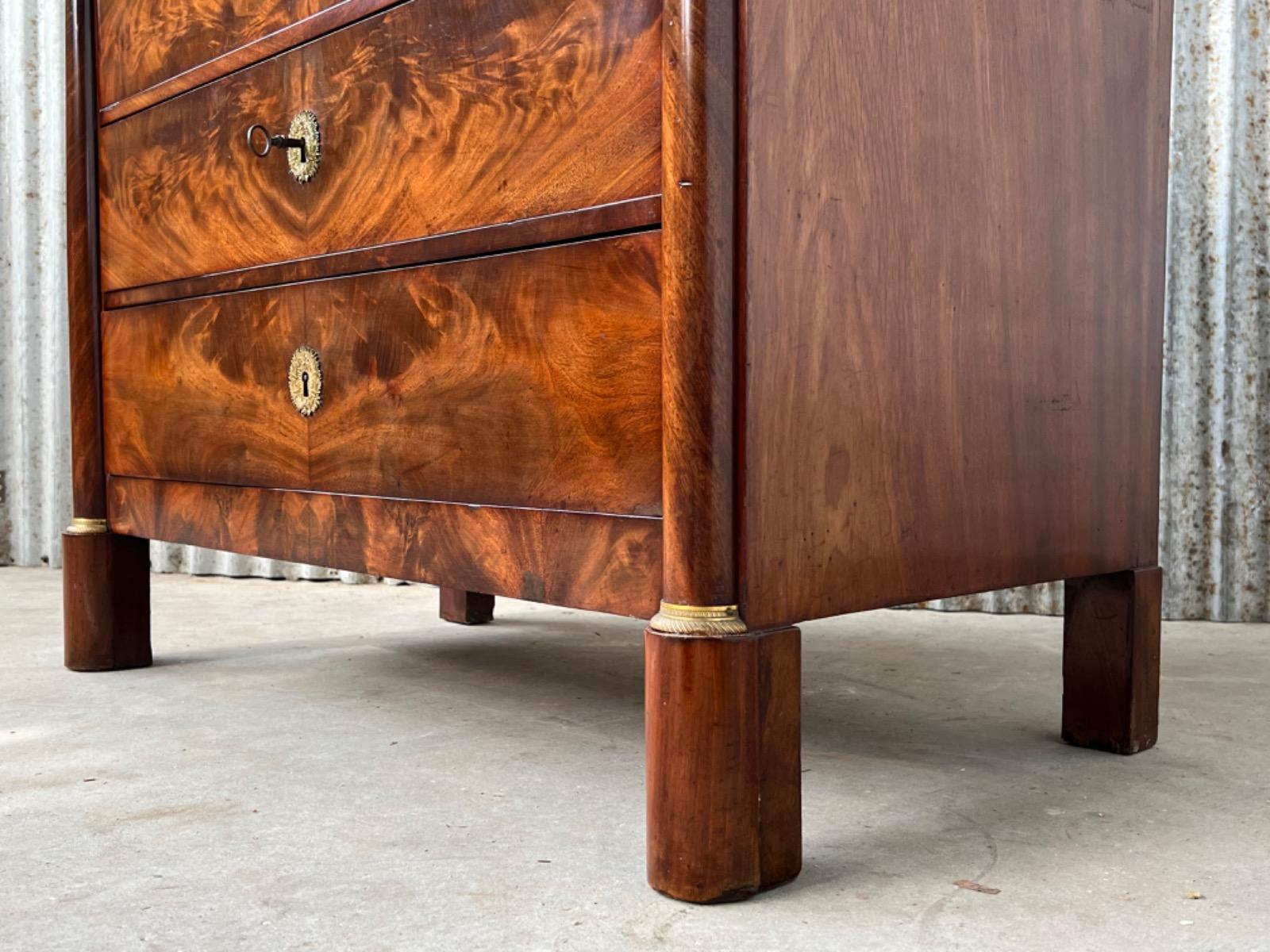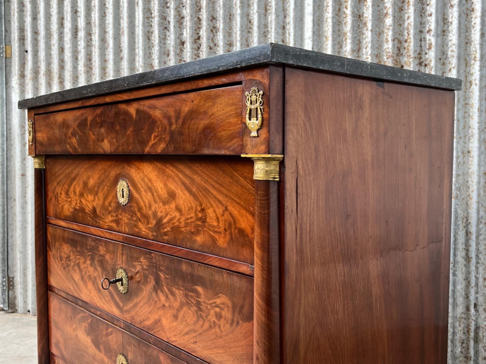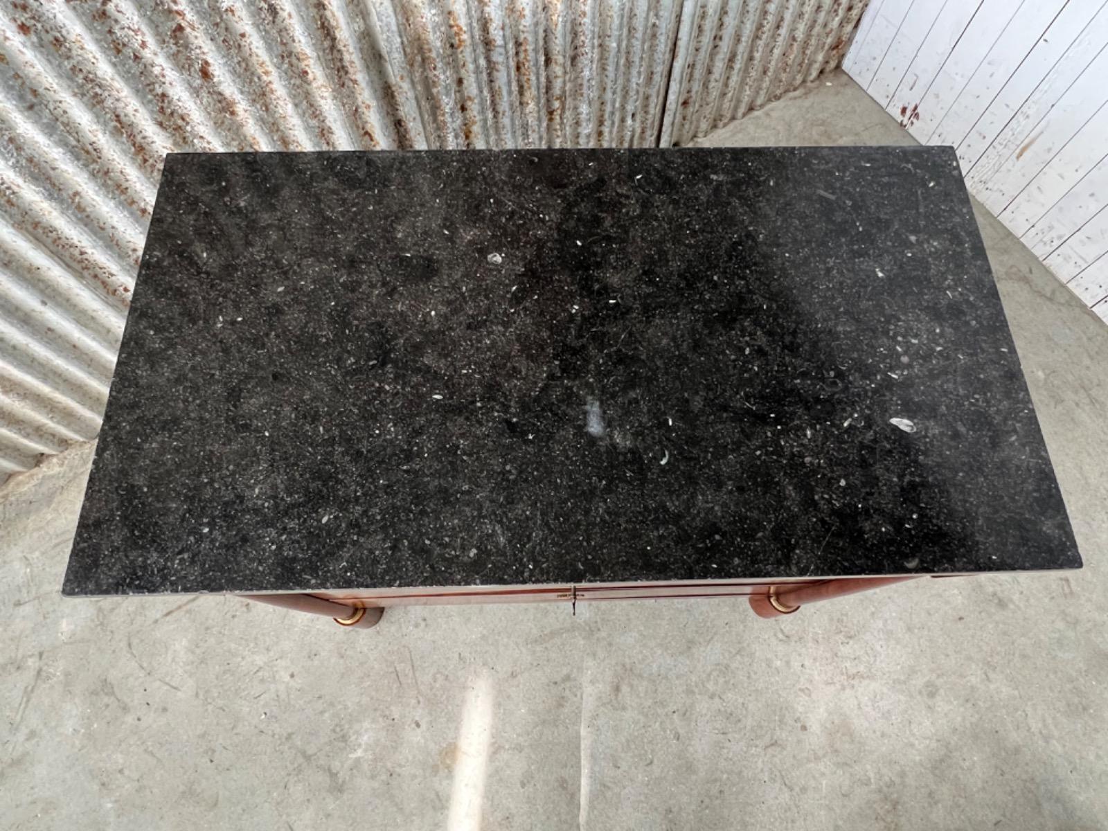 Franse empire commode, Cuba mahonie, met het oorspronkelijke dikke Arduin hardstenen blad. (Gekapt zie foto).