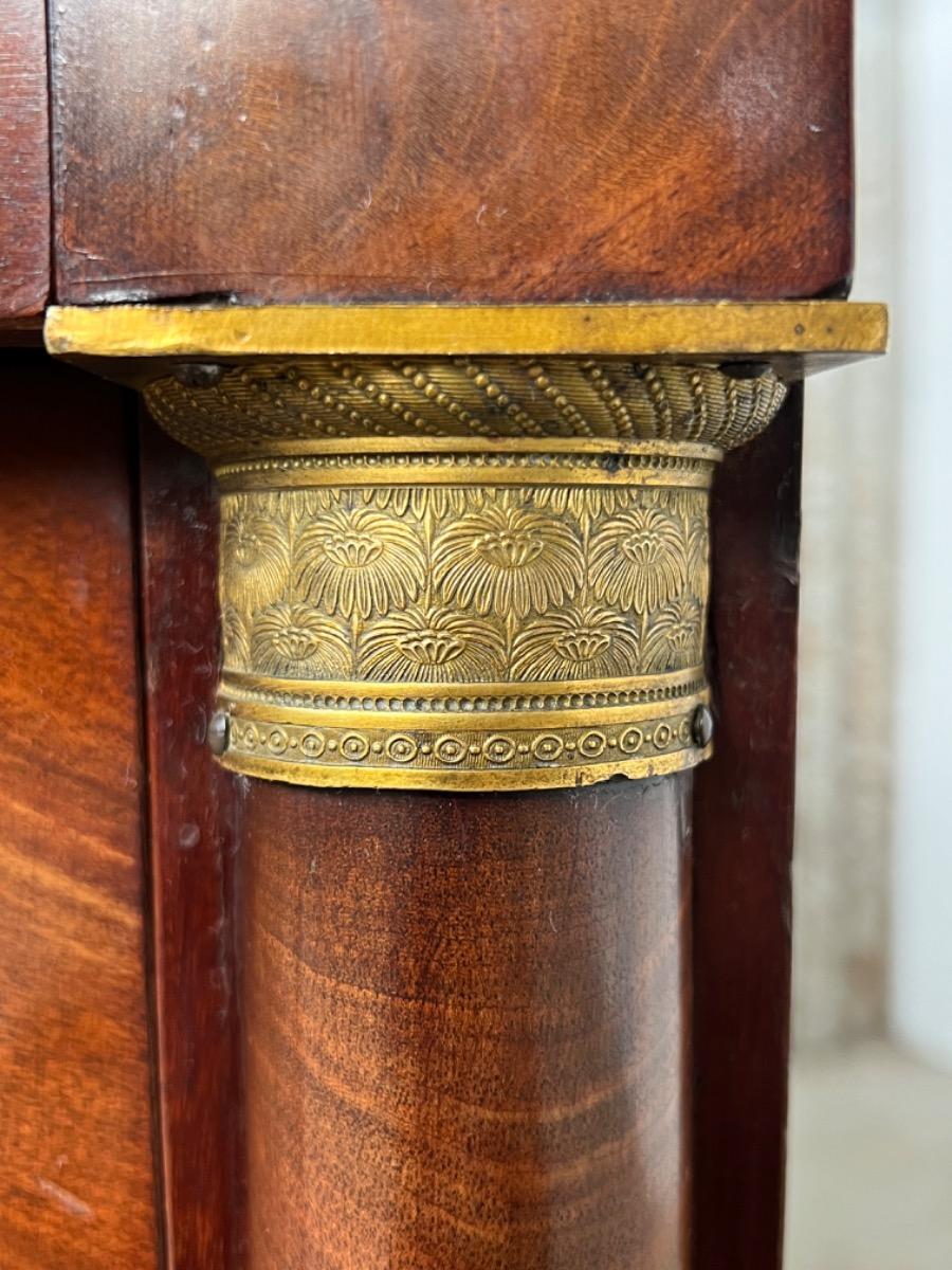 Volle mahonie houten pilaren met oorspronkelijke vuurverguld messing kapitelen.