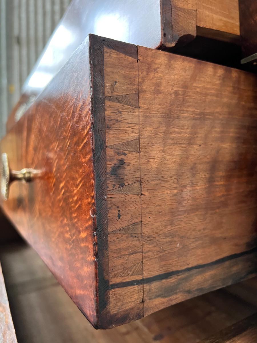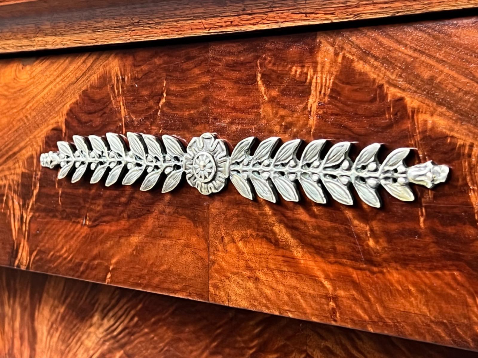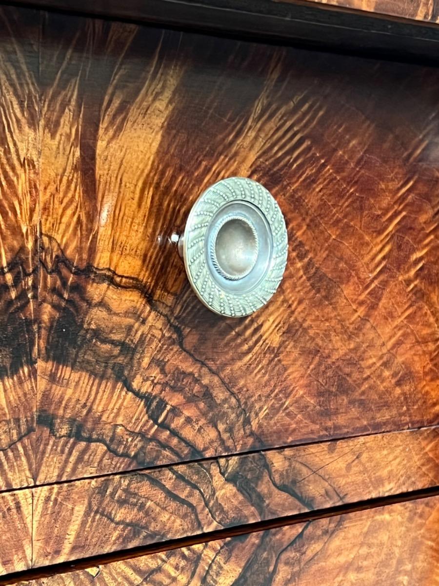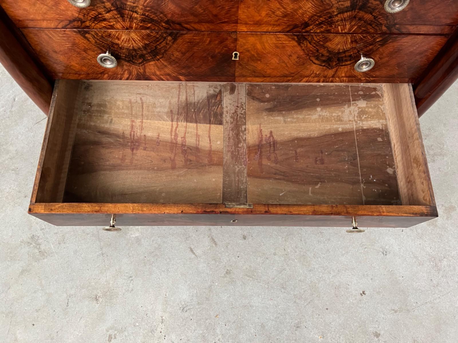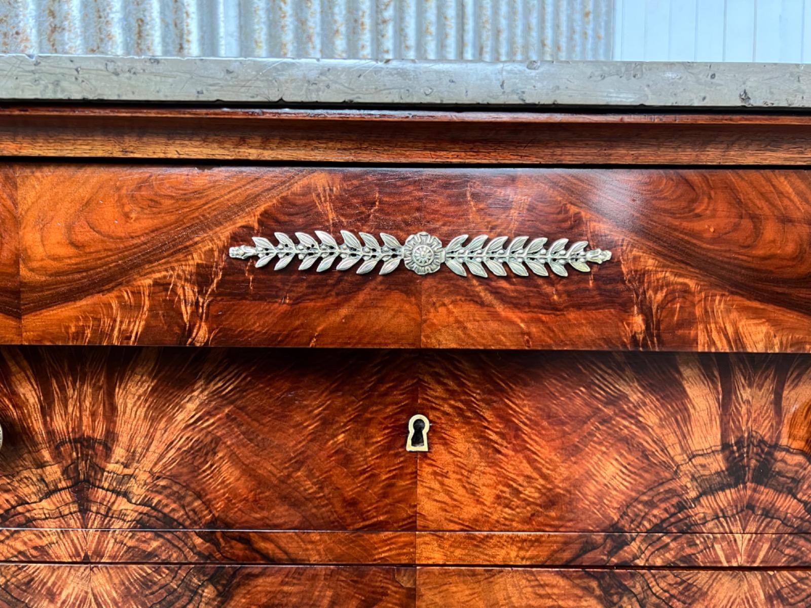 Franse empire ladekast of commode, met fraai over alle laden doorlopend noten fineer