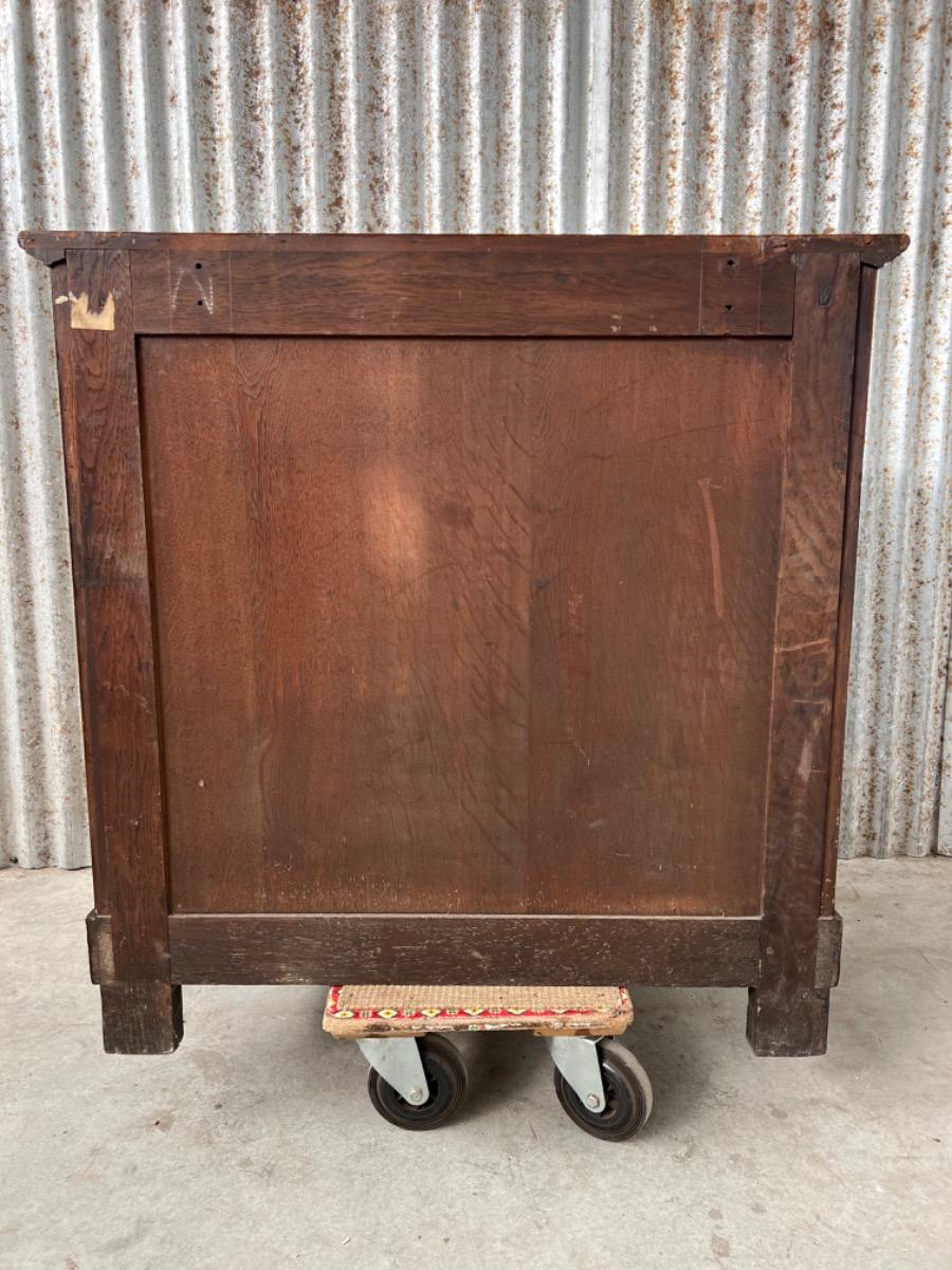 Laden (uitgezonderd de bovenste) van volle eik gefineerd. Zeer fraaie kwaliteit.
