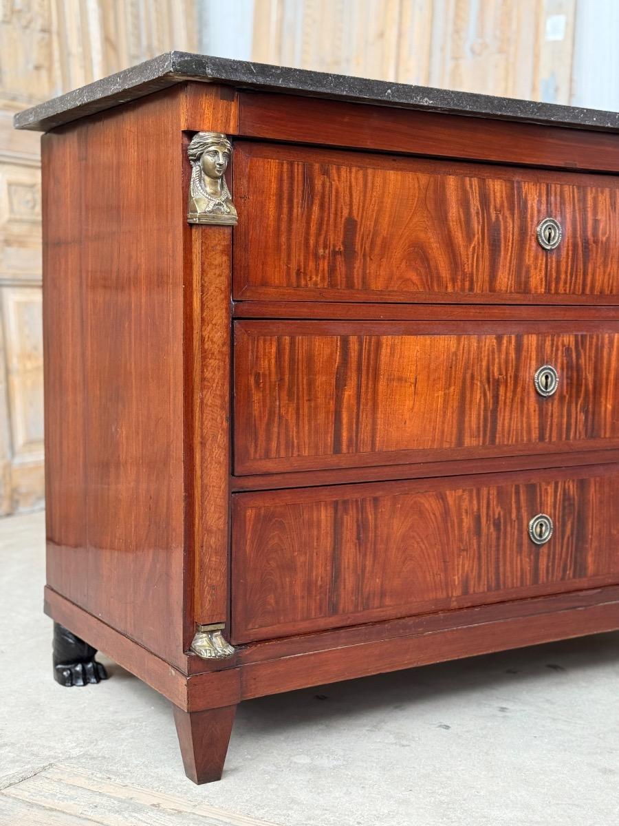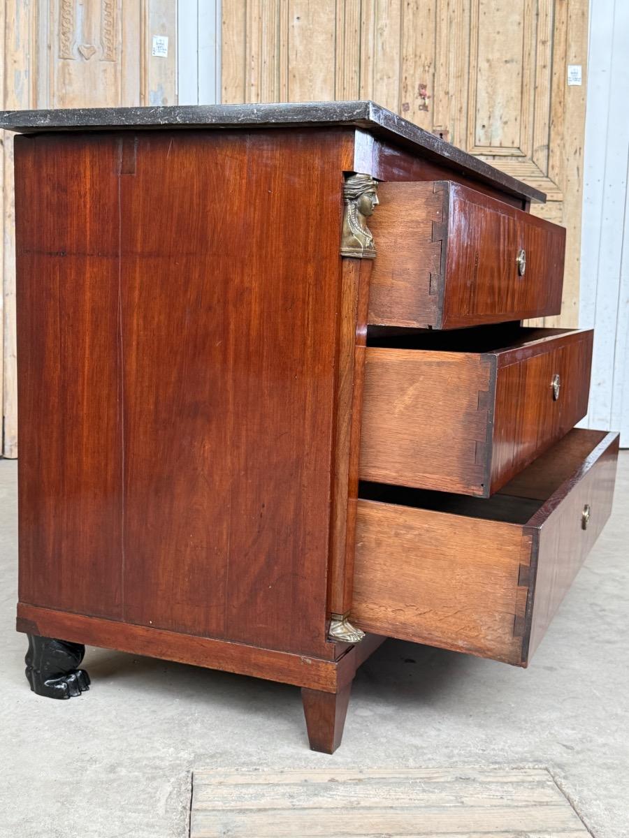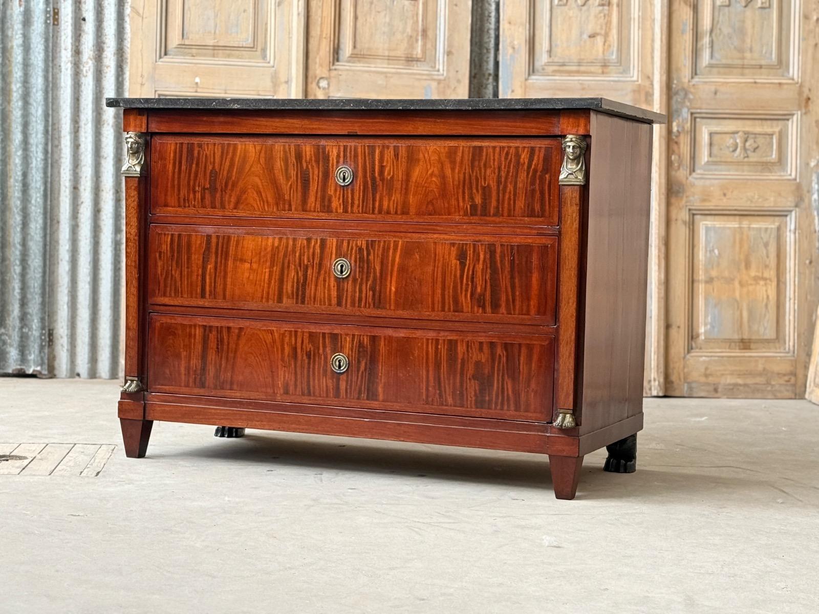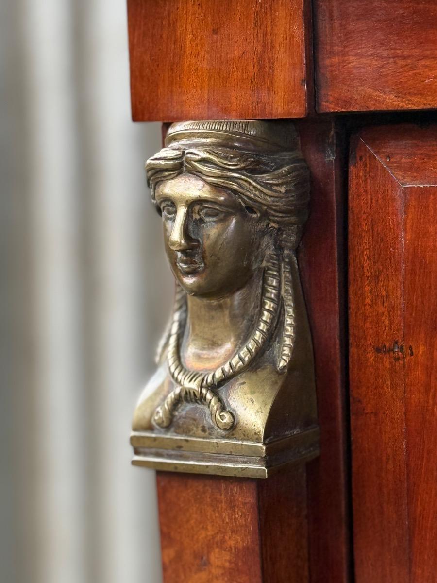 Franse Empire, retour d’Egypt ladekast of commode met fraai over alle laden doorlopend Cuba mahonie.