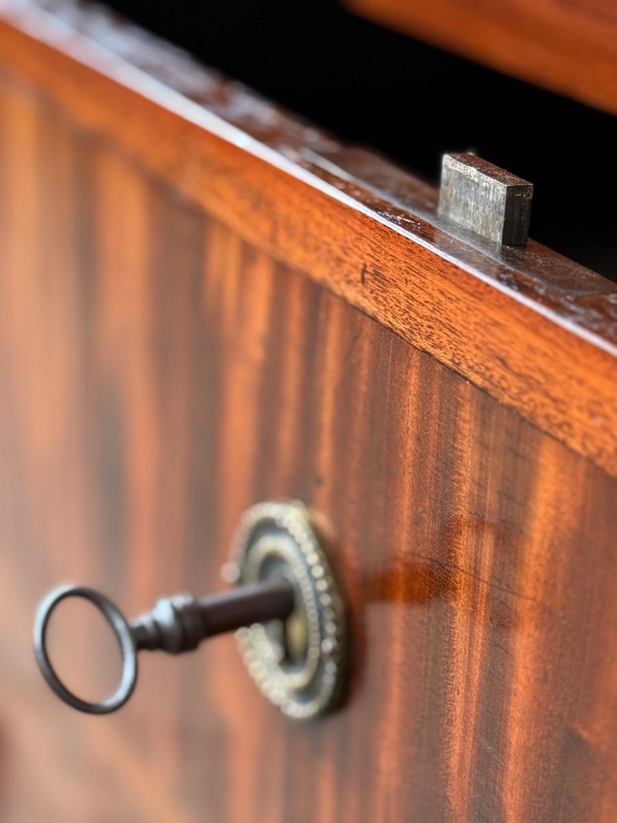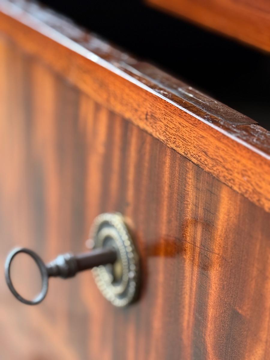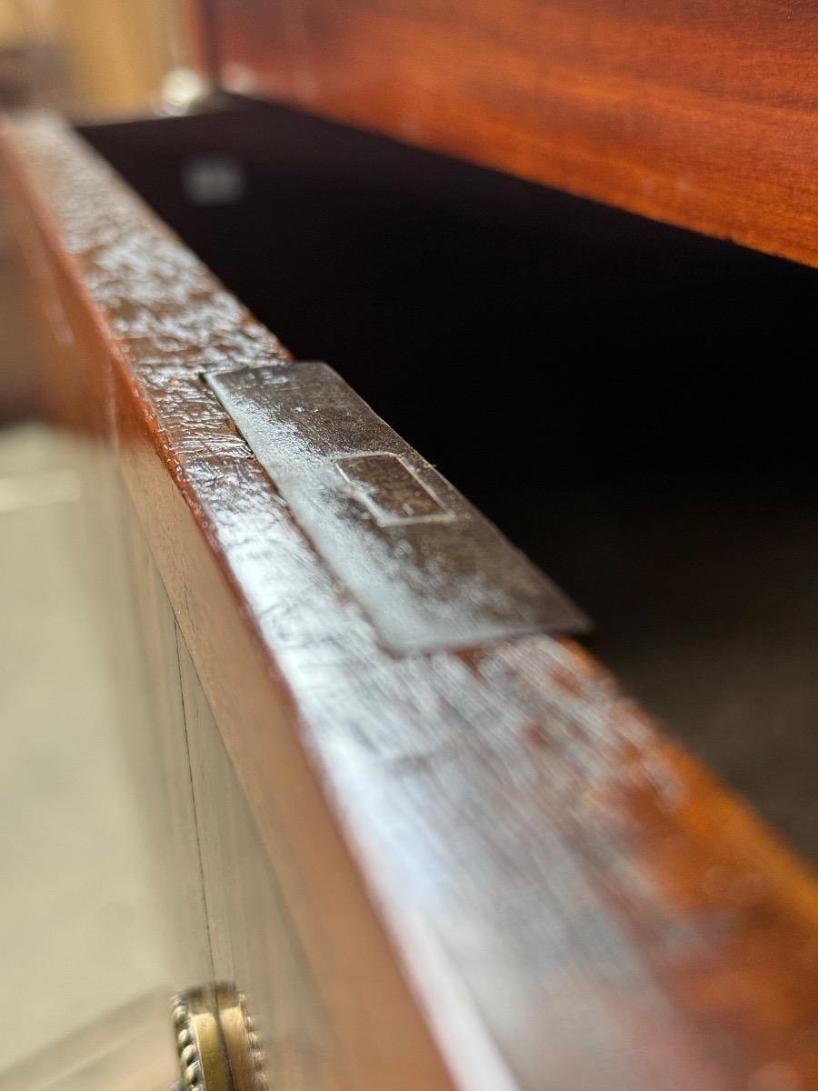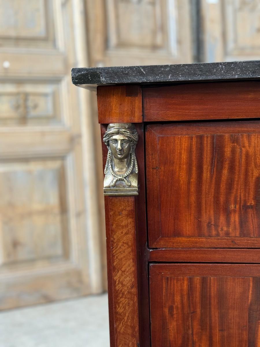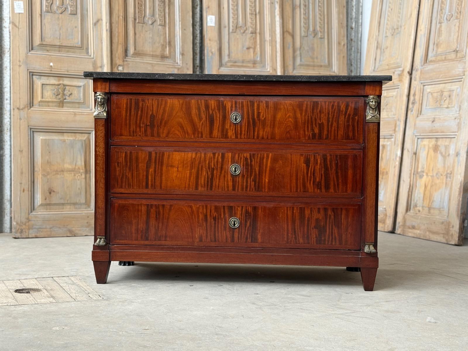 Franse Empire, retour d’Egypt ladekast of commode met fraai over alle laden doorlopend Cuba mahonie.