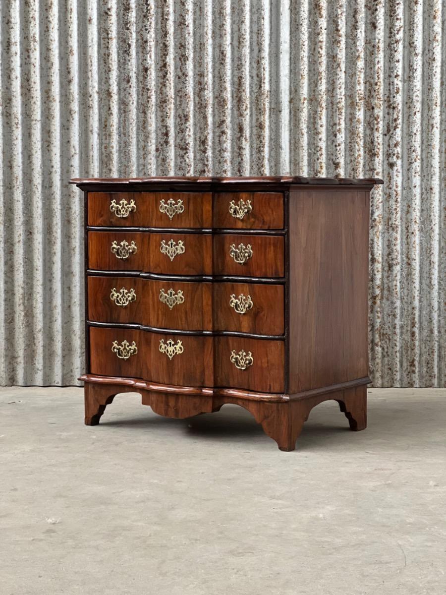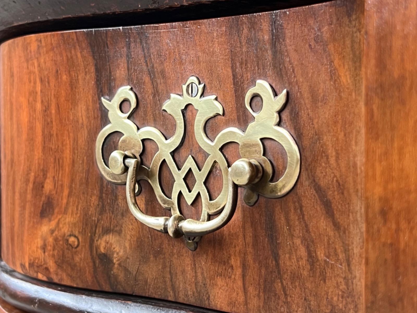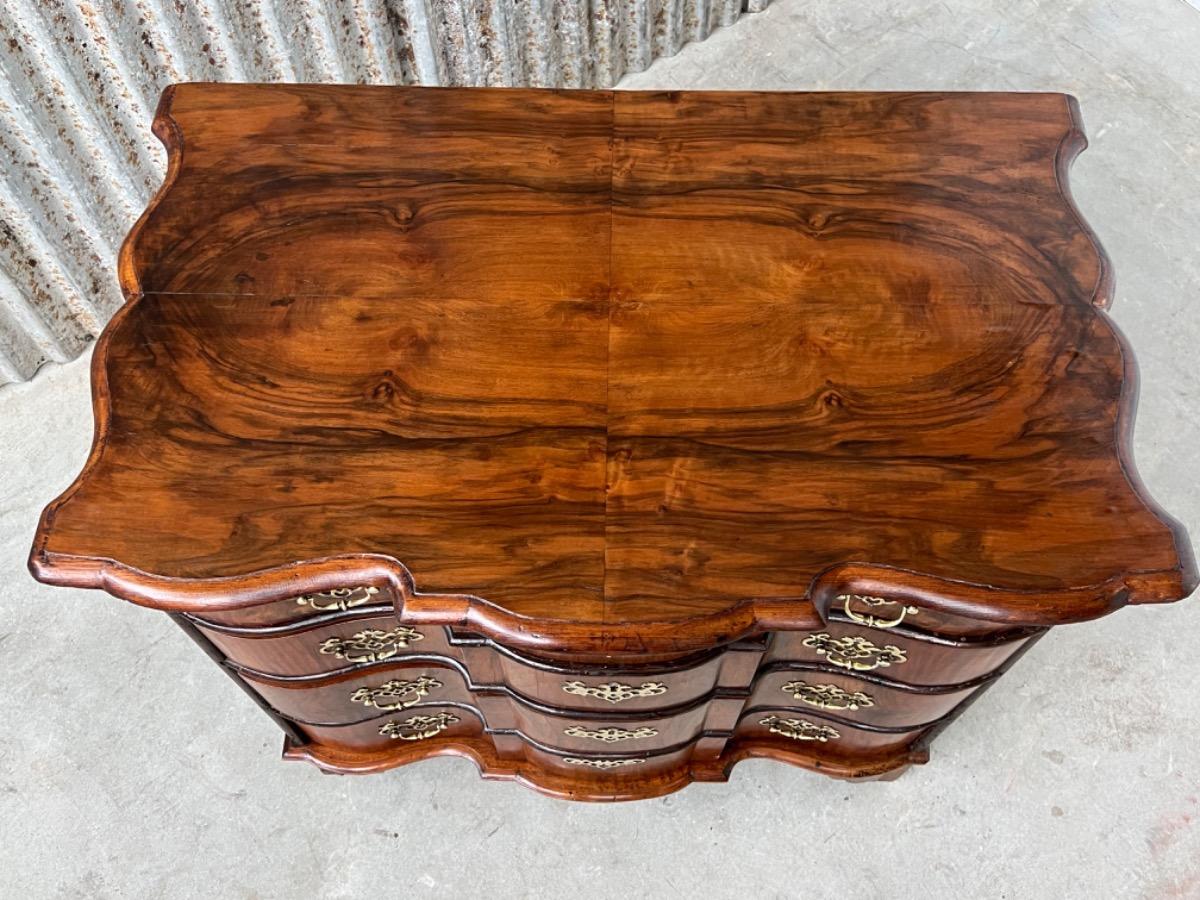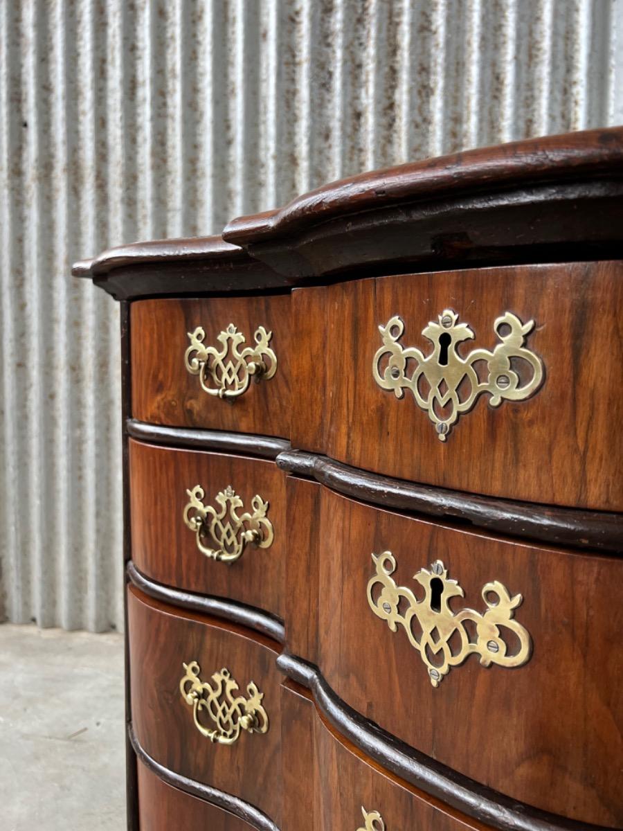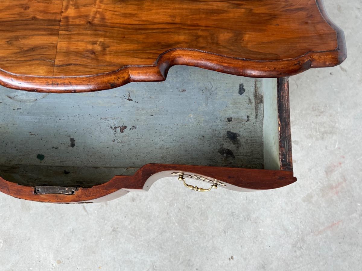 Typerende louis XV vorm van het boven blad meelopend in de vorm van de laden.
