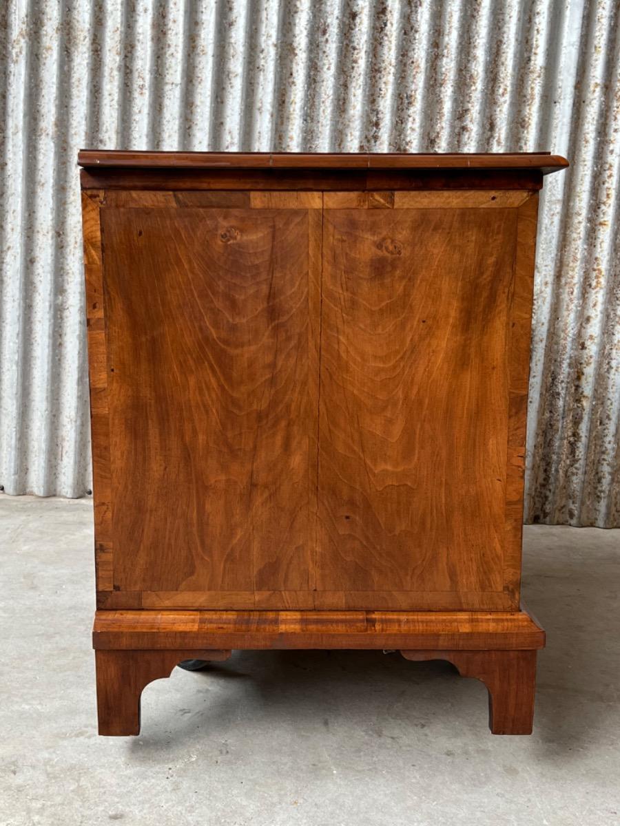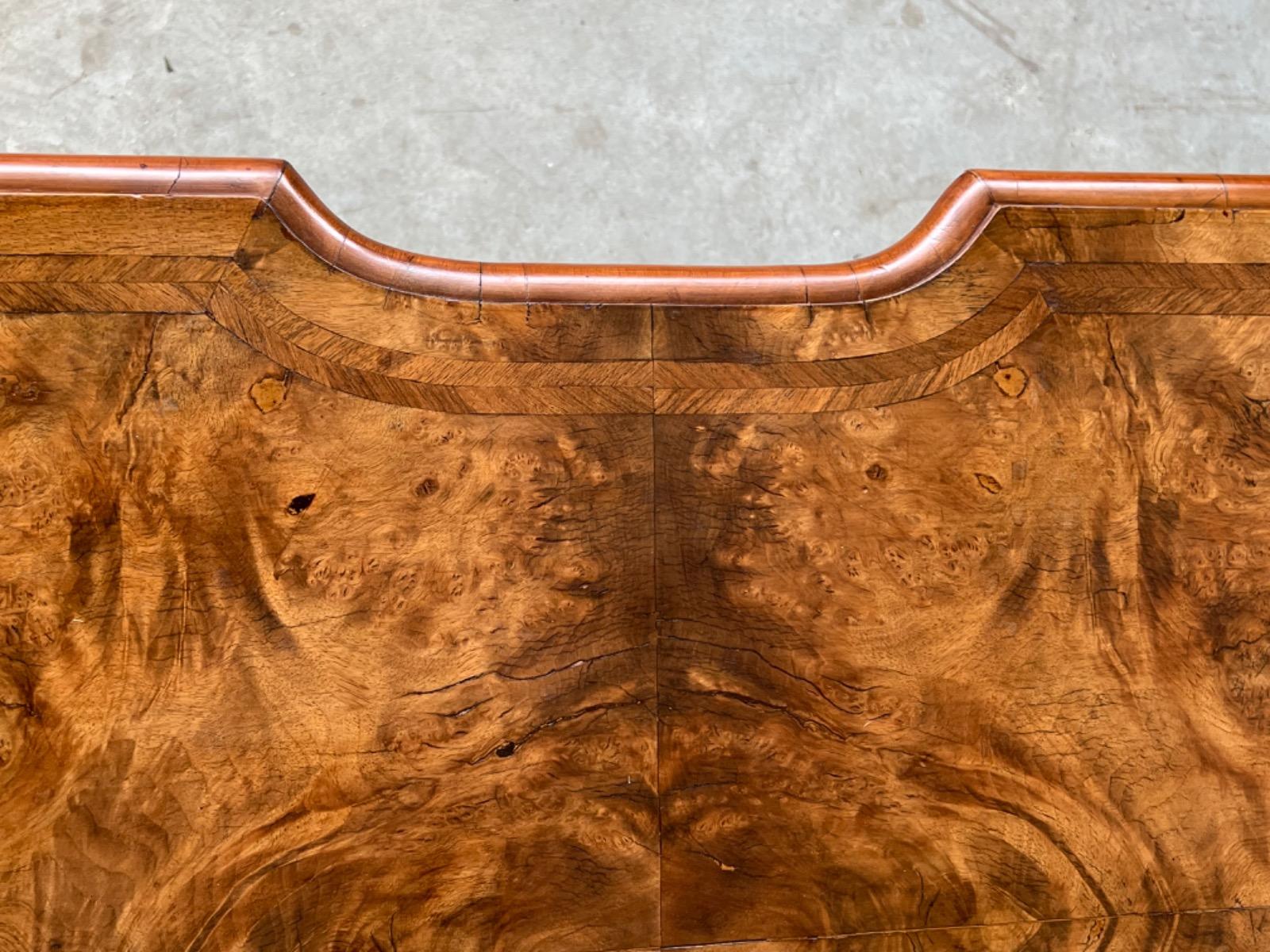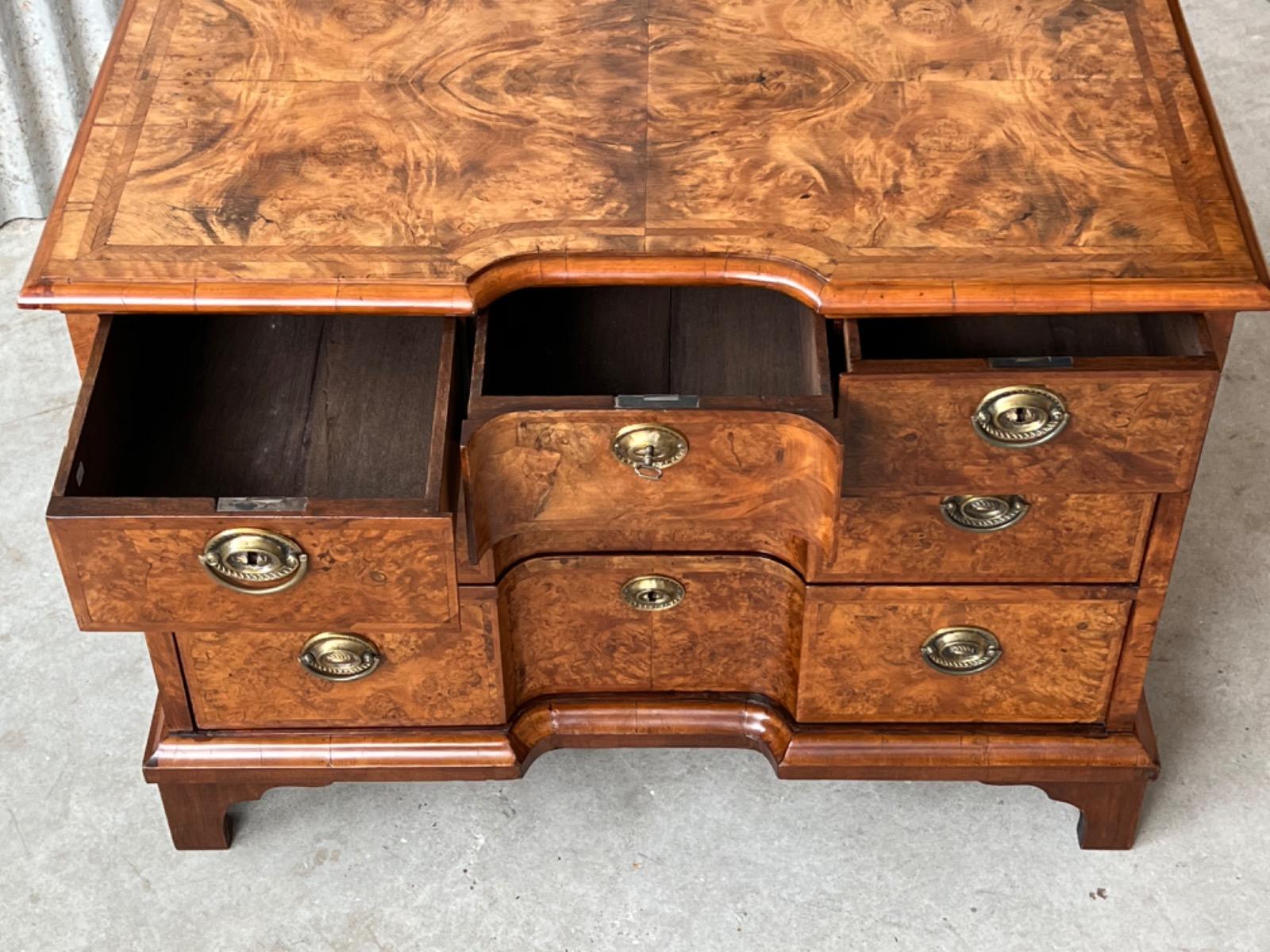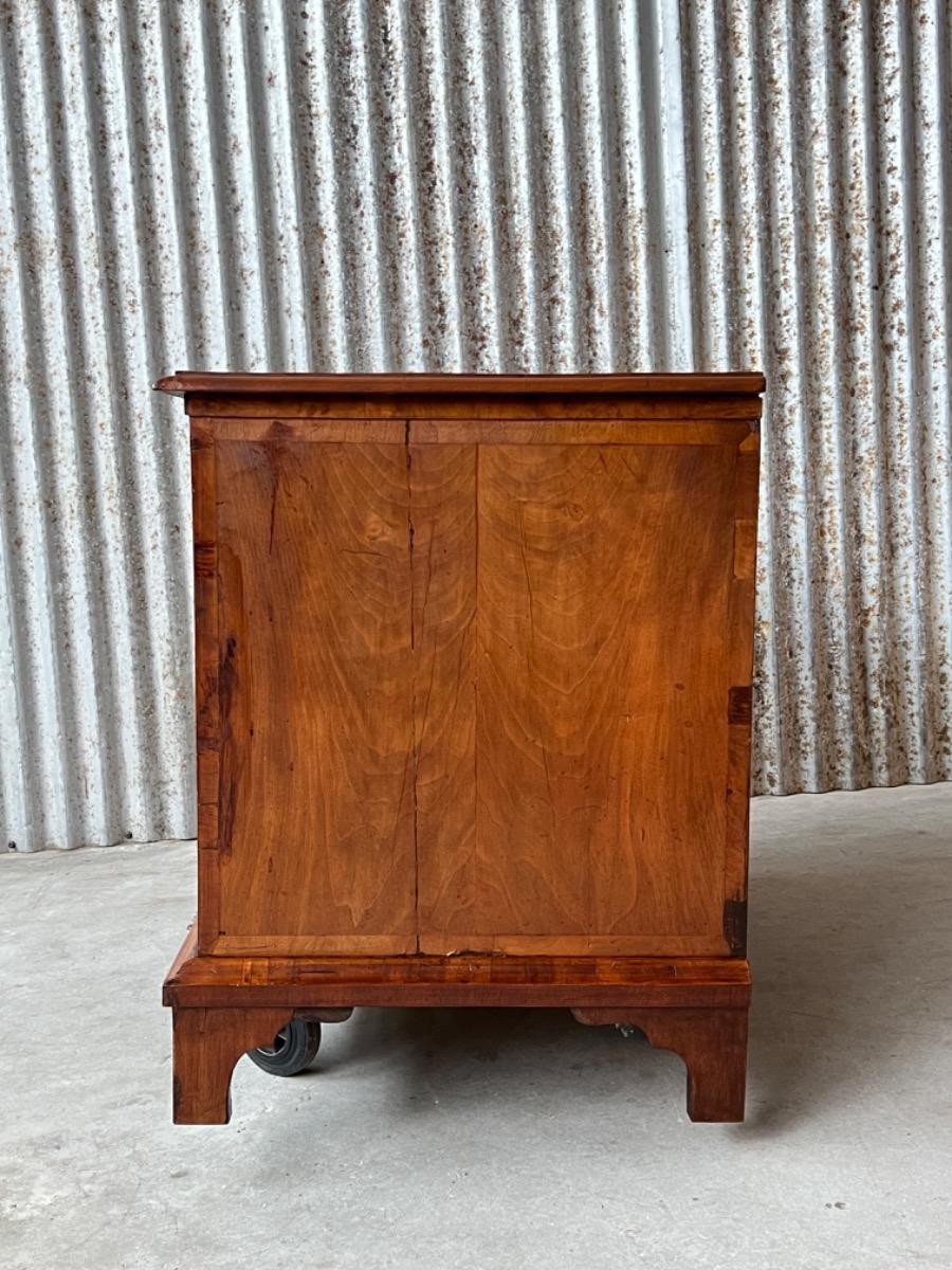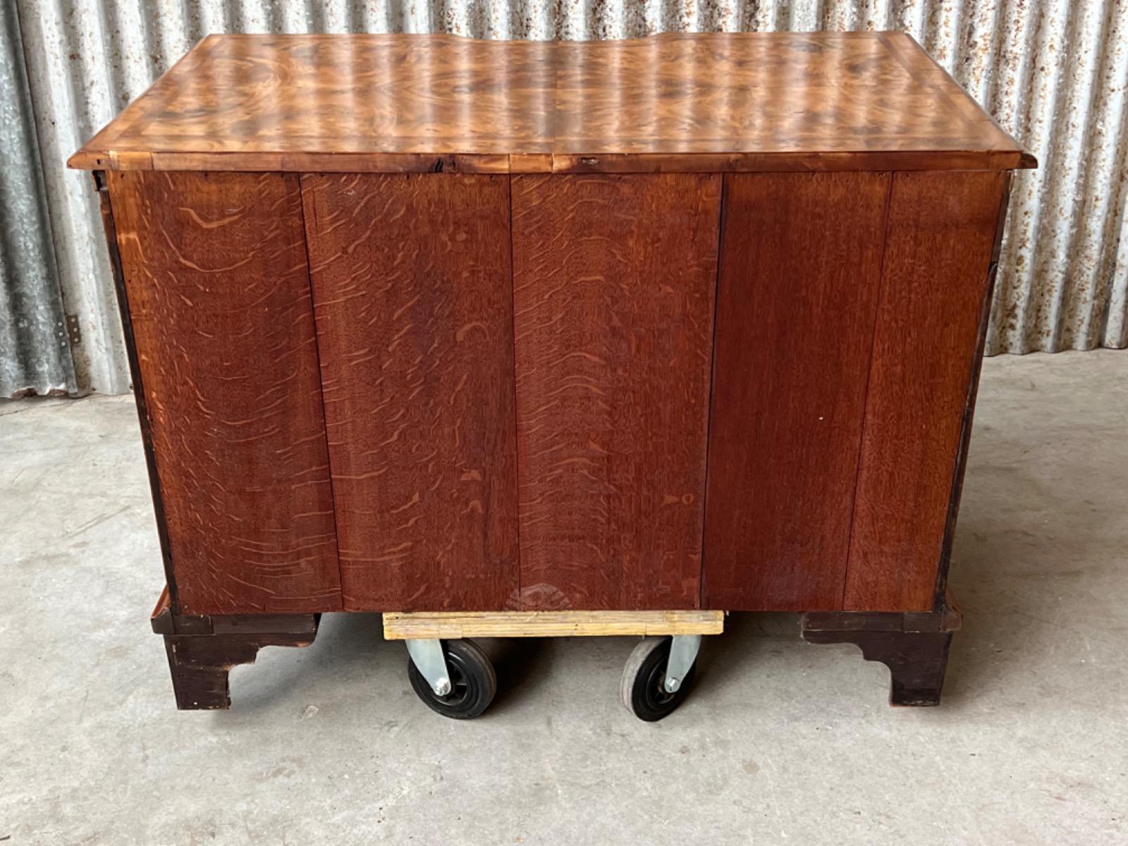 Wortelnoten commode midden 18e eeuw met ovaal verguld messing beslag. 2 over 3 laden.