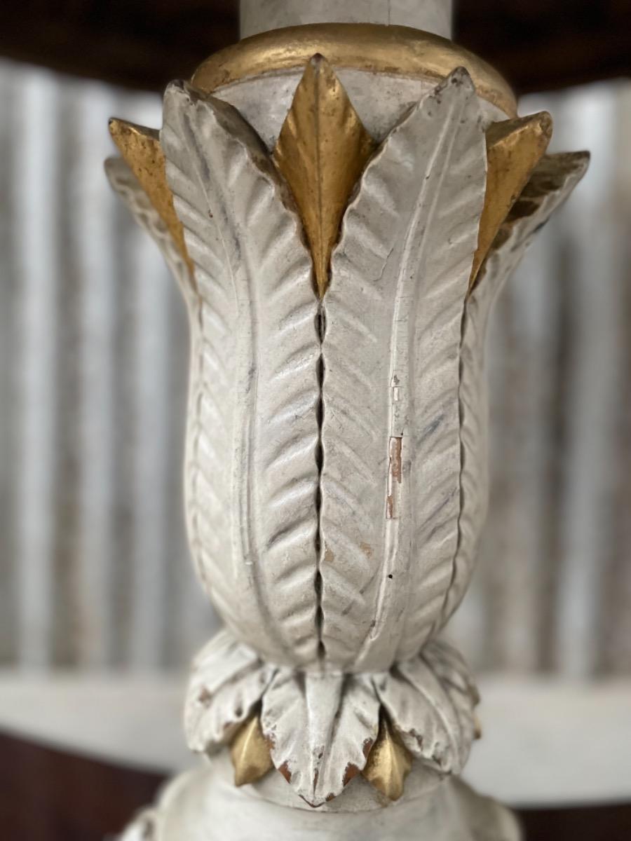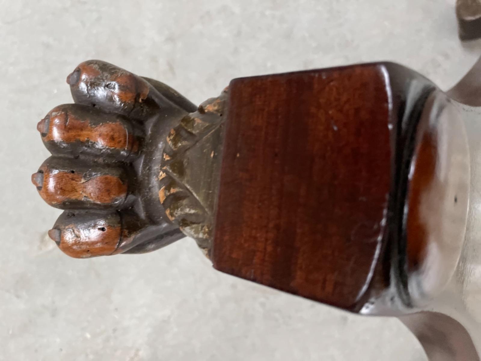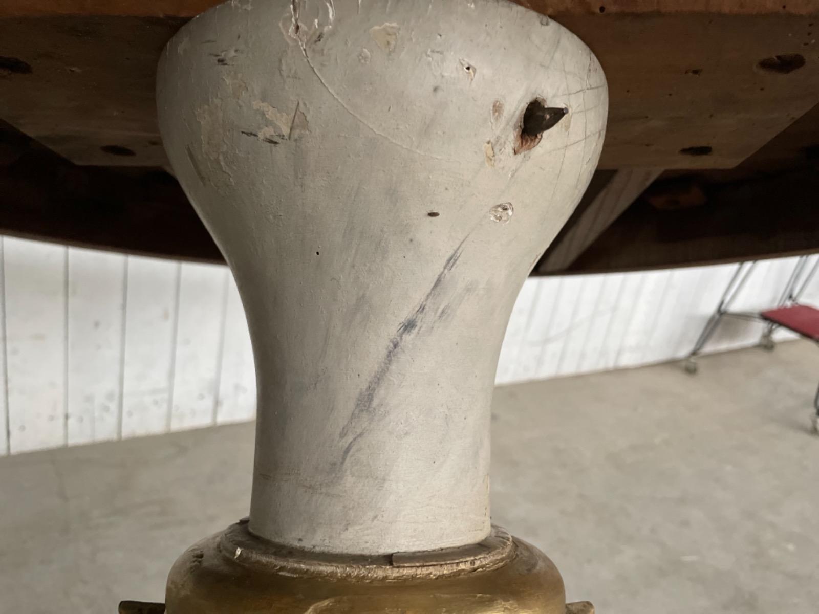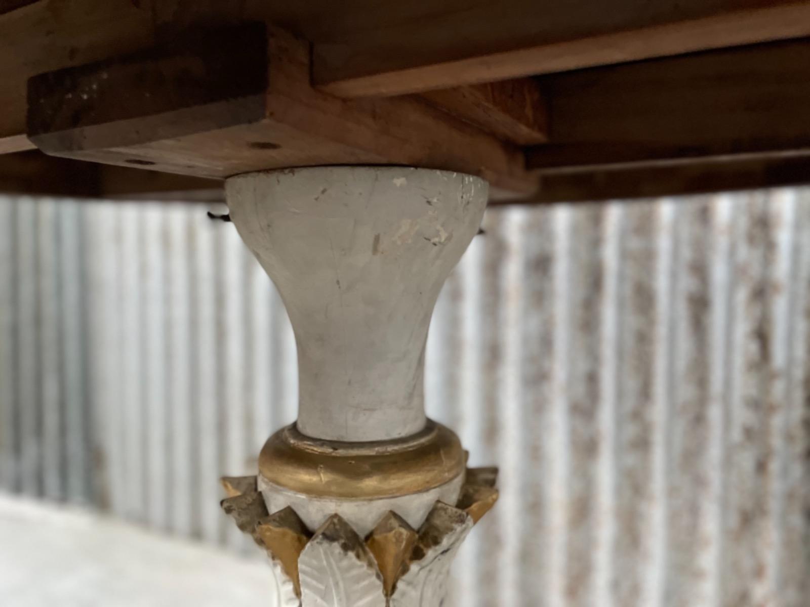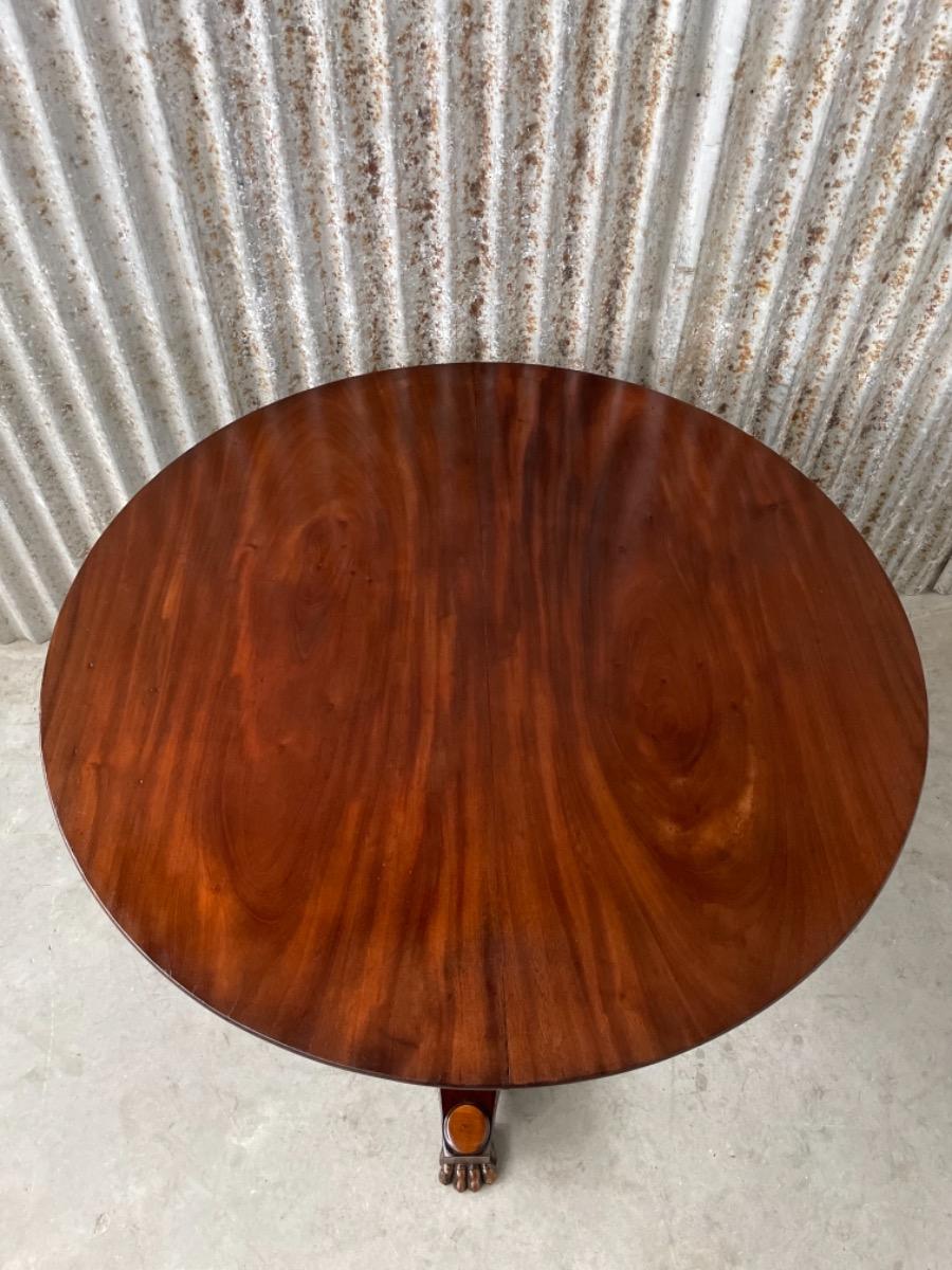 Massief mahonie tafel met gemarmerde centrale poot, vergulde details, acanthusblad. Mahonie driespant gedragen door polychroom verniste klauwpoot. Louis XVI - Empire