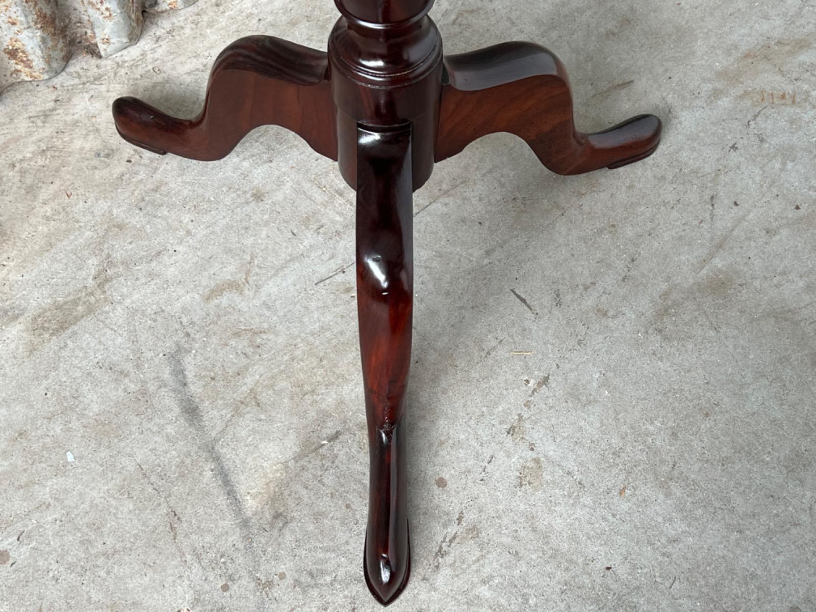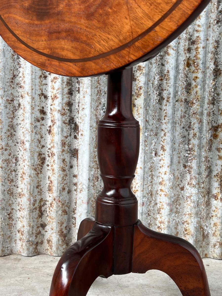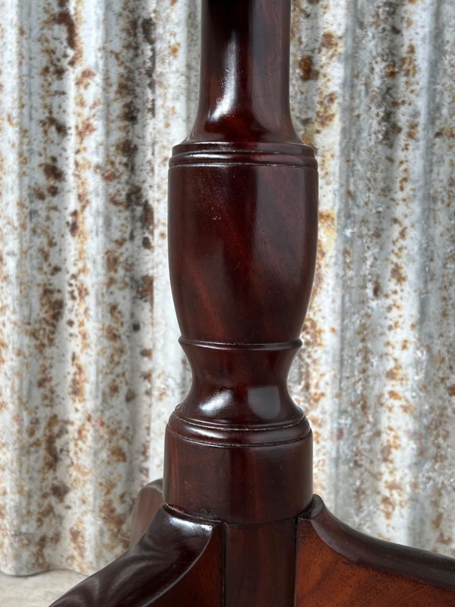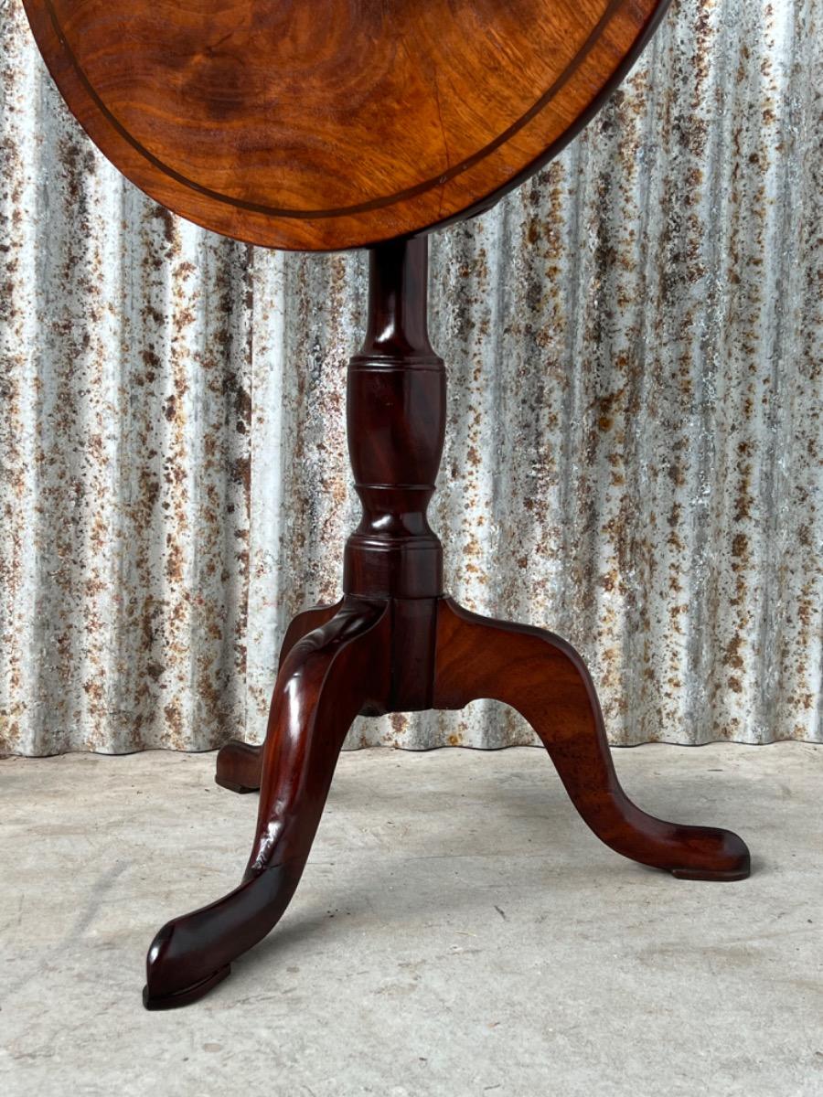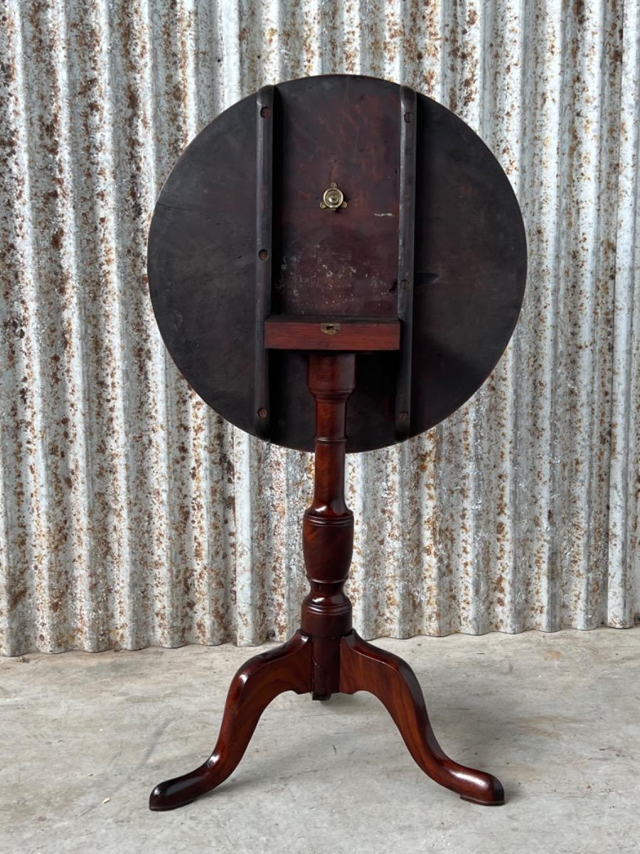 Uitzonderlijk mooie Georgian ‘Tilt top table’ in verrassend mooie staat. Op klapbaar dik massief blad met fraaie tekening, rustend op een gedraaide centrale poot dat qua model direct als 3e kwart 18e eeuw is te herkennen.