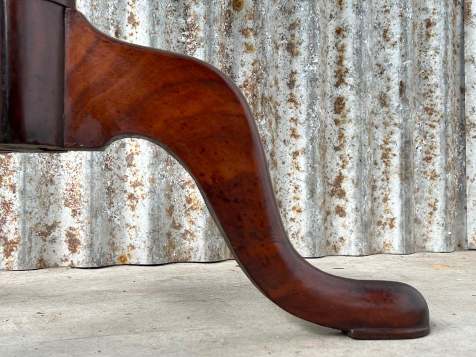 Onder drie uitlopende tenen, ook deze zijn van massief Cuba mahonie.