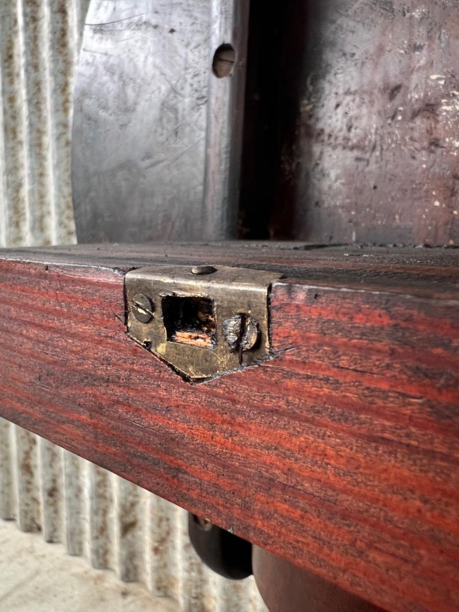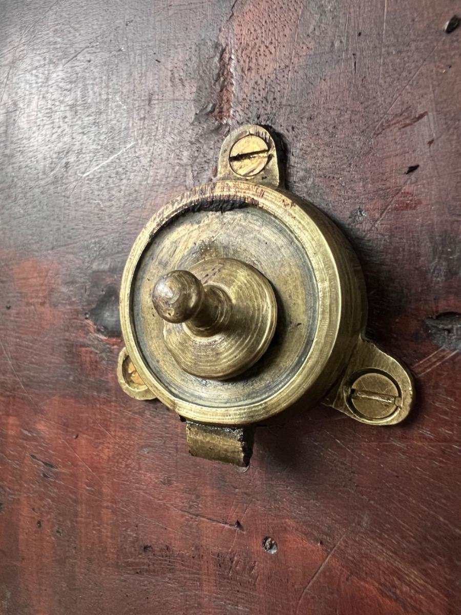 Sluit mechaniek van messing, ook deze met patina. Zware kwaliteit, goed werkend en fraai.