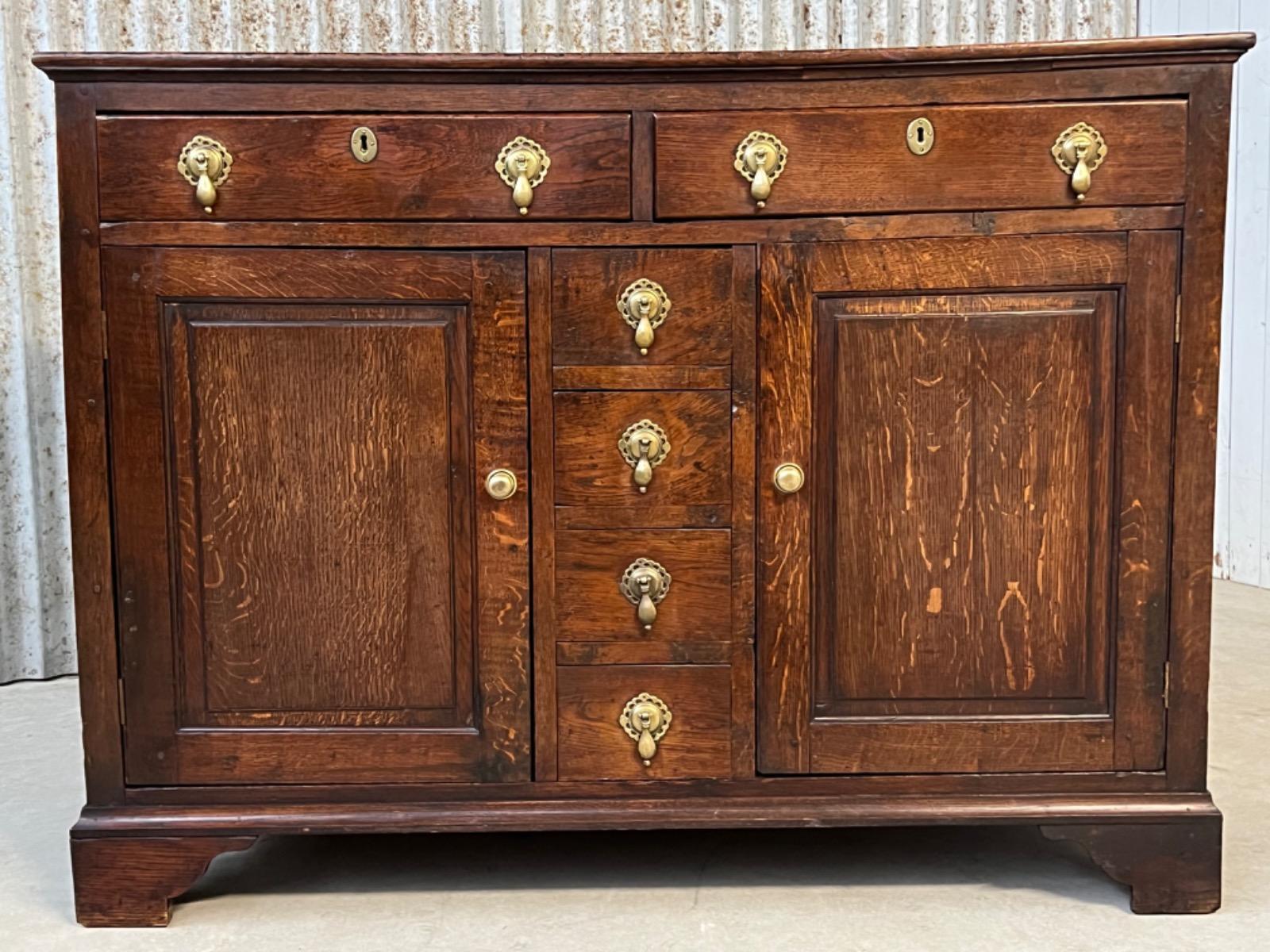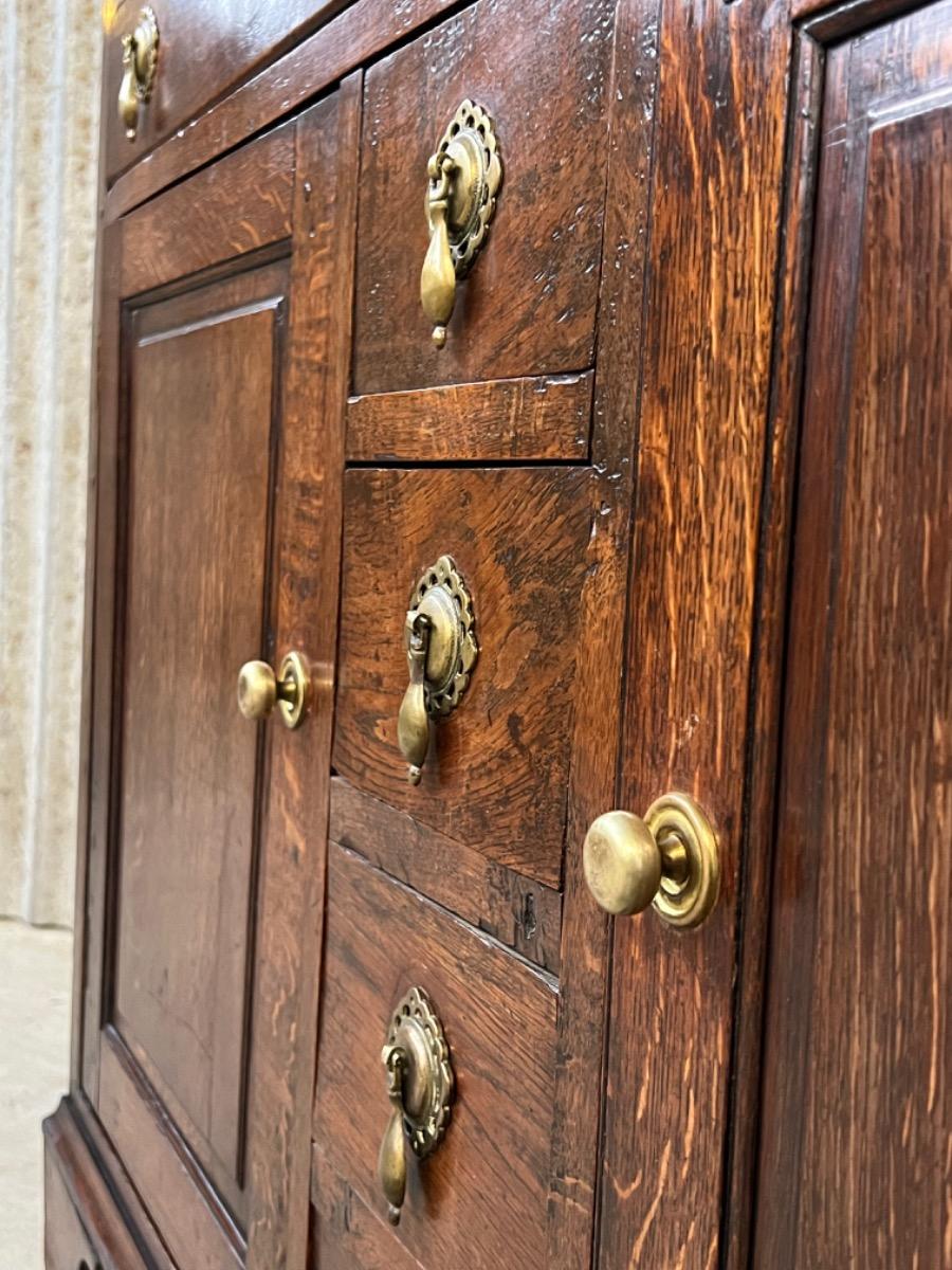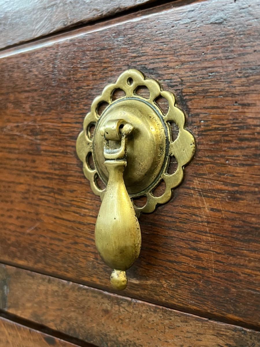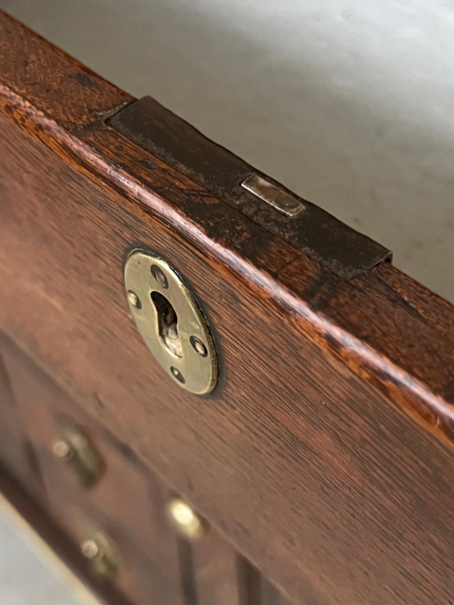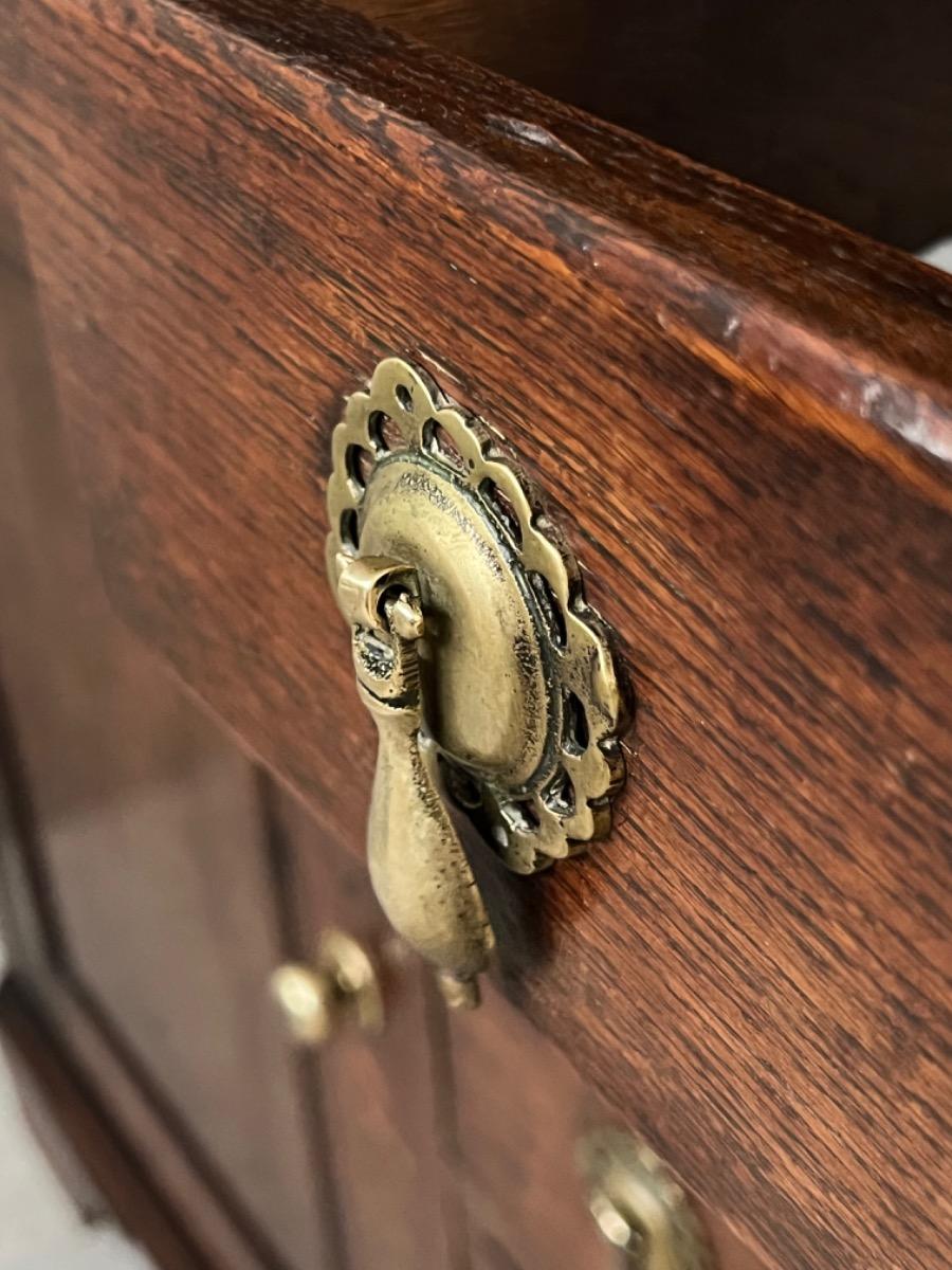 Oorspronkelijk messing beslag op de deuren en (schijn) laden. Oorspronkelijke sloten aanwezig in de laden