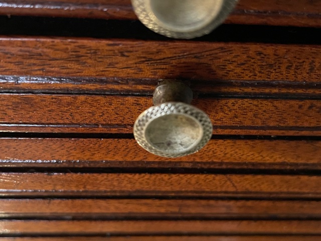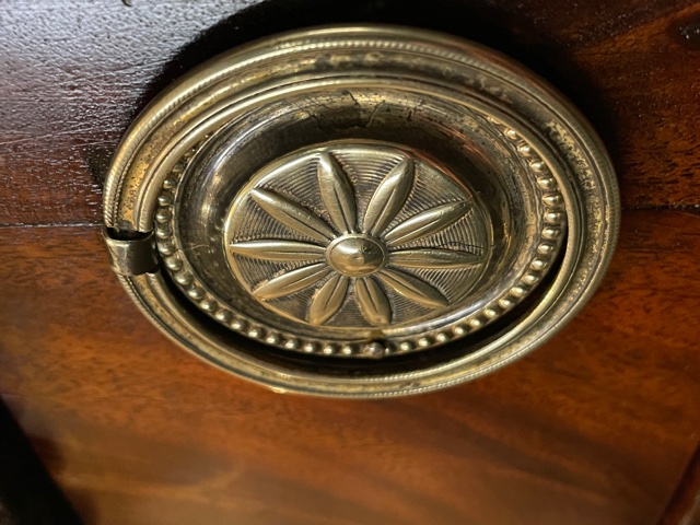 In heel goede conditie, oorspronkelijk vuurverguld ring beslag op de lade en knopjes op de jalousie deuren. ook de sloten zijn oorspronkelijk