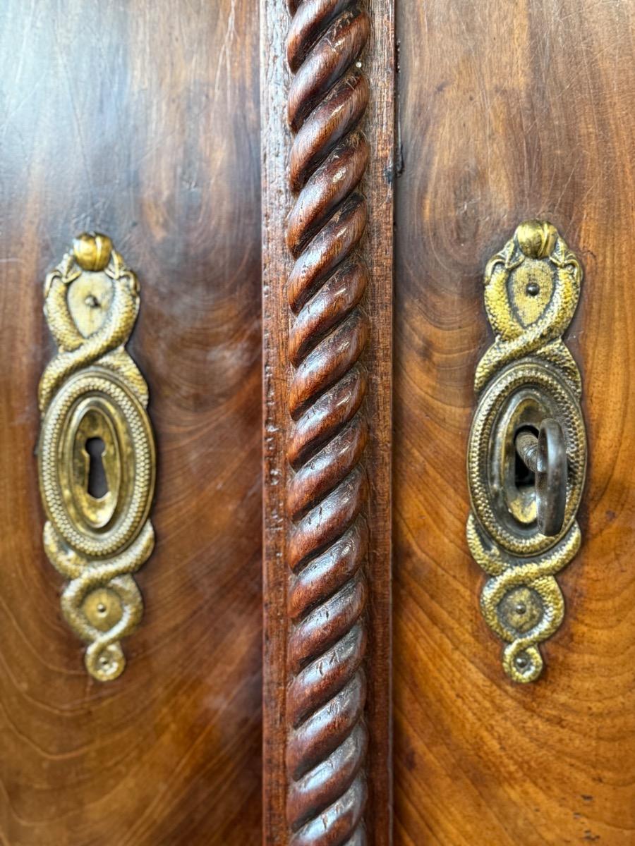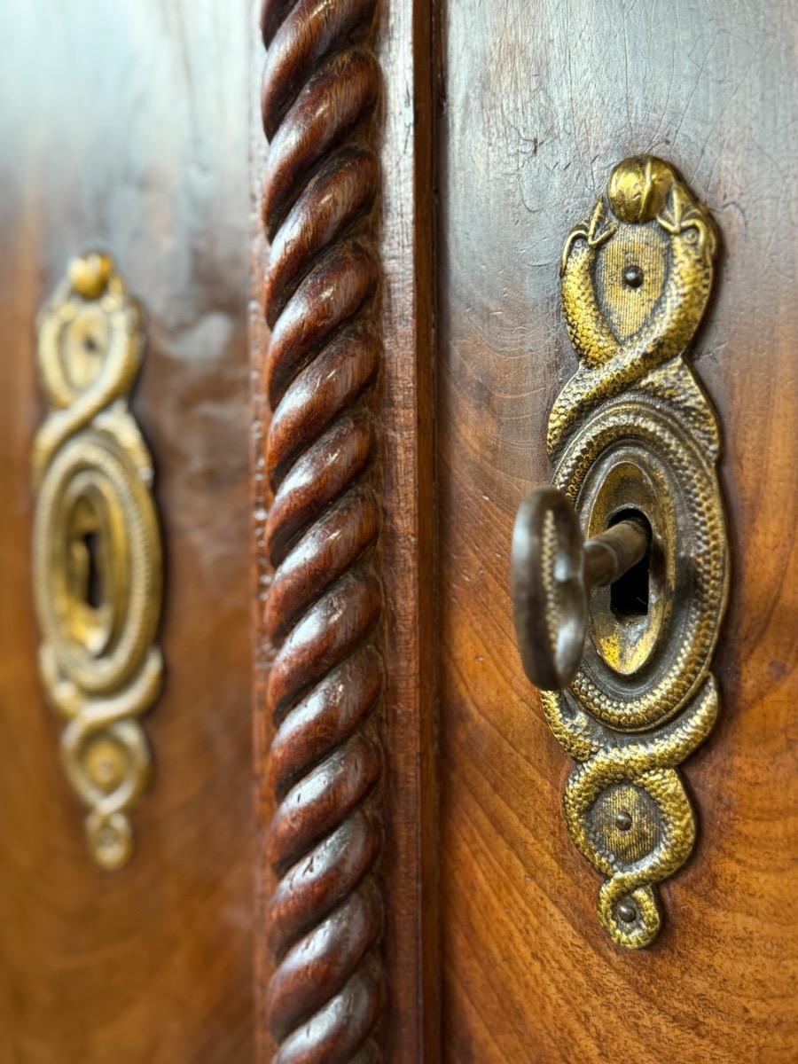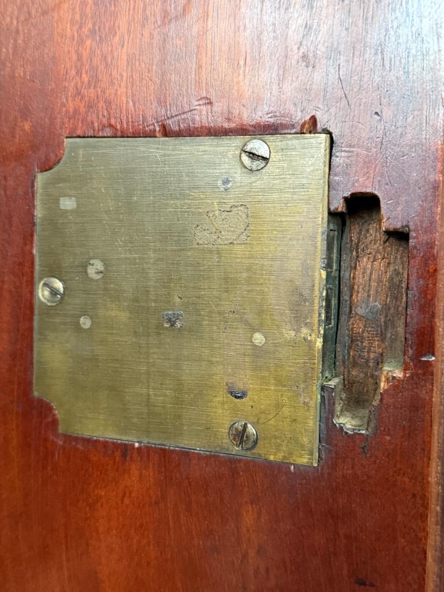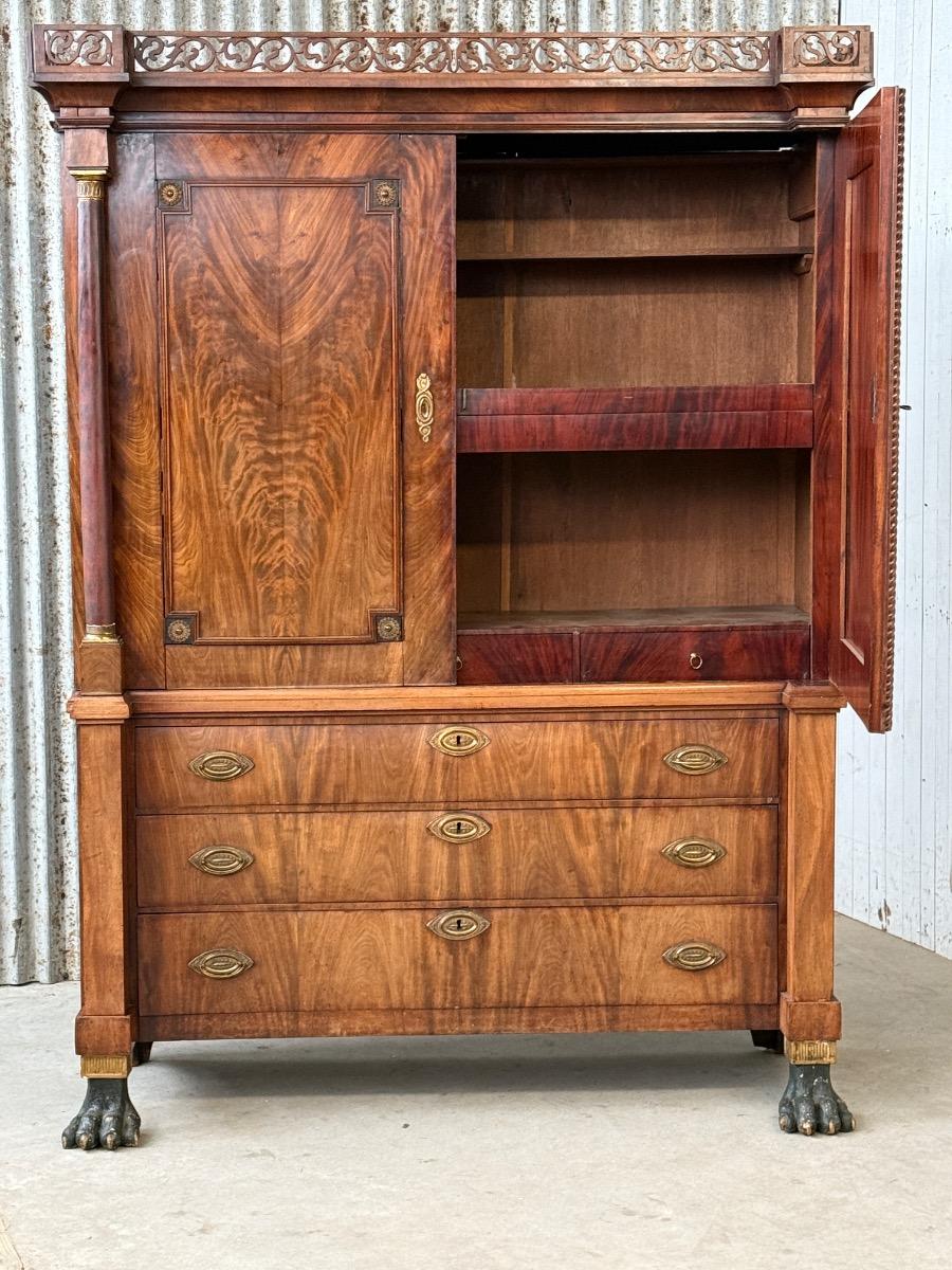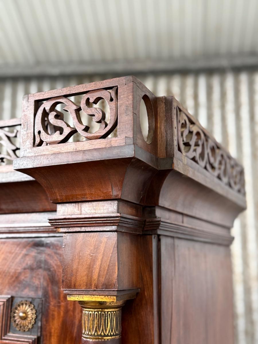 Mahonie Empire kabinet, met oorspronkelijk vuur verguld latoen koper beslag.