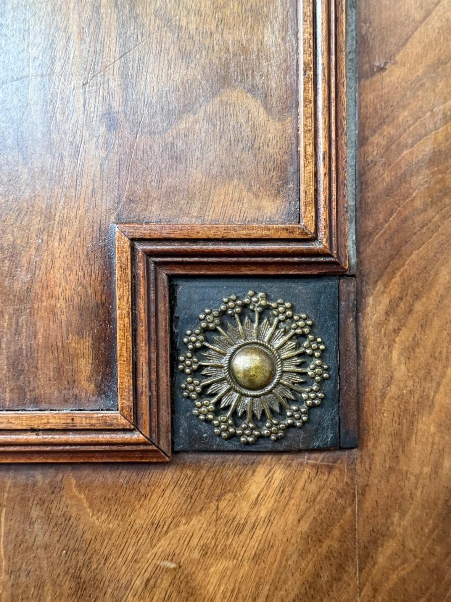 Deuren voorzien van volle pilaren en verguld beslag en rozetten.
