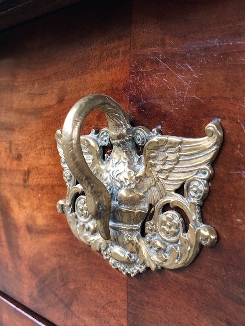 Mahonie Empire kabinet, met massief messing zwanenhals beslag.