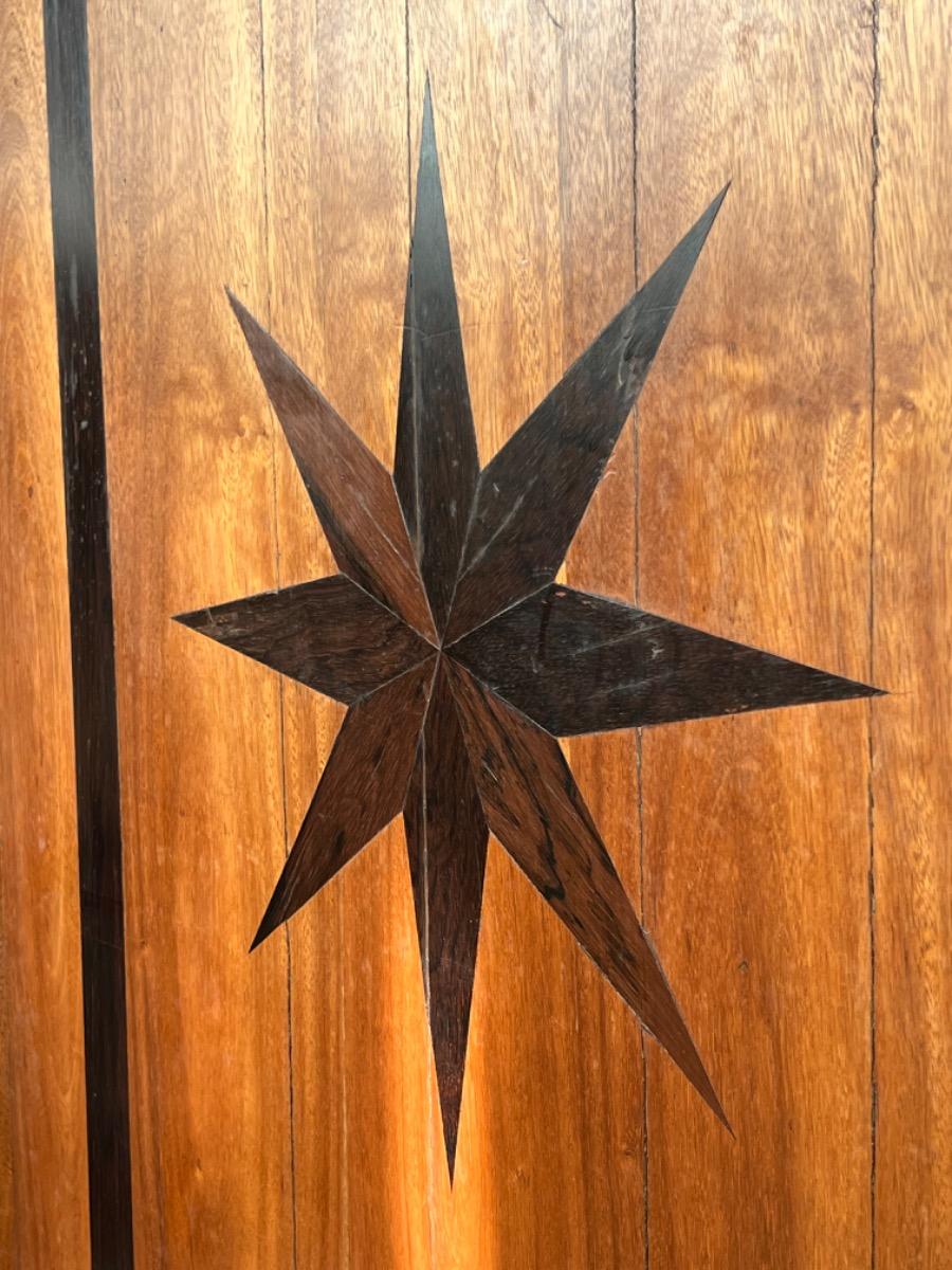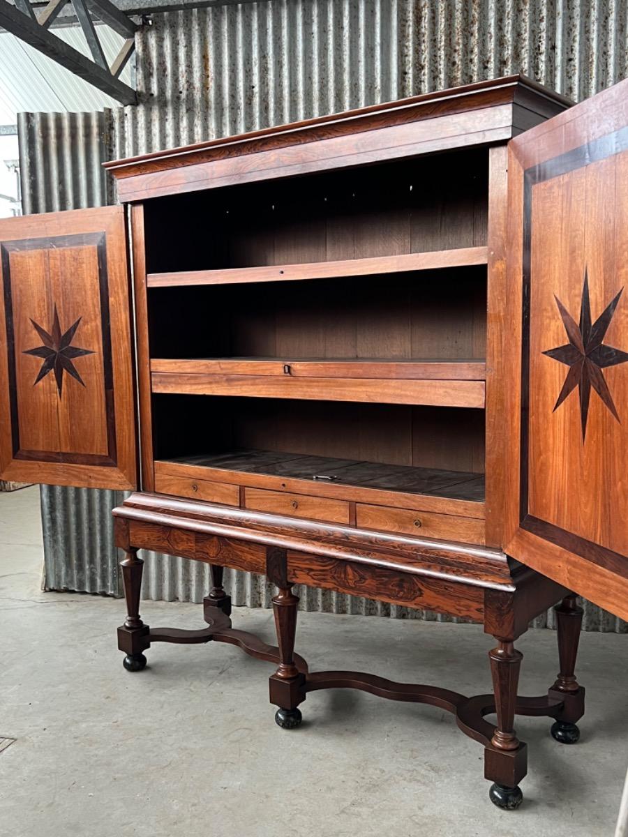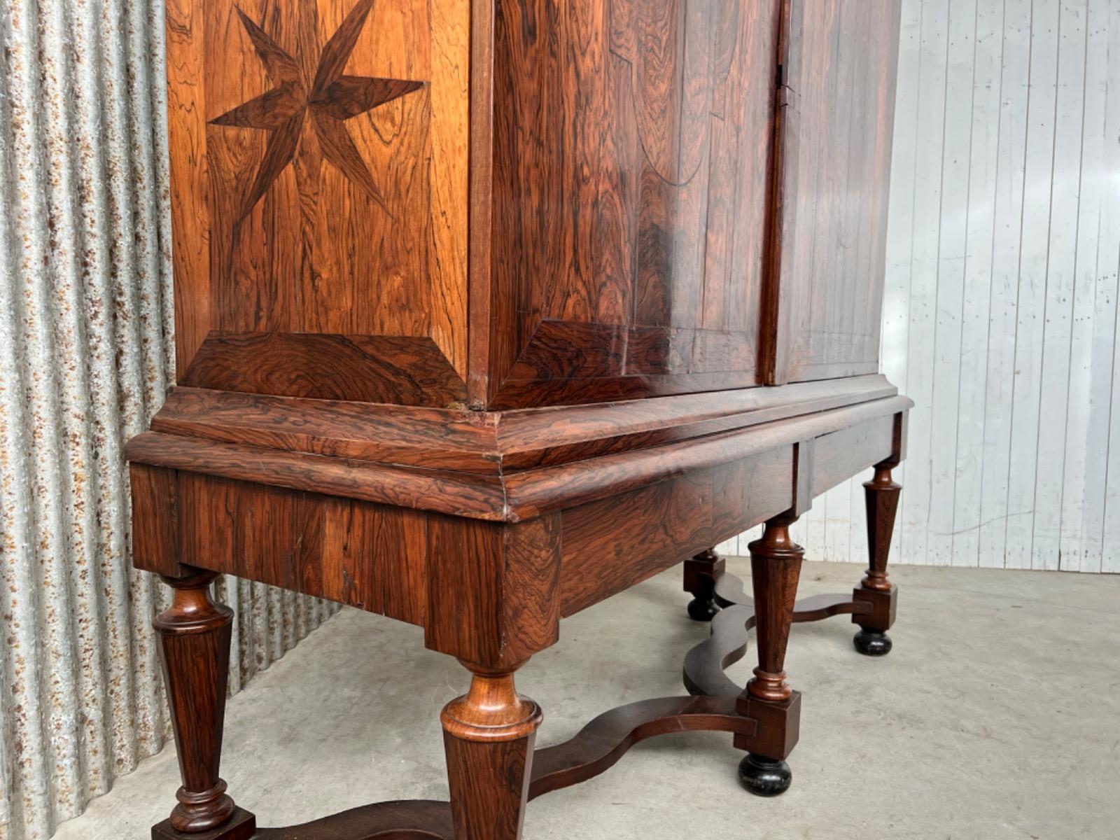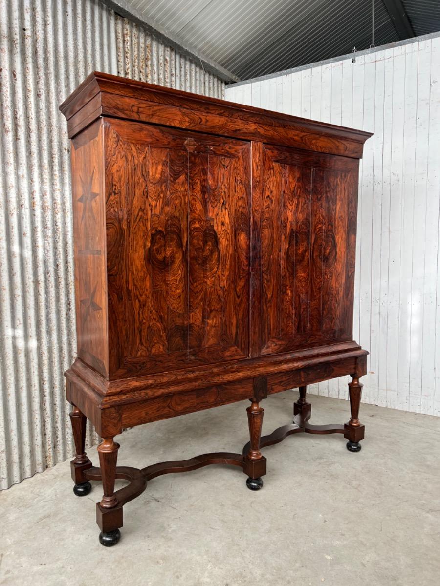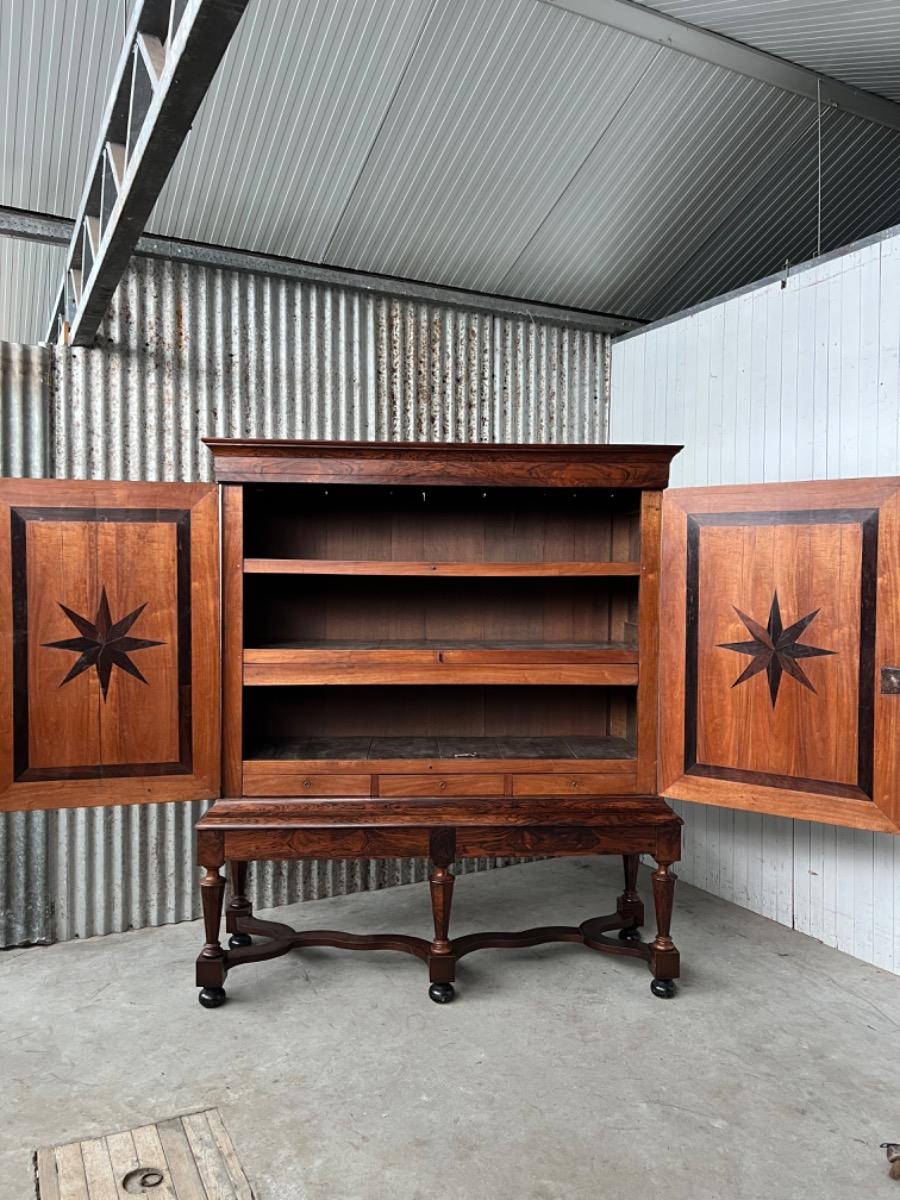 17e eeuws Zeeuws kruisvoet kabinet. Ingelegd met ebben bieswerk en sterren in zijden en deuren. Strakke kap met daaonder 2 vlakke deuren. Onderstel met 5 baluster poten met kruisverband. Ca. 1670 - 1700