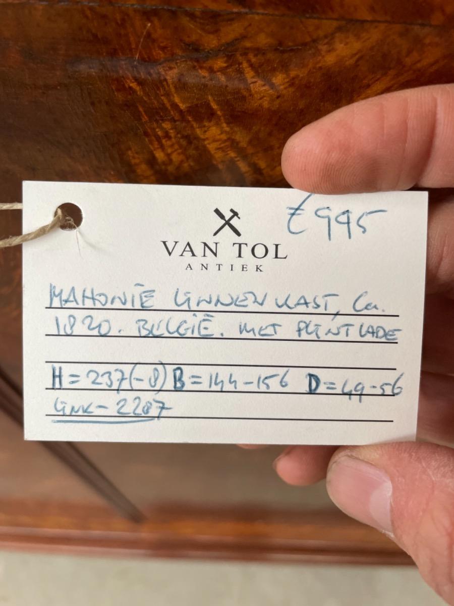 Grote mahonie linnenkast, hang-leg deel. Demontabel.