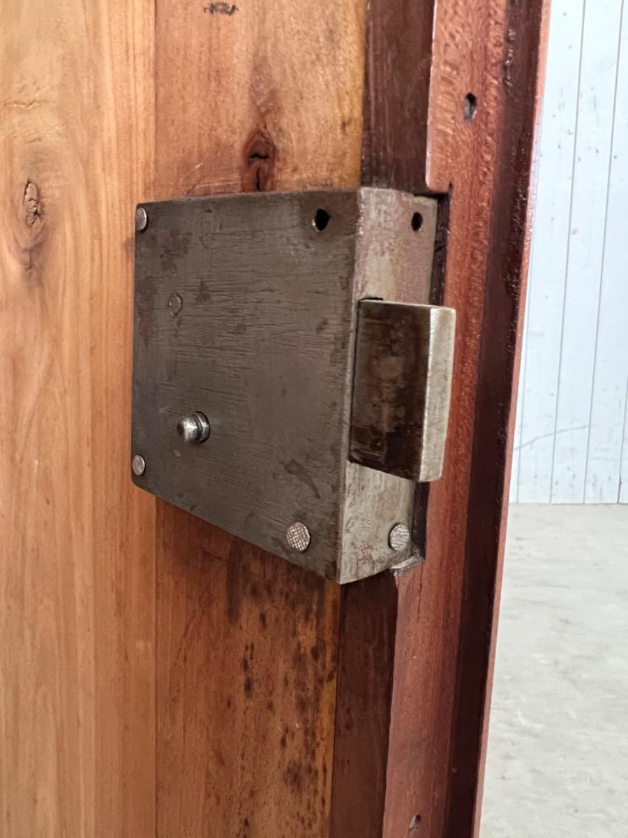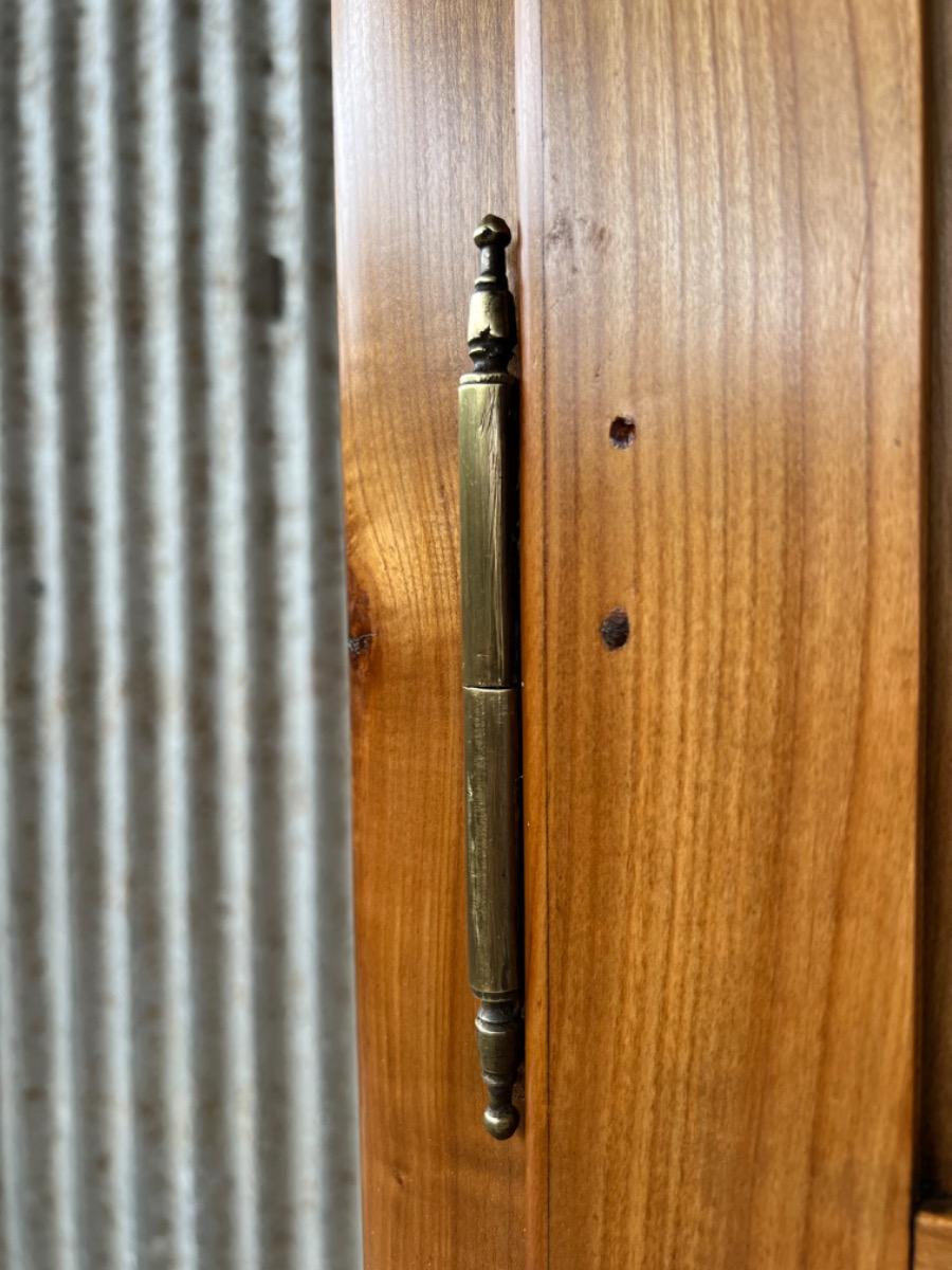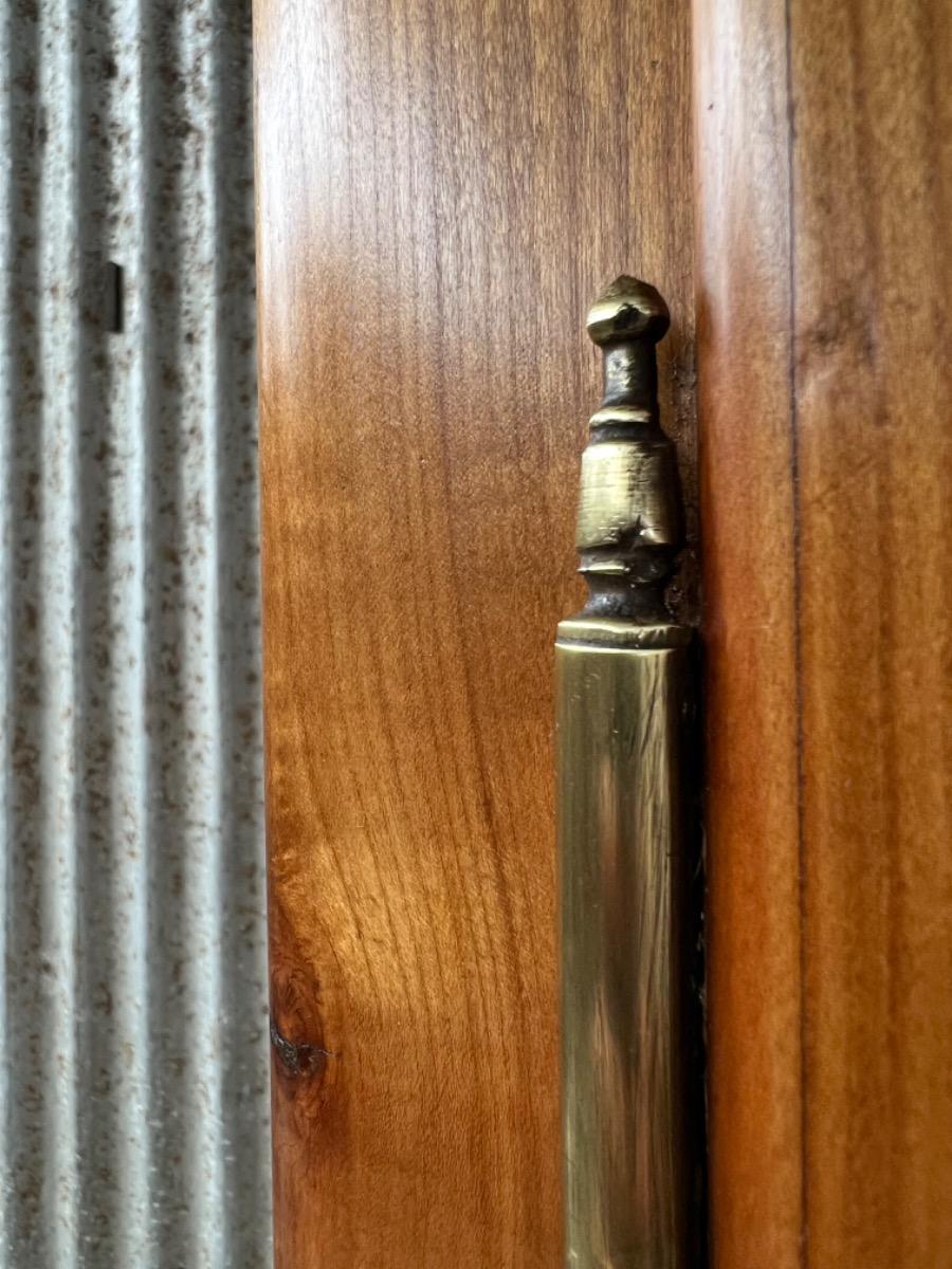 Onlangs grondig nagelopen op losse delen van constructie en fineer. Geen levende houtworm aangetroffen op 14/8/2023
