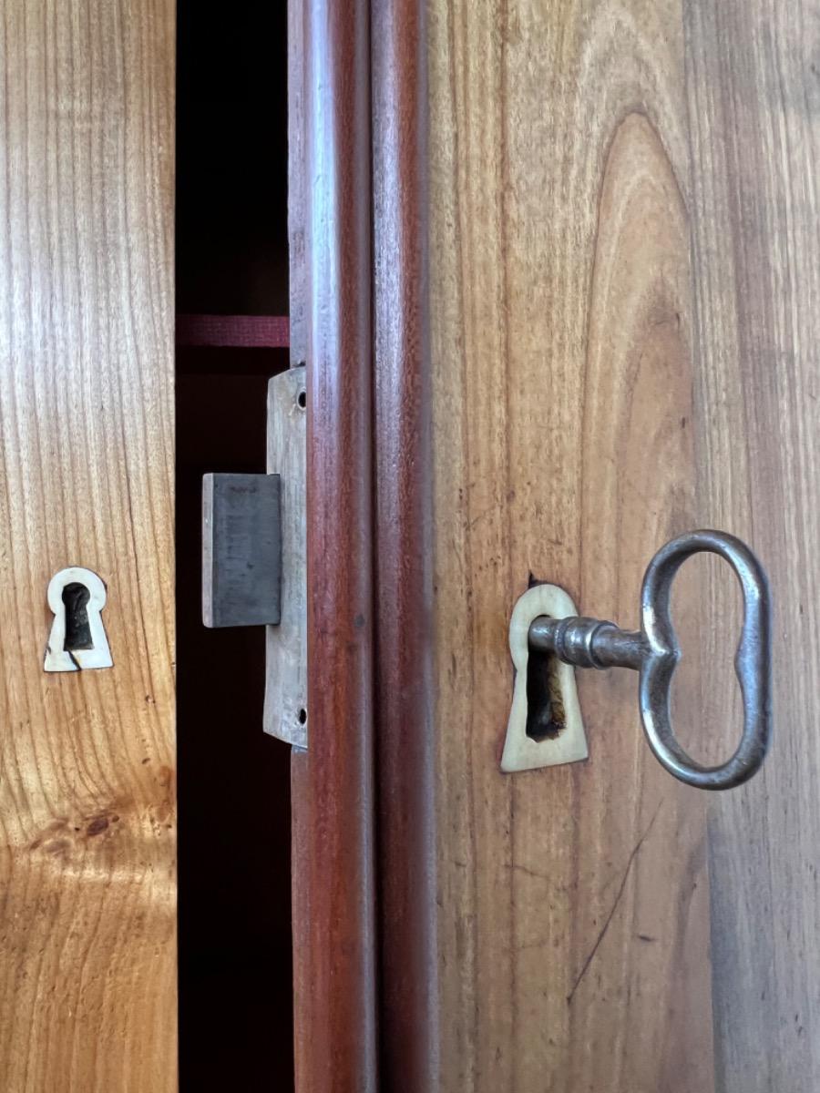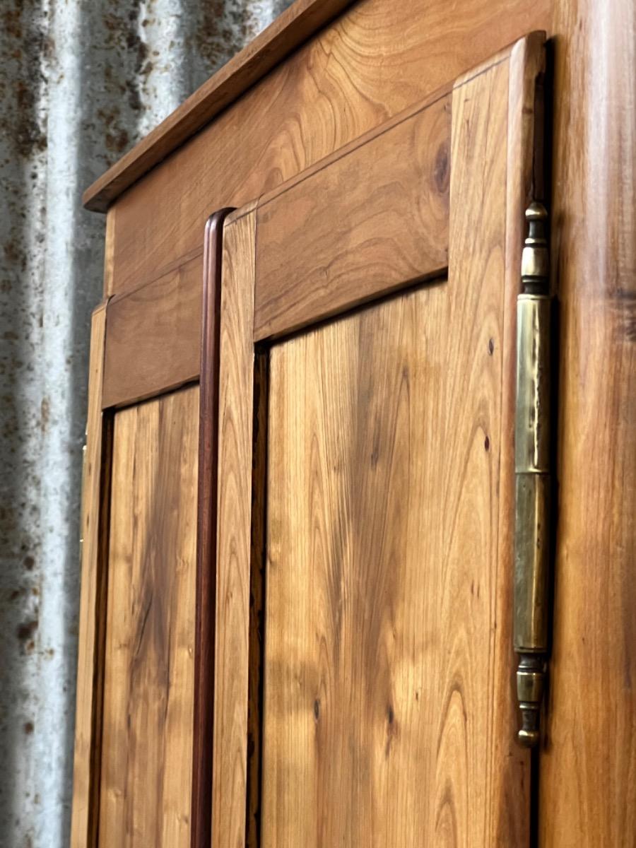 Een twee delig meubel met massief kersen gepaneelde zijden en deuren. Mooie kwaliteit.