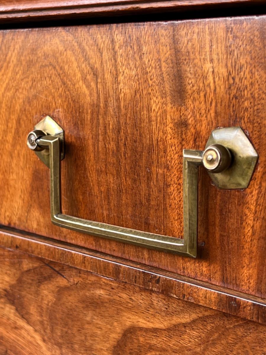 Mooi doorlopend Cuba mahonie fineer (op eiken), geen scheuren in de zijden.