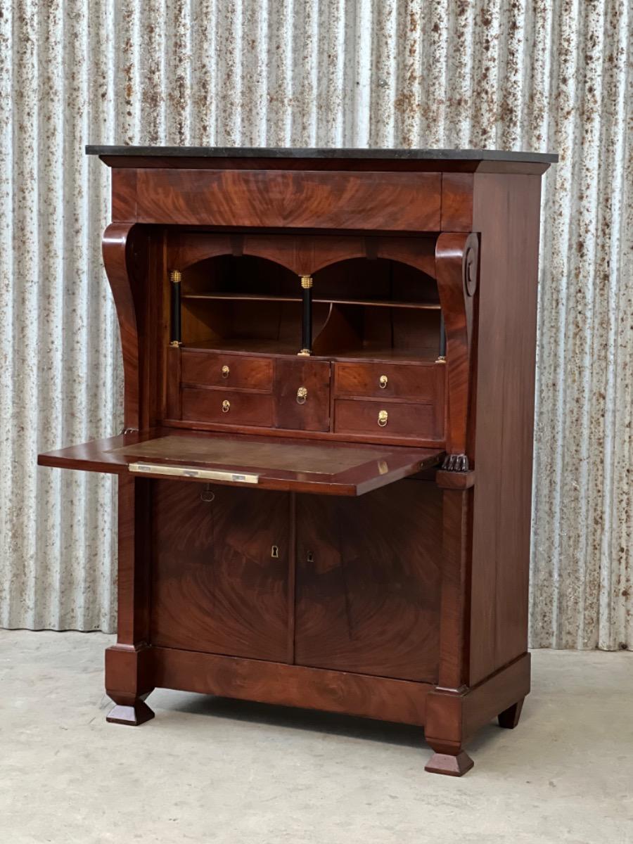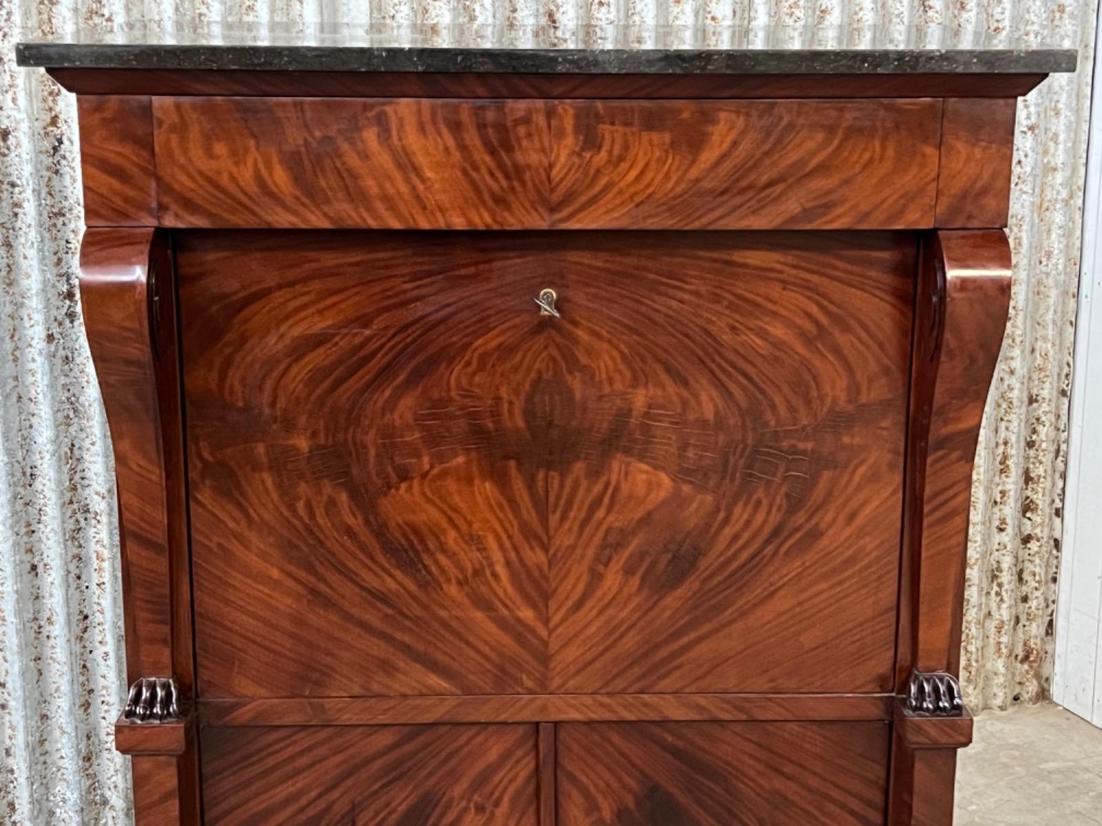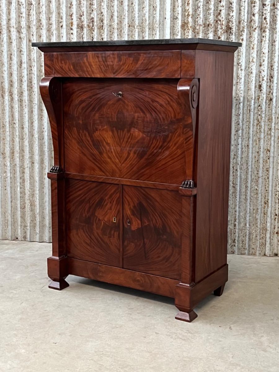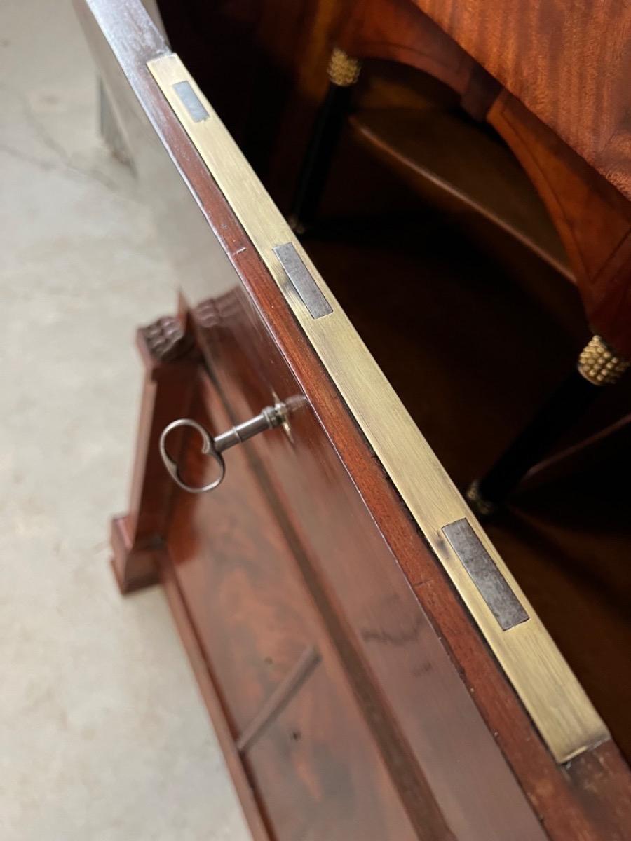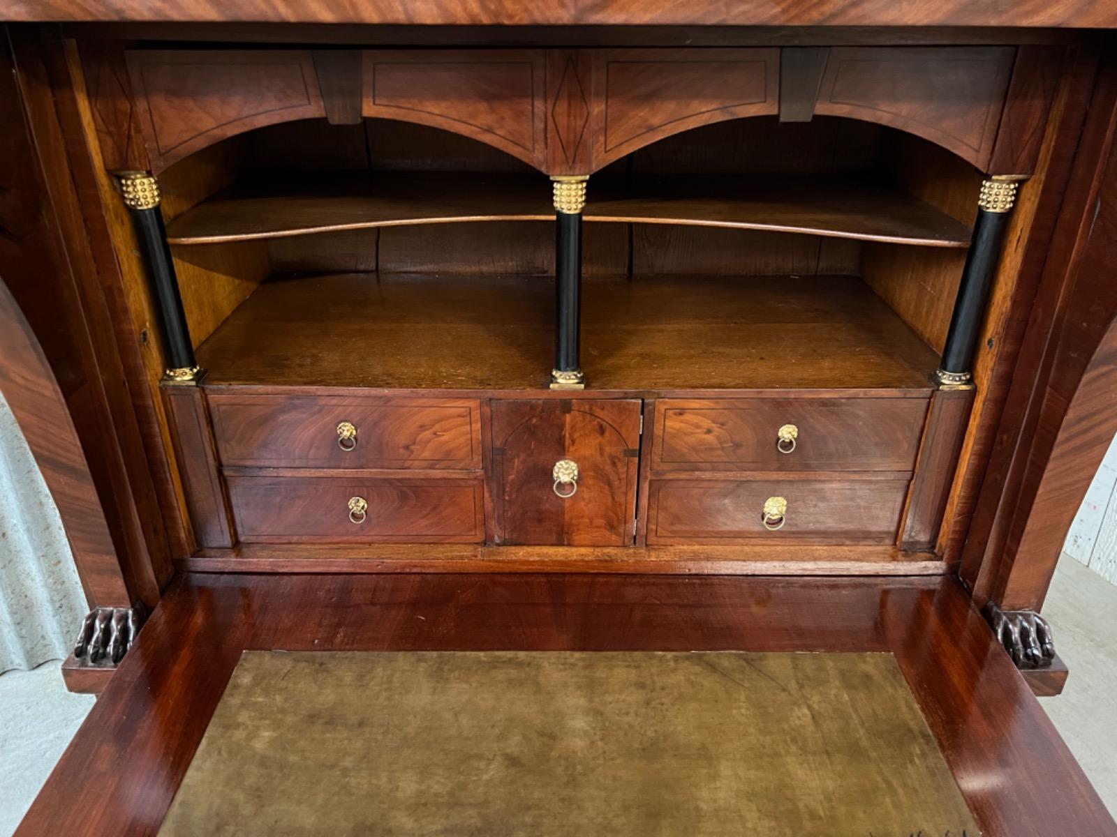 Empire klep secretaire, voluut vomr mahonie pilaar.