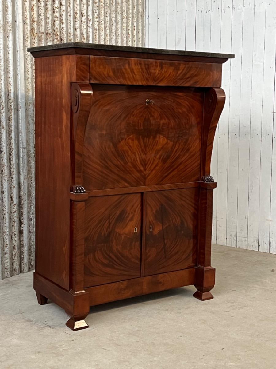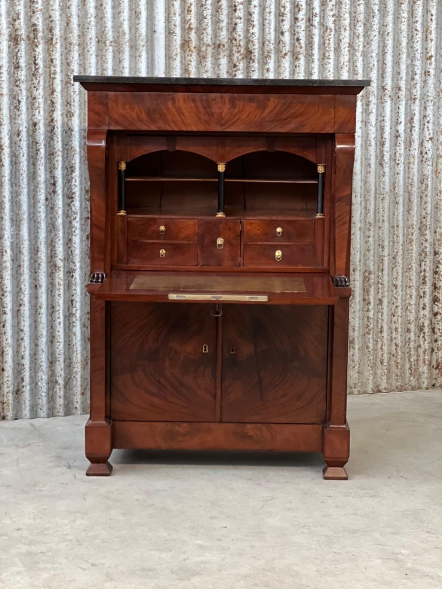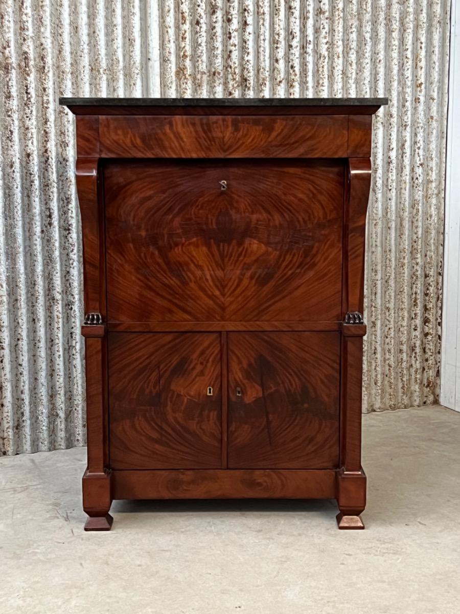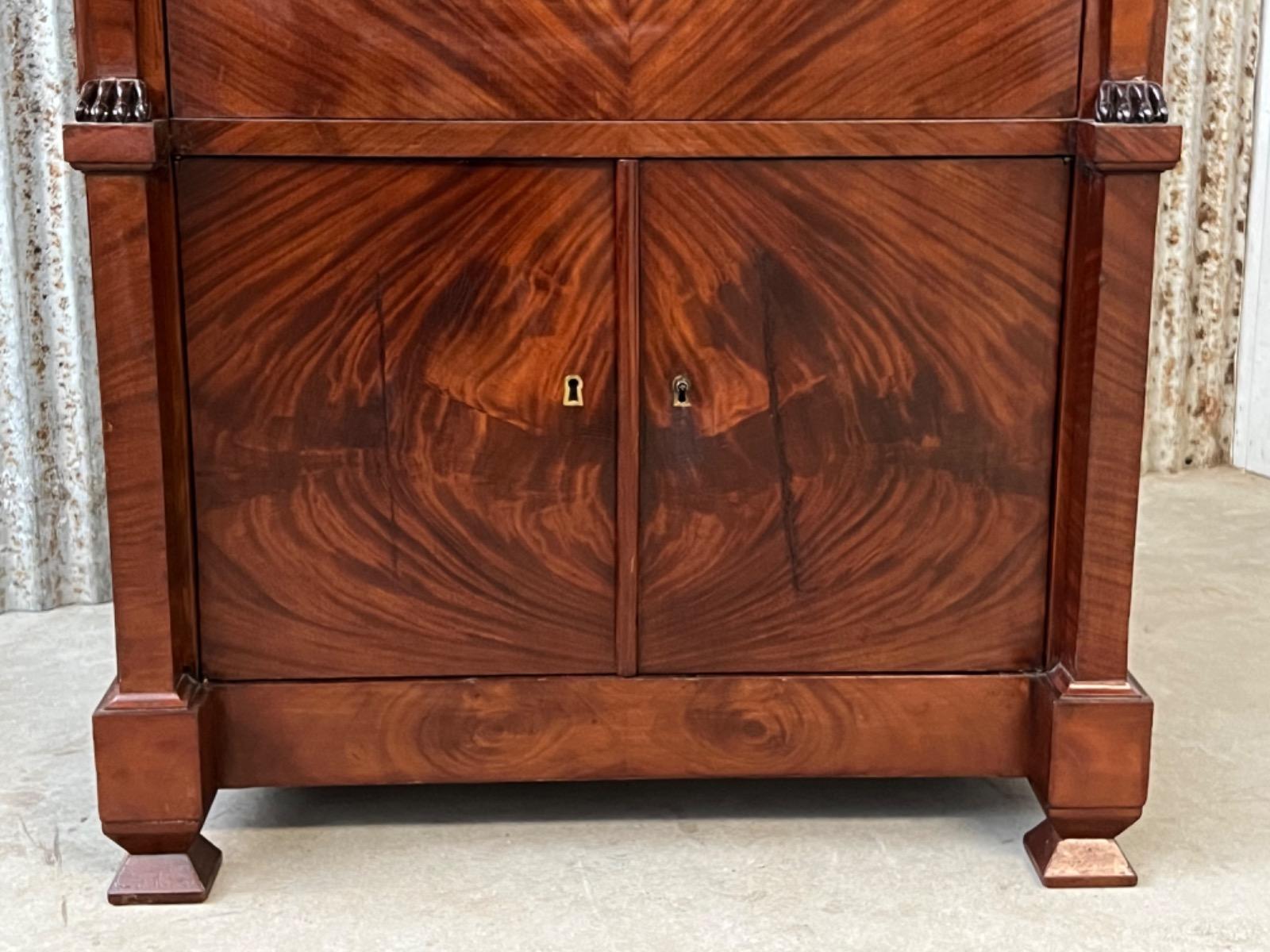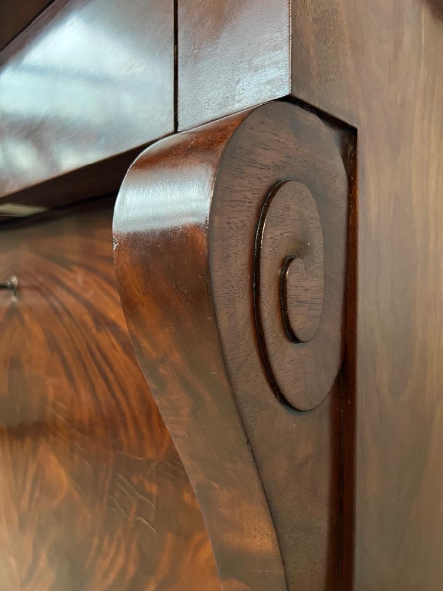 Empire klep secretaire, voluut vomr mahonie pilaar.