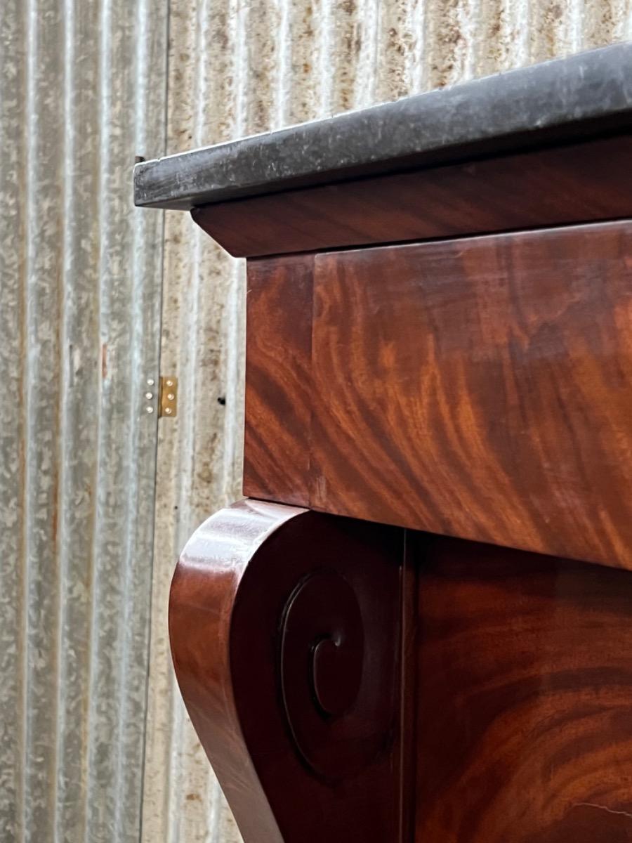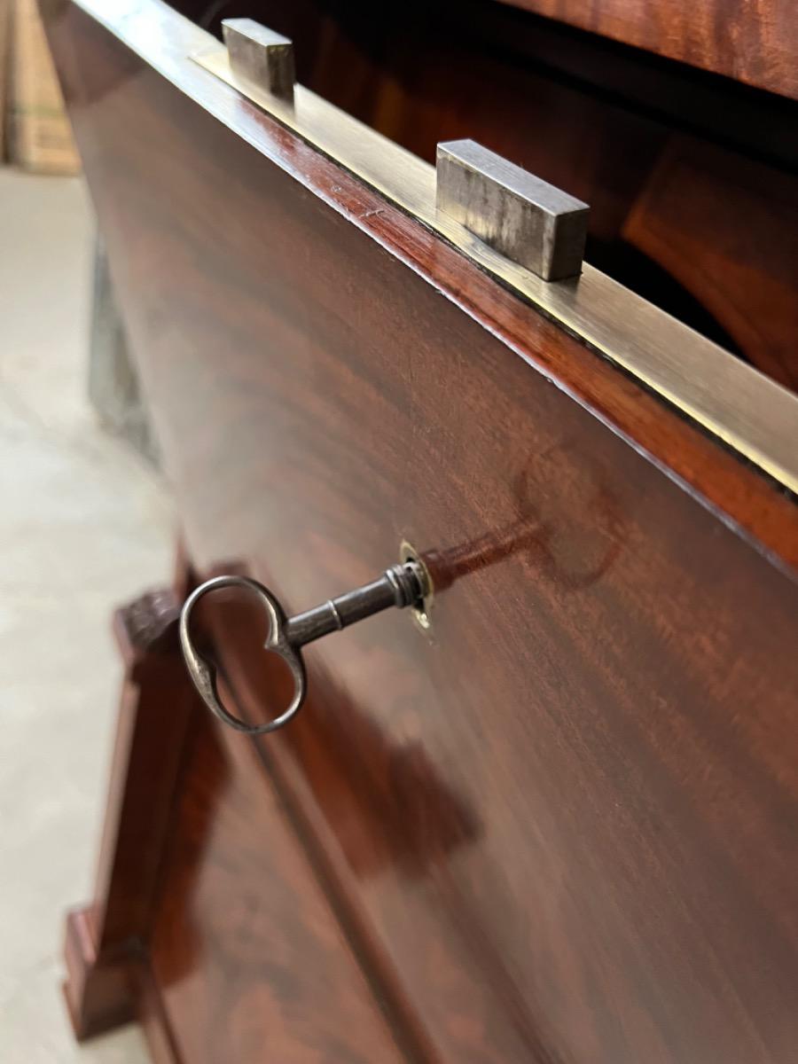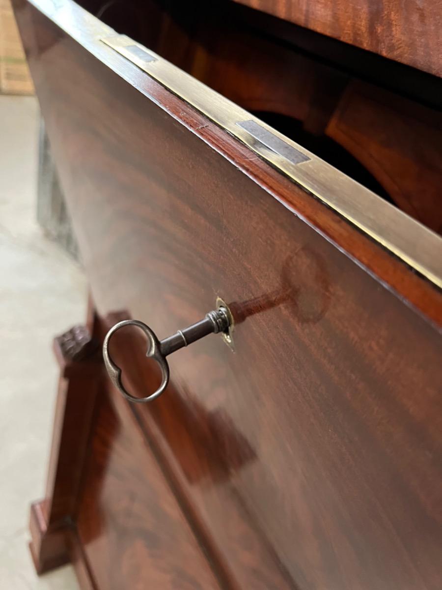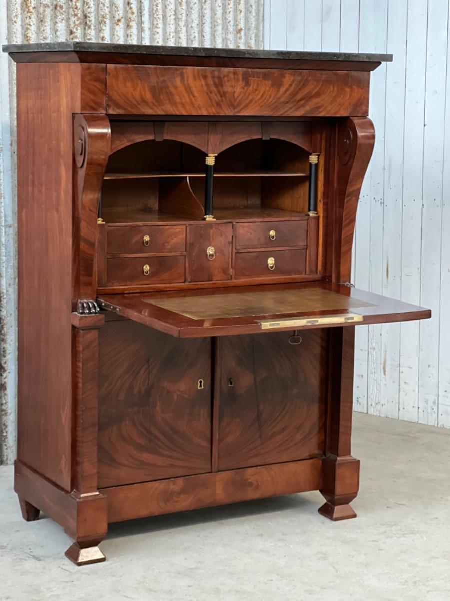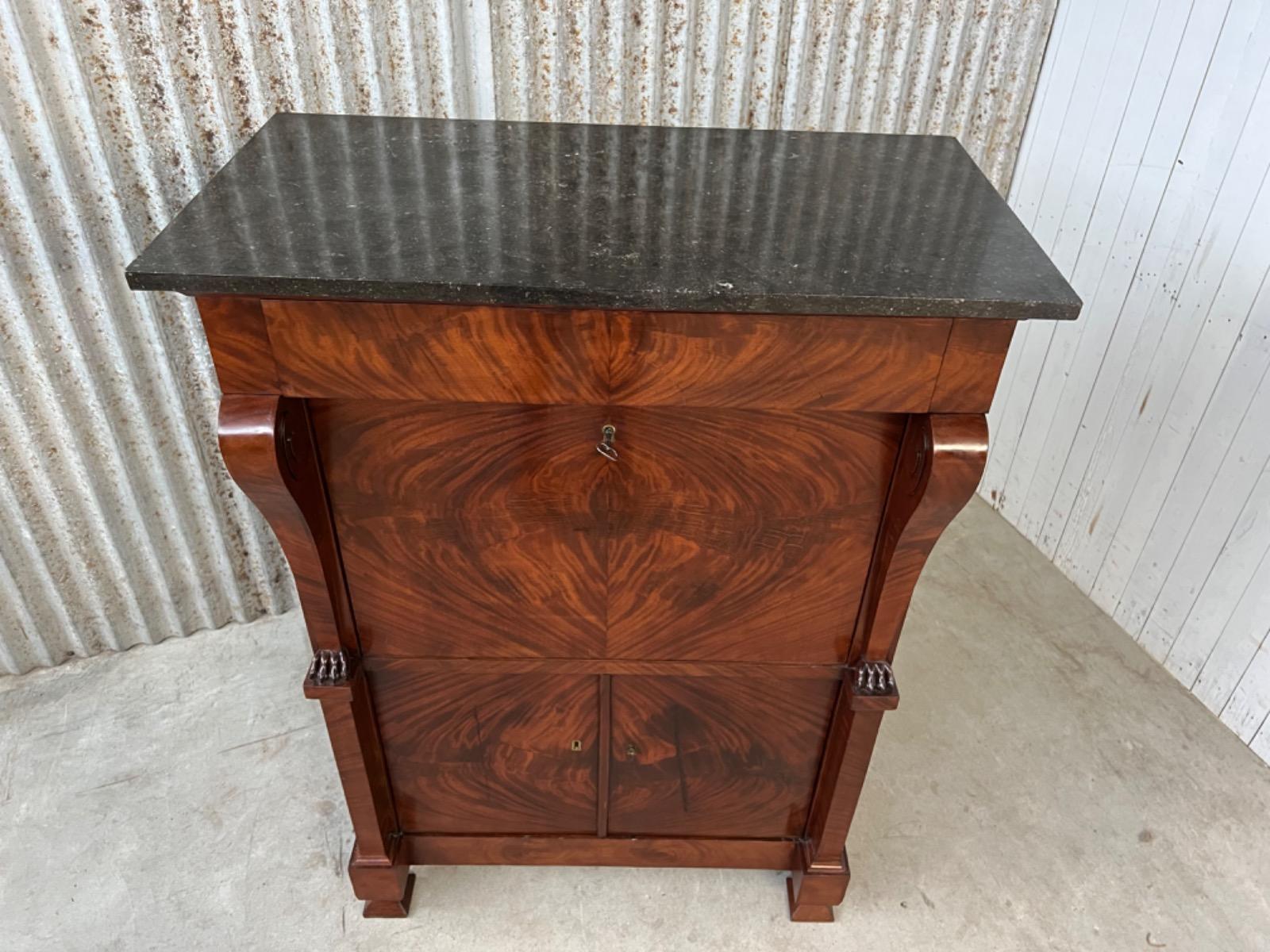 Empire klep secretaire, voluut vomr mahonie pilaar.