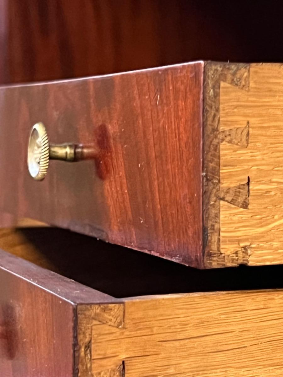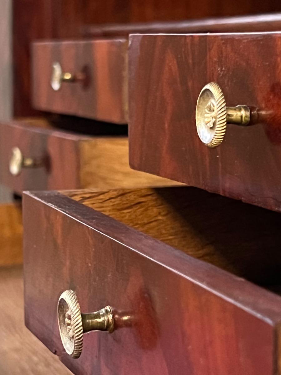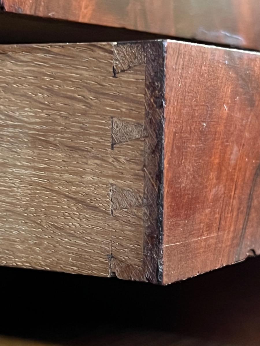 Het interieur vol met laden, ook deze met vuur vergulde knopjes.