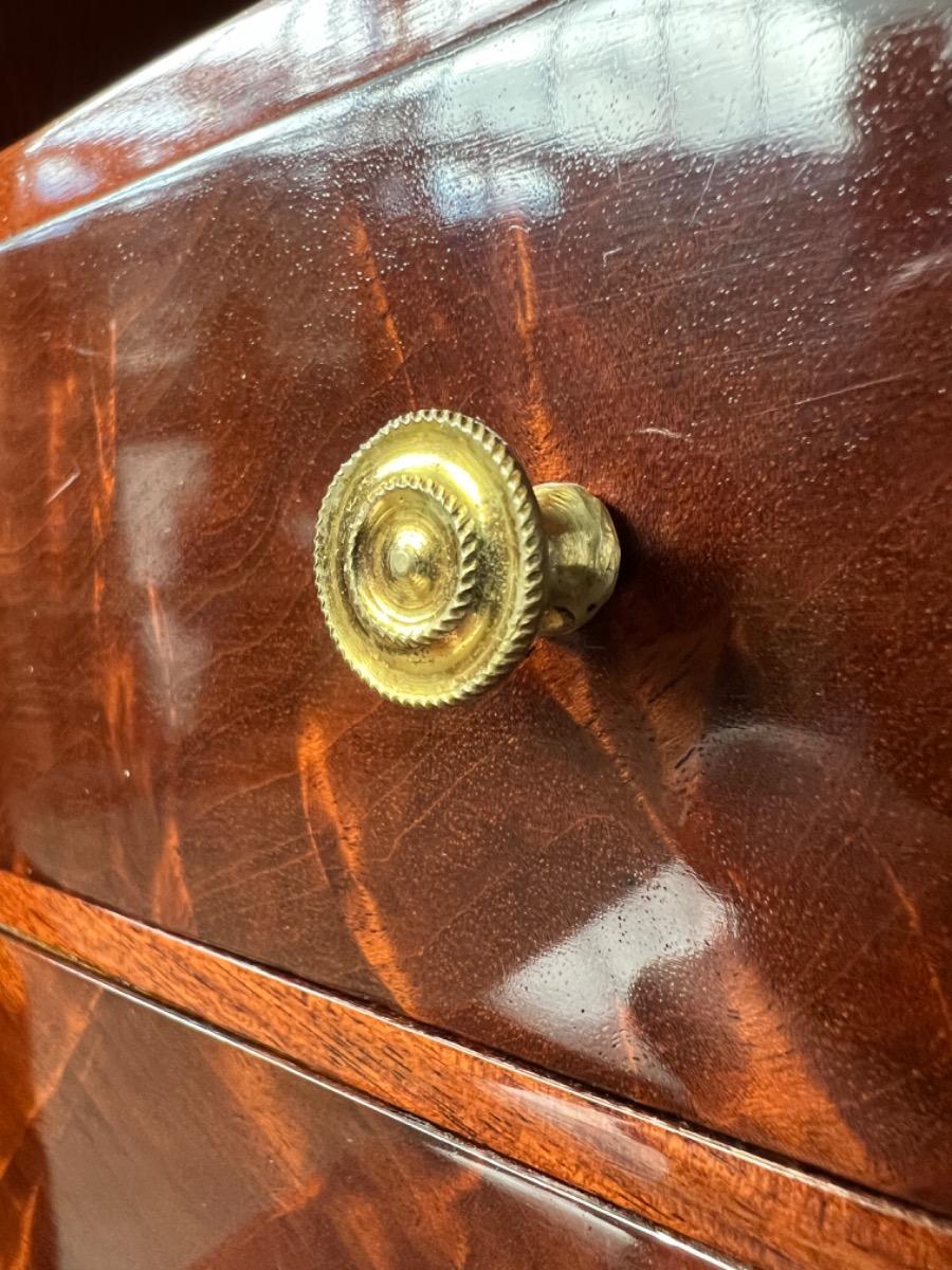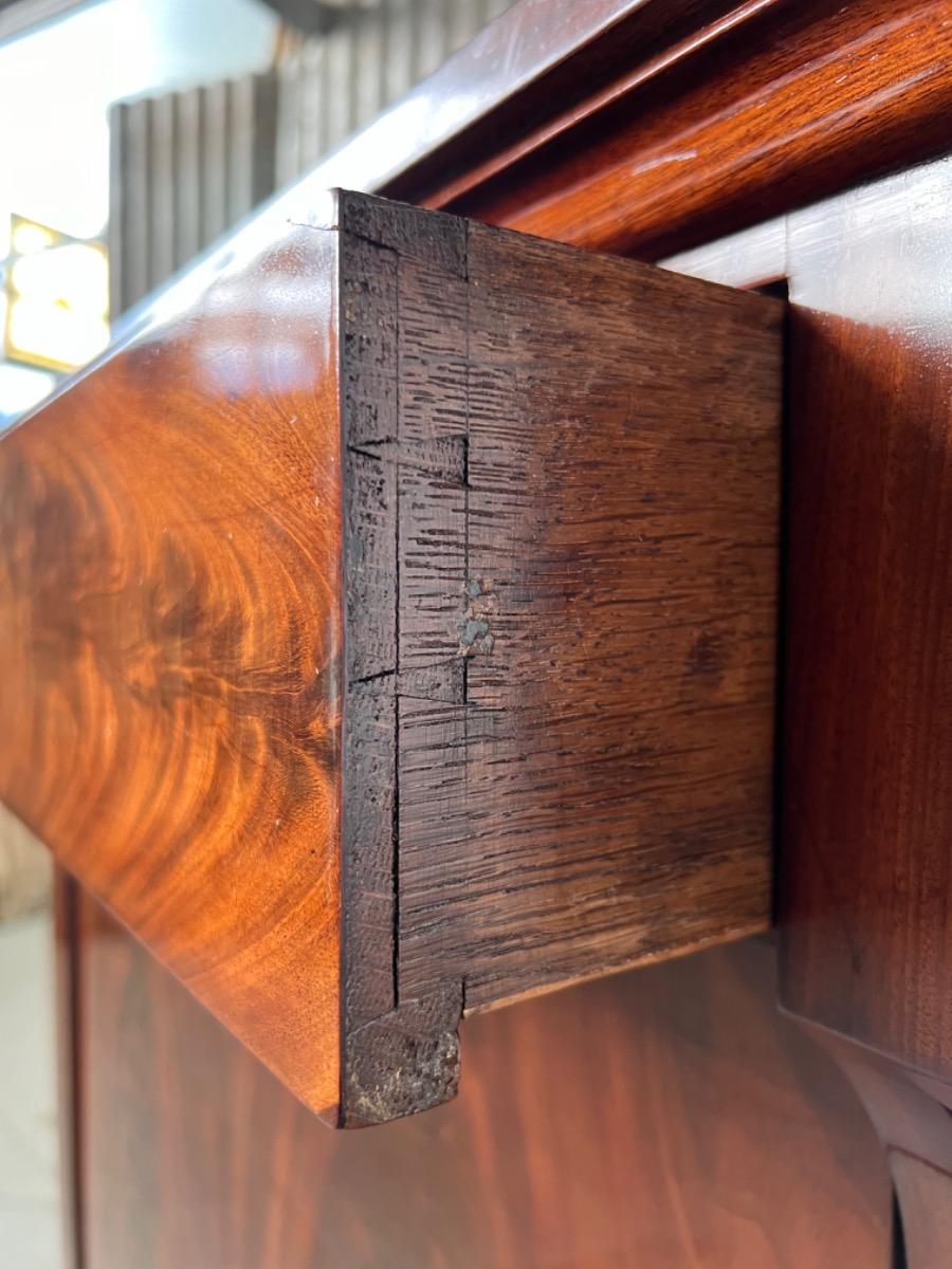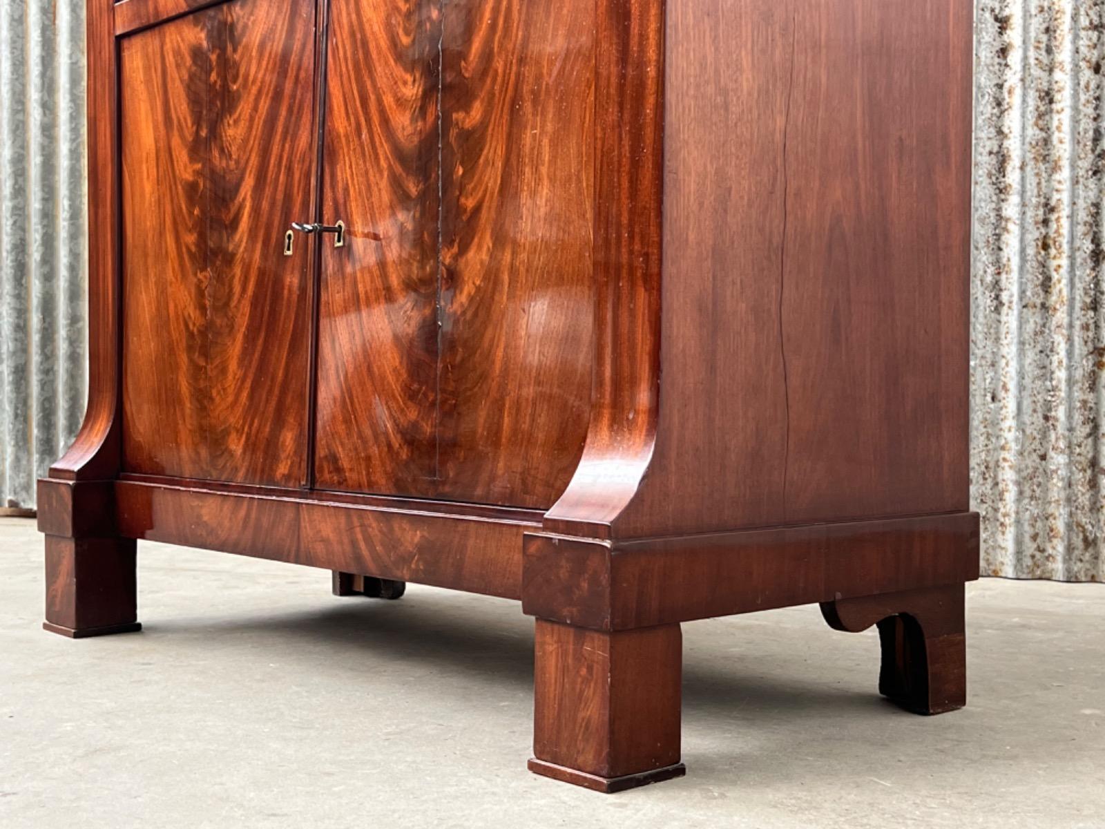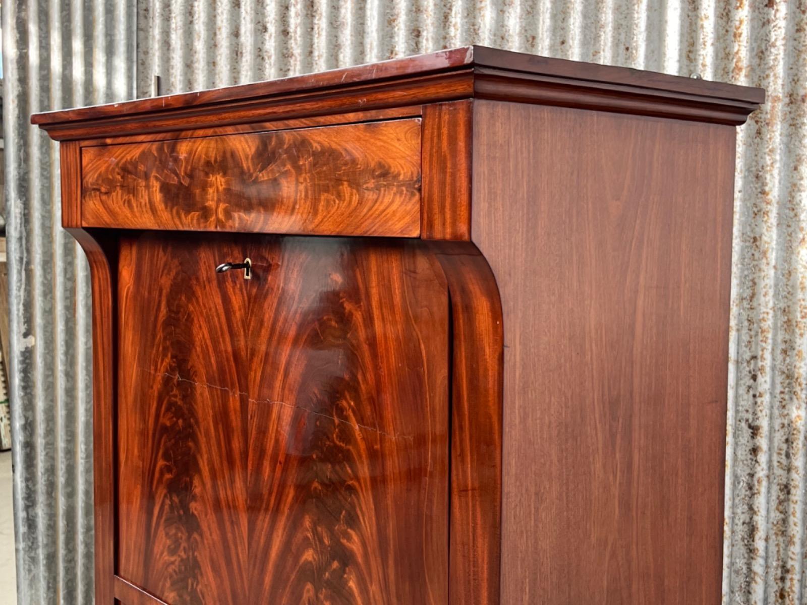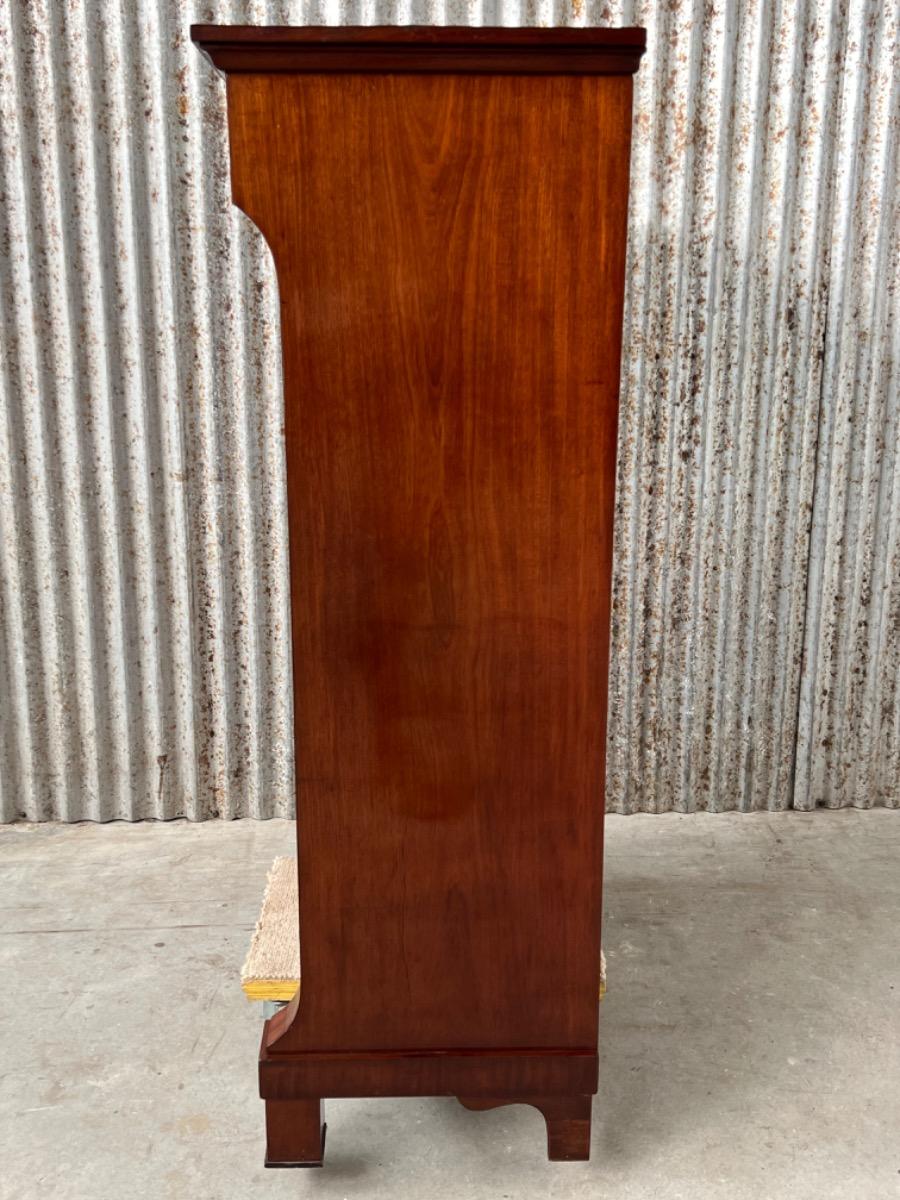Laat Empire klep secretaire met overstekende kap lade. Vlakke klep en deuren op blokpoot.