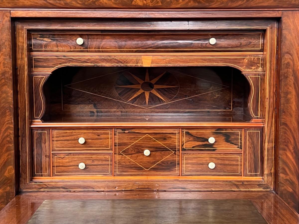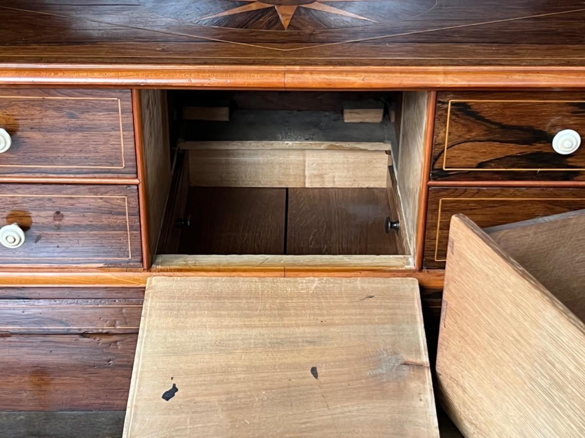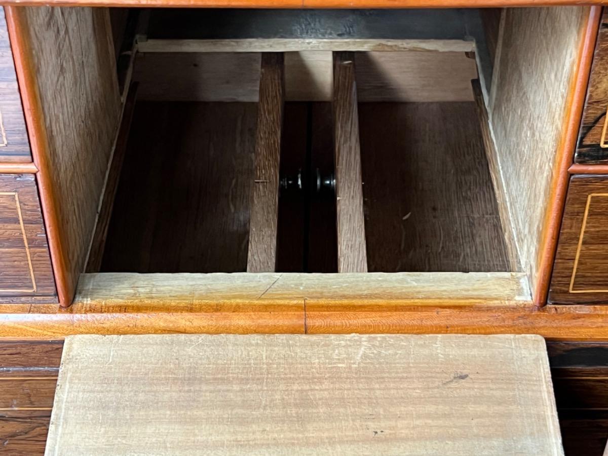 Het interieur vol met laden, waarvan 2 geheime laden èn 2 verborgen laden in de ‘kelder’.