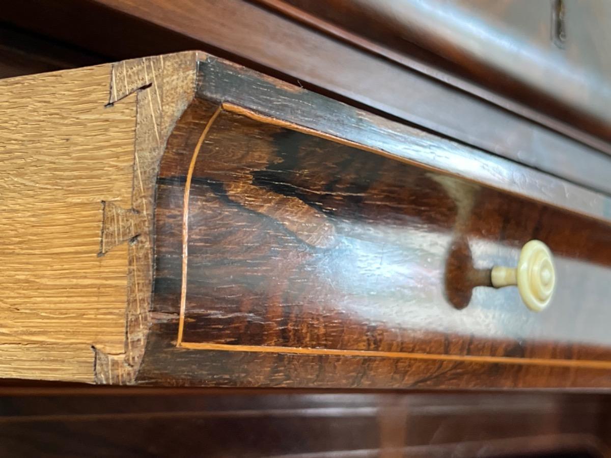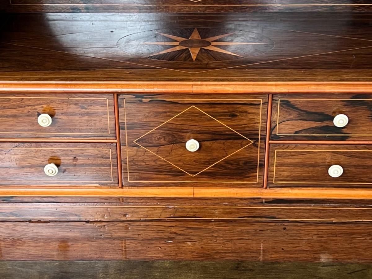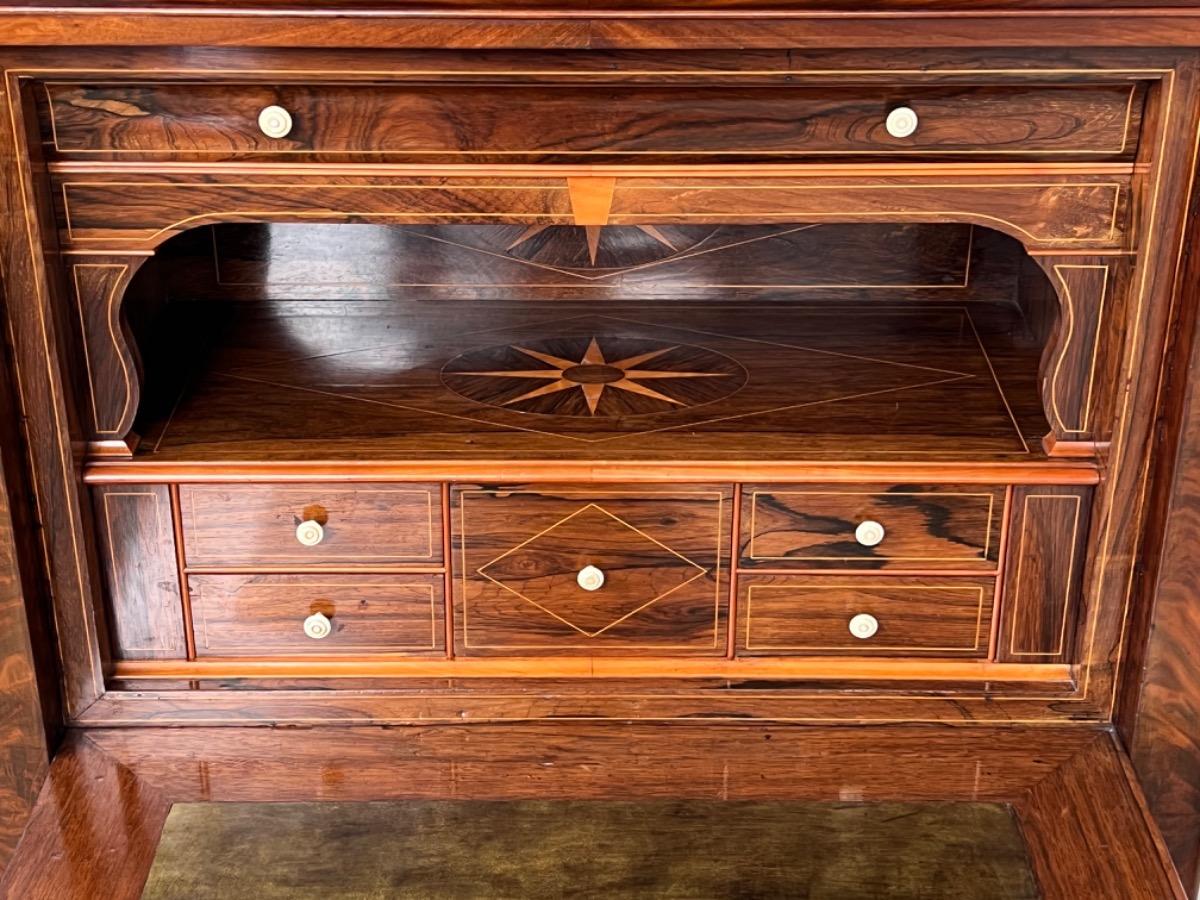 Het interieur vol met laden, waarvan 2 geheime laden èn 2 verborgen laden in de ‘kelder’.