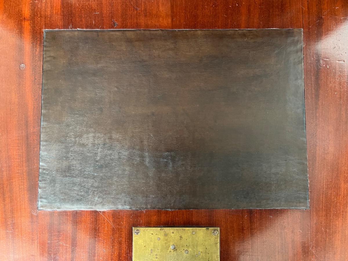 Klep ingelegd is ingelegd met "olijf groen" kalfsleder, geen scheuren in de klep.