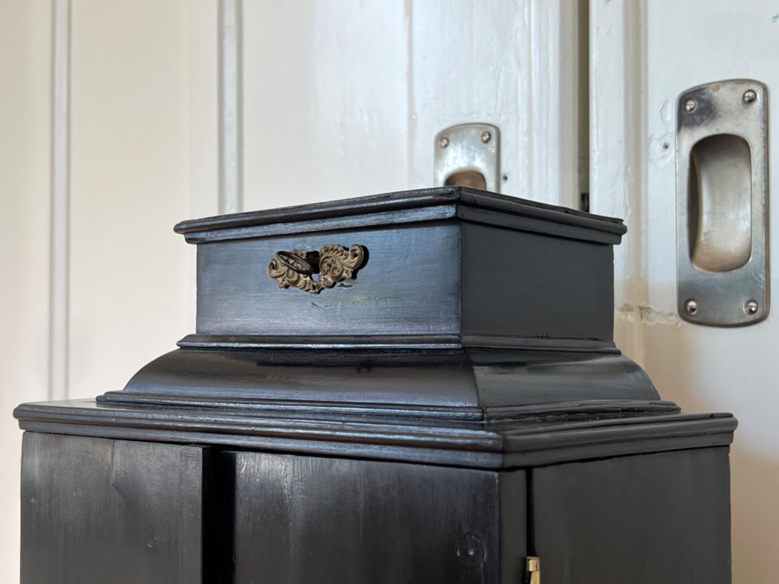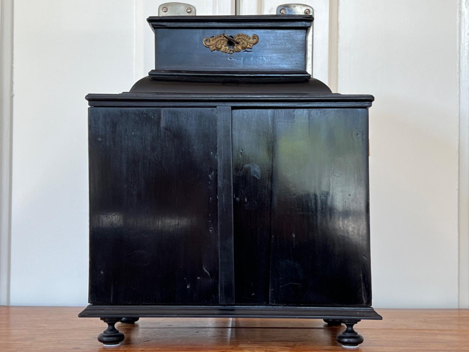 Boven op het meubel een afsluitbaar vak met slot en sleuteltje (werkend).