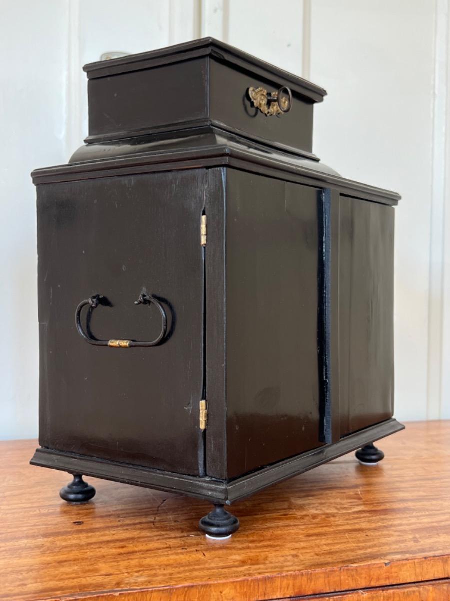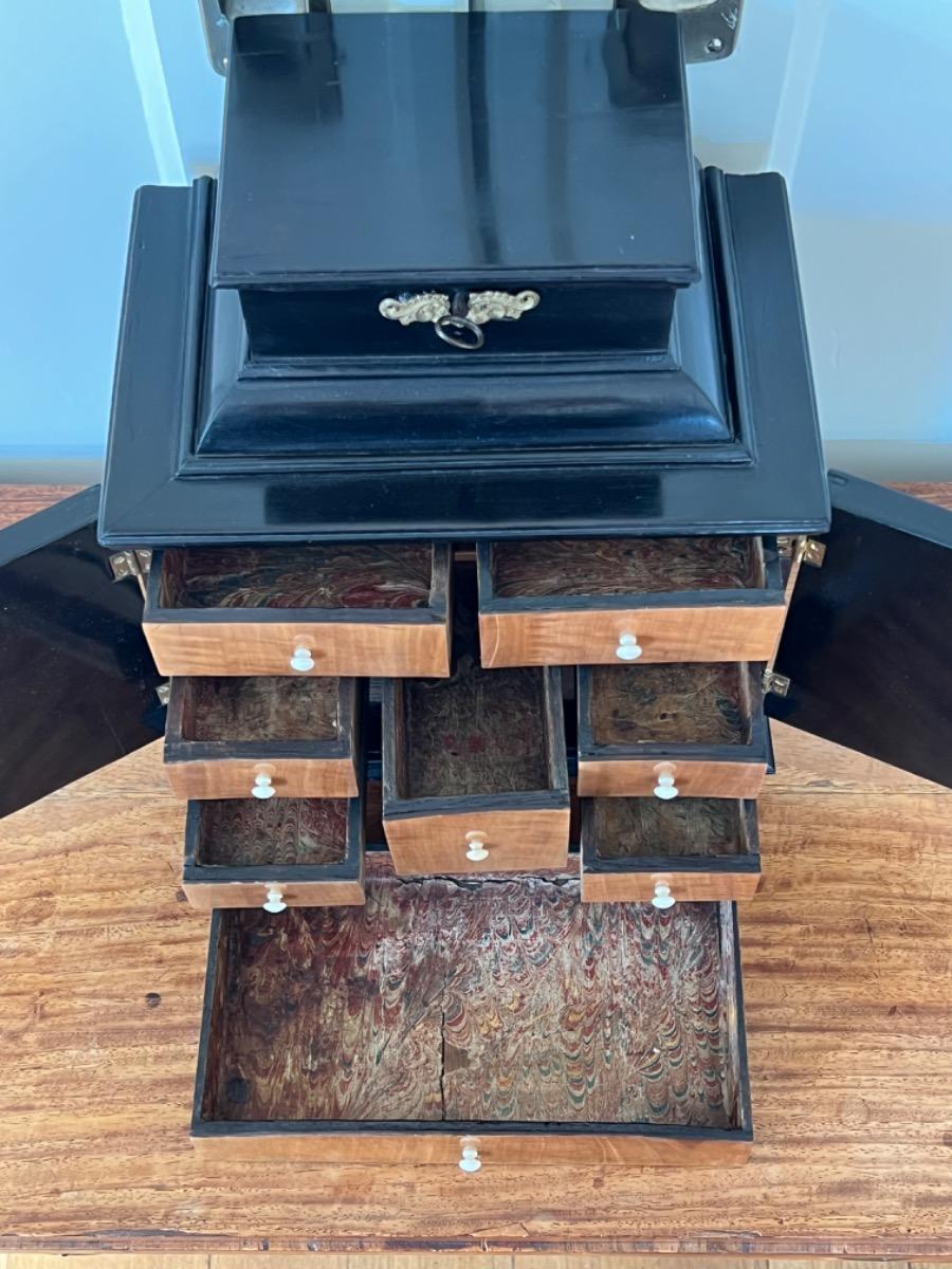 Ebben en gezwart perenhout gefineerd meubel met 8 kleine laden in diverse maten.