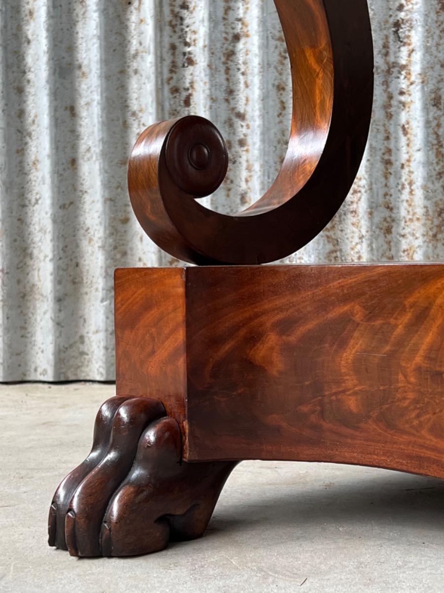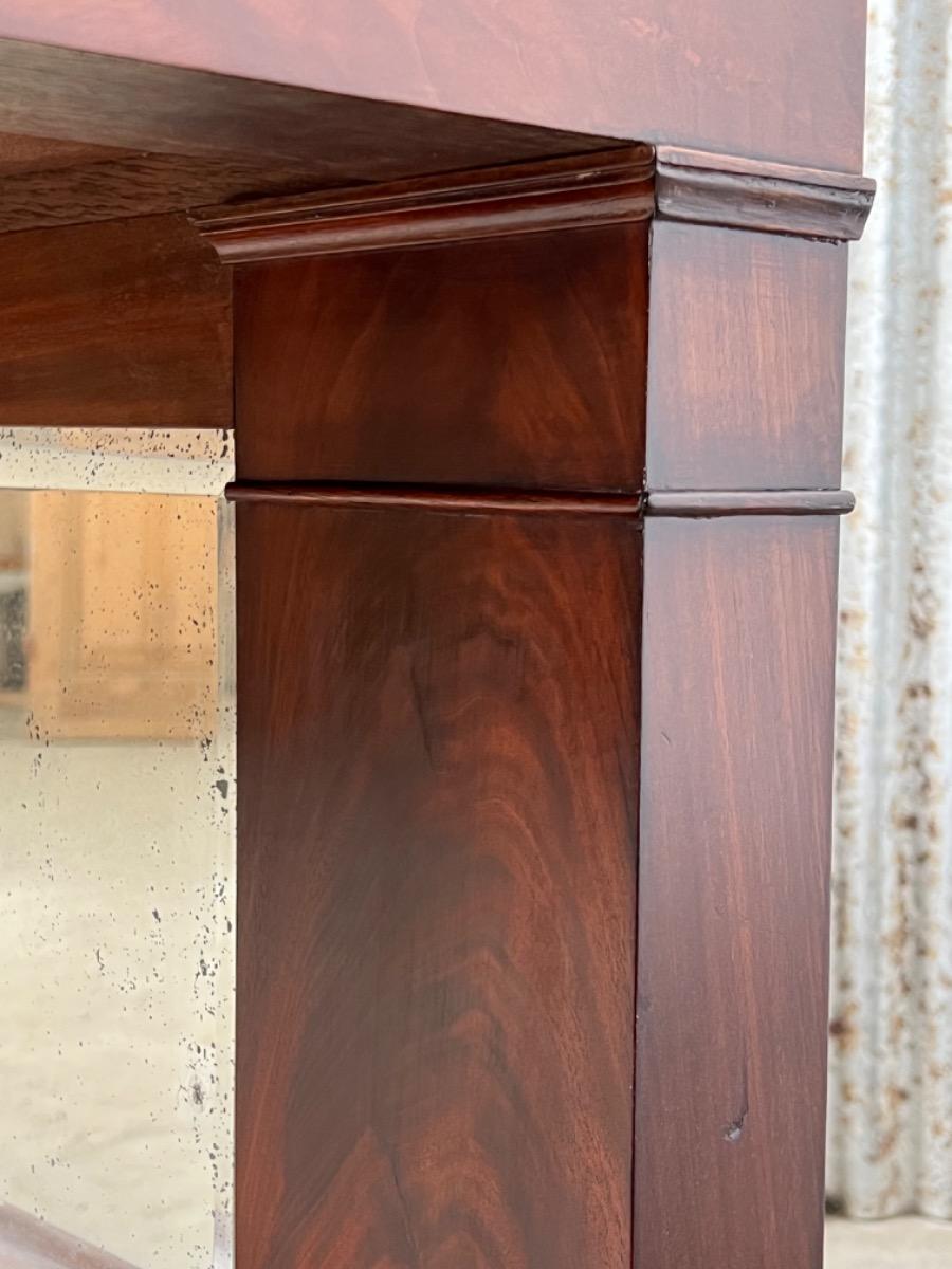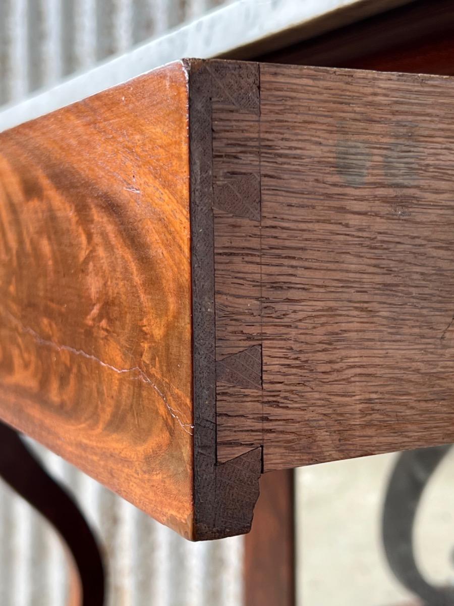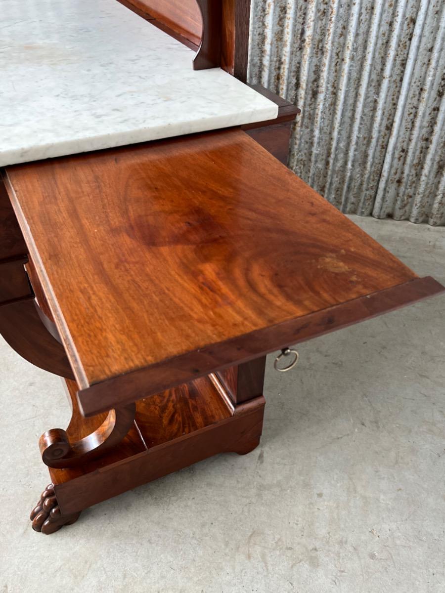 Mahonie consoletafel, trumeau met Bianca Carrara marmer en oorspronkelijk snijwerk.