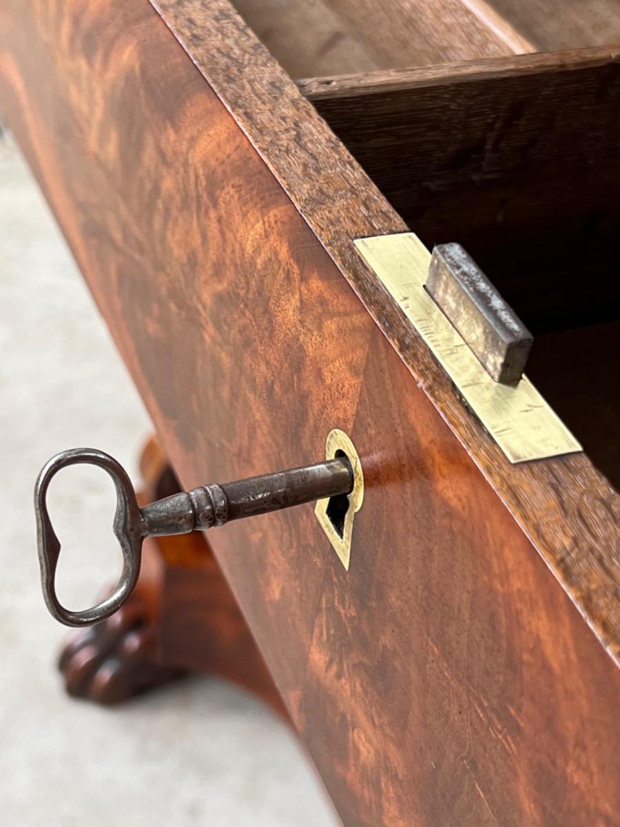 Fraai gespiegeld Cuba bloem mahonie op onderstel, basement en lade front.