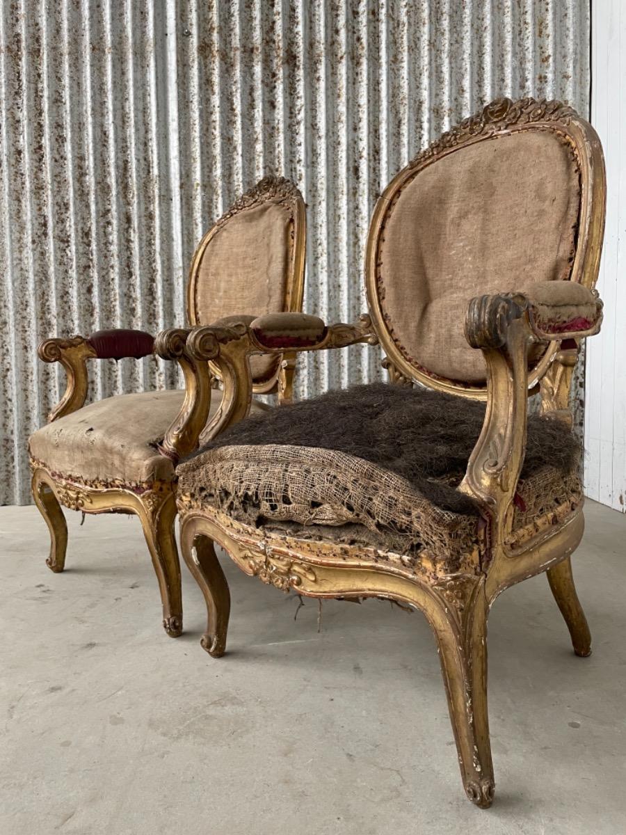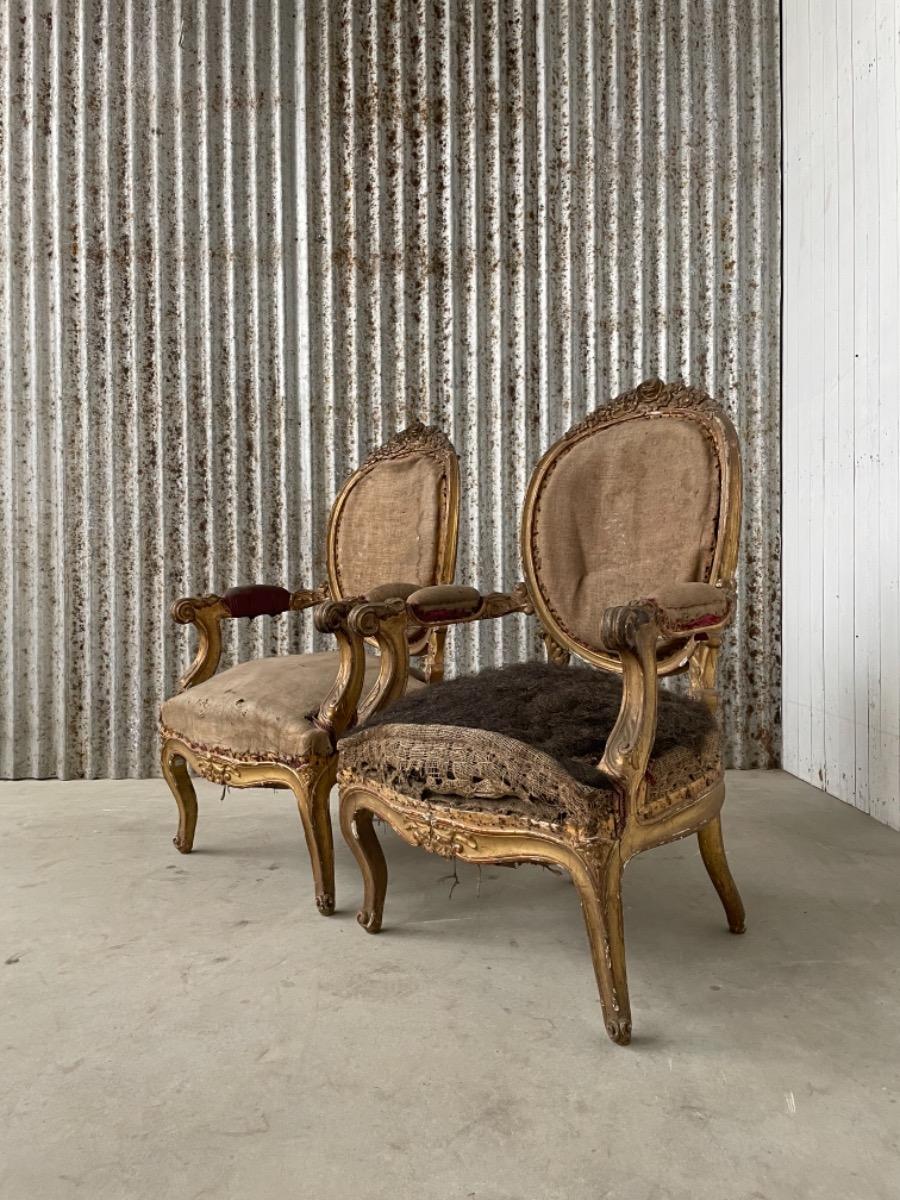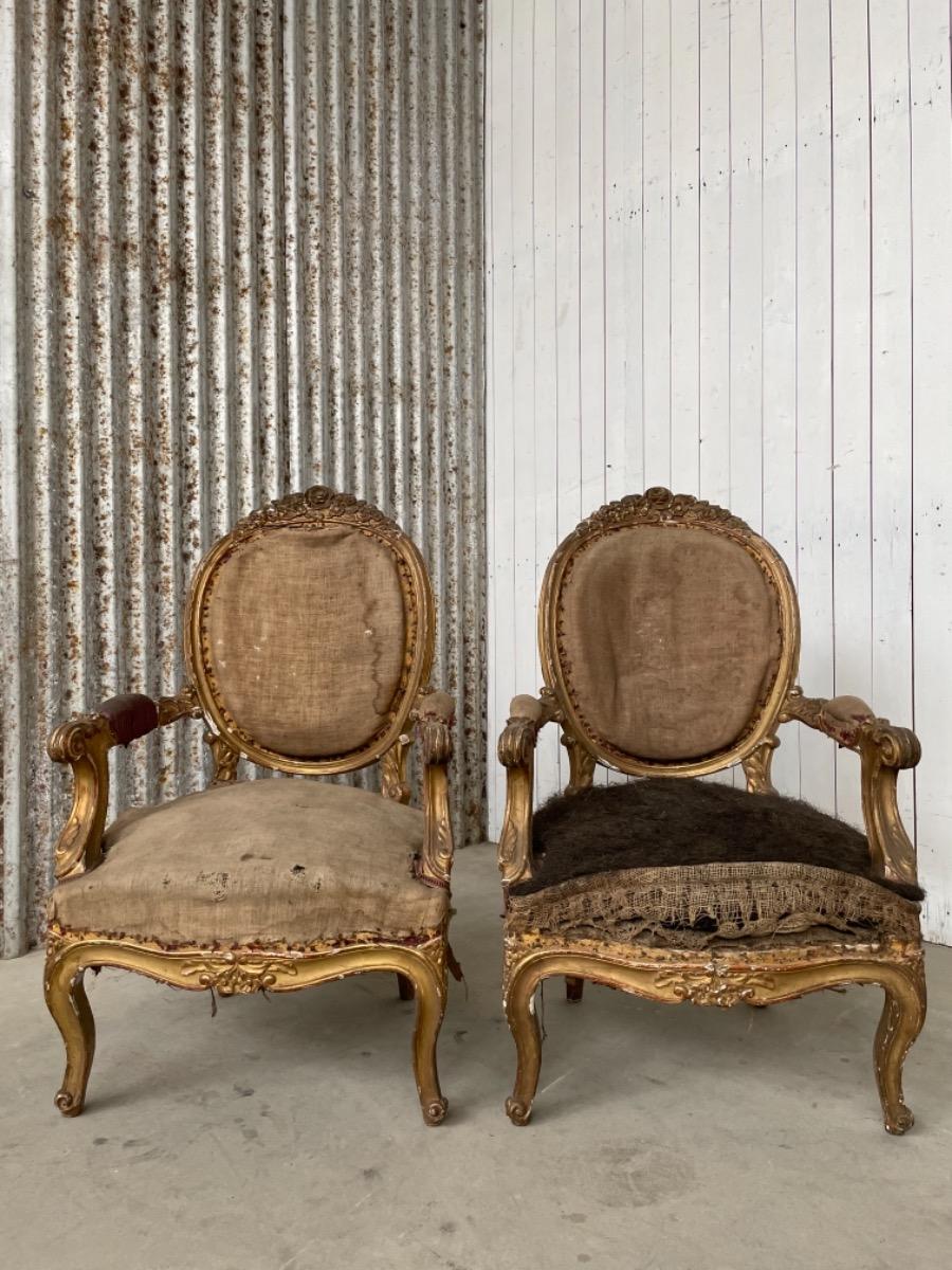 Set van 2 vergulde Louis XVI arm fauteuils.