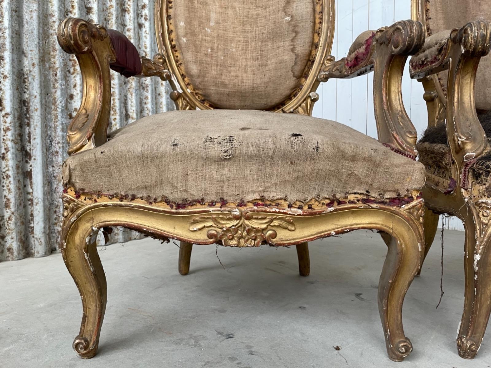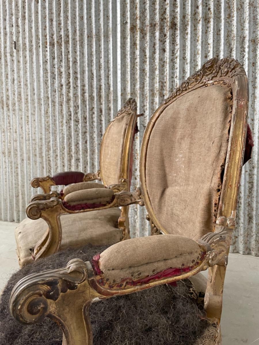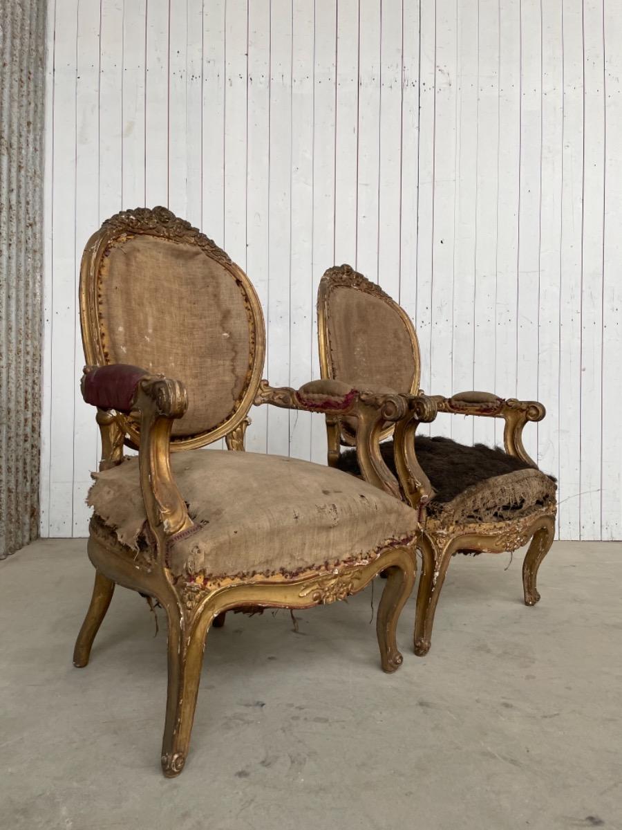Set van 2 vergulde Louis XVI arm fauteuils.